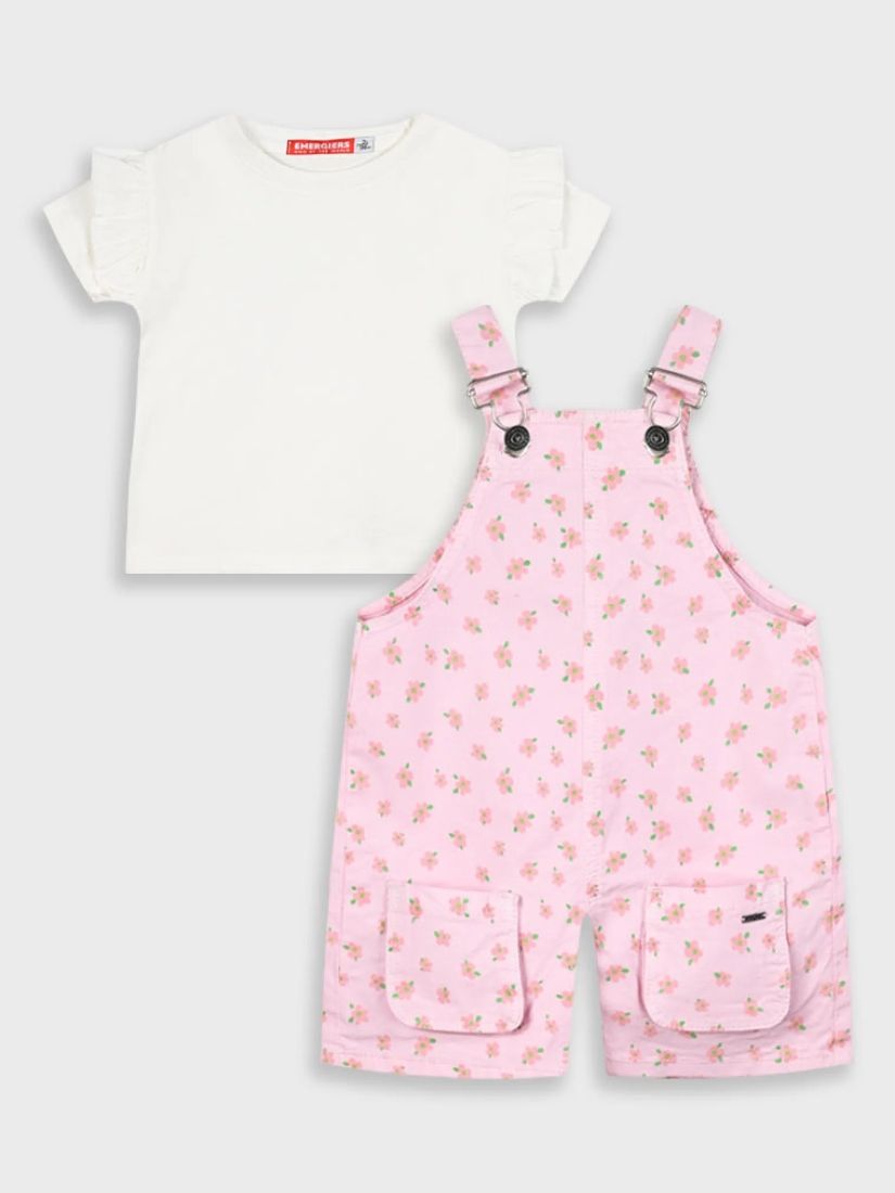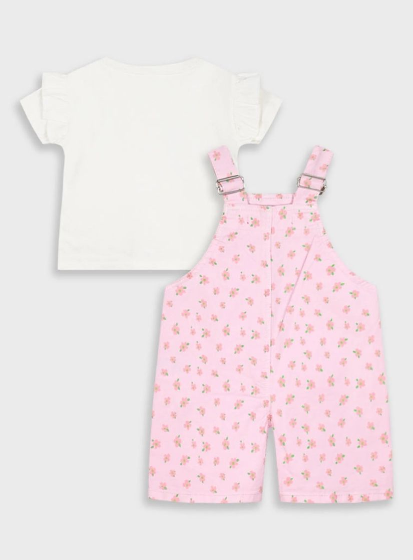 Σετ σαλοπέτα με λουλουδάκια και μπλούζα με βολάν ροζ
