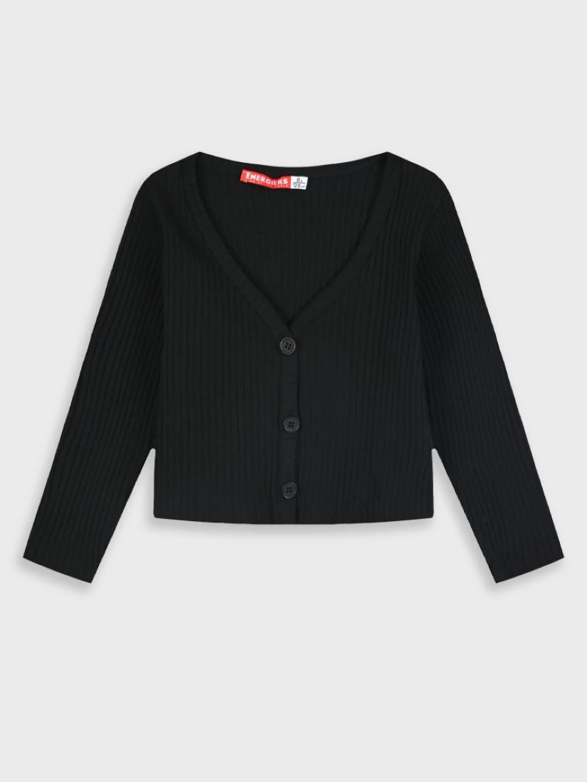 Ζακετάκι ριπ μονόχρωμο με κουμπάκια μαύρο