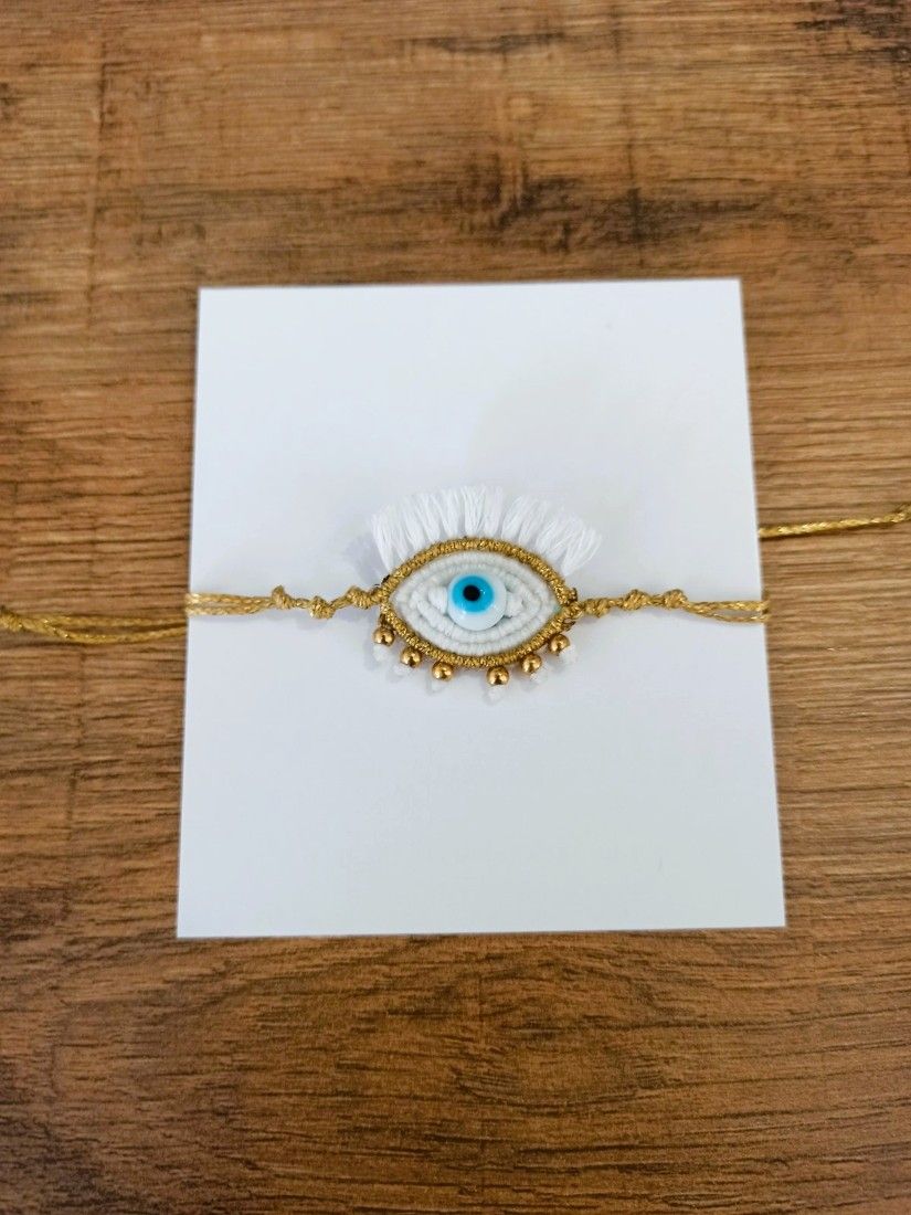 Βραχιόλι χειροποίητο μάτι με χρυσές λεπτομέρειες λευκό