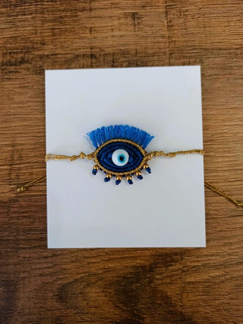 Βραχιόλι χειροποίητο μάτι με χρυσές λεπτομέρειες μπλε