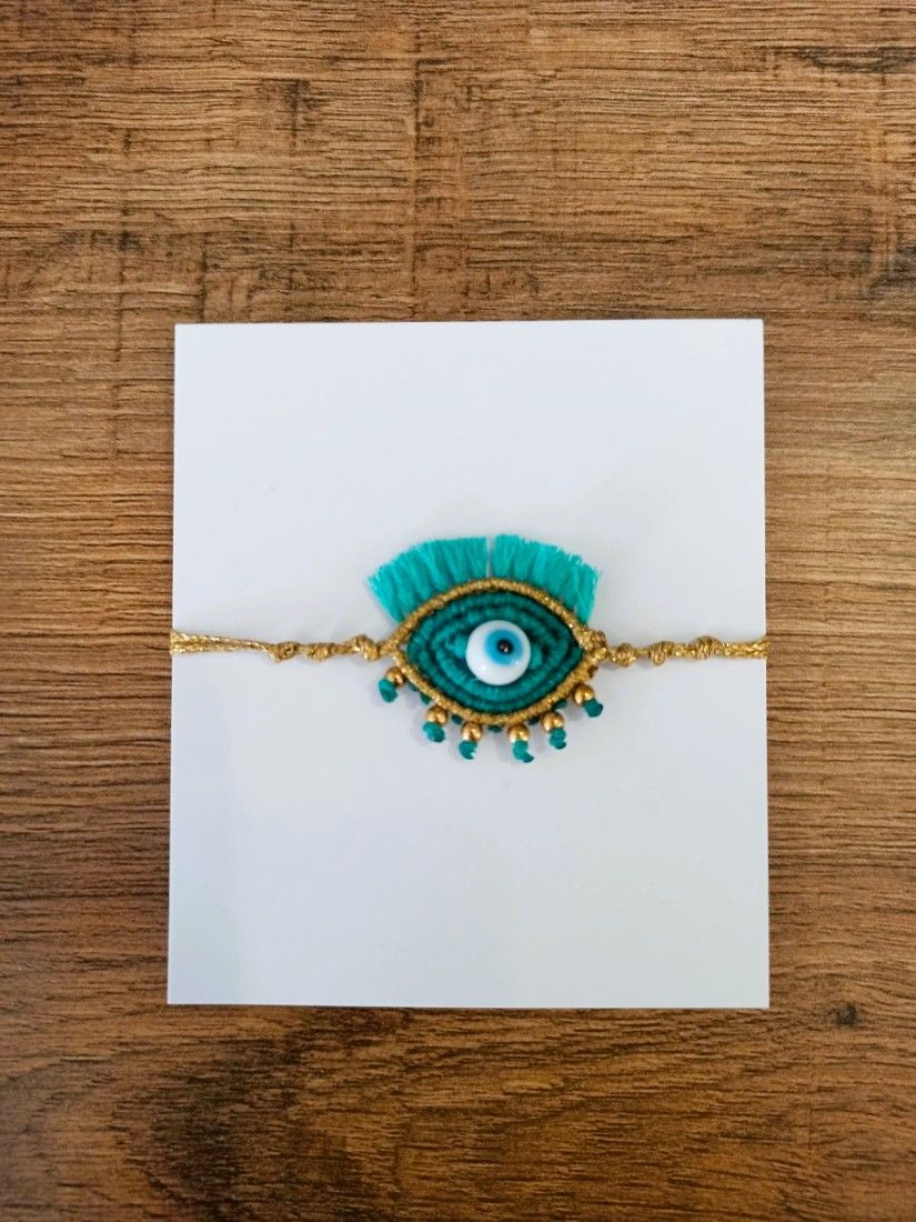 Βραχιόλι χειροποίητο μάτι με χρυσές λεπτομέρειες μέντα