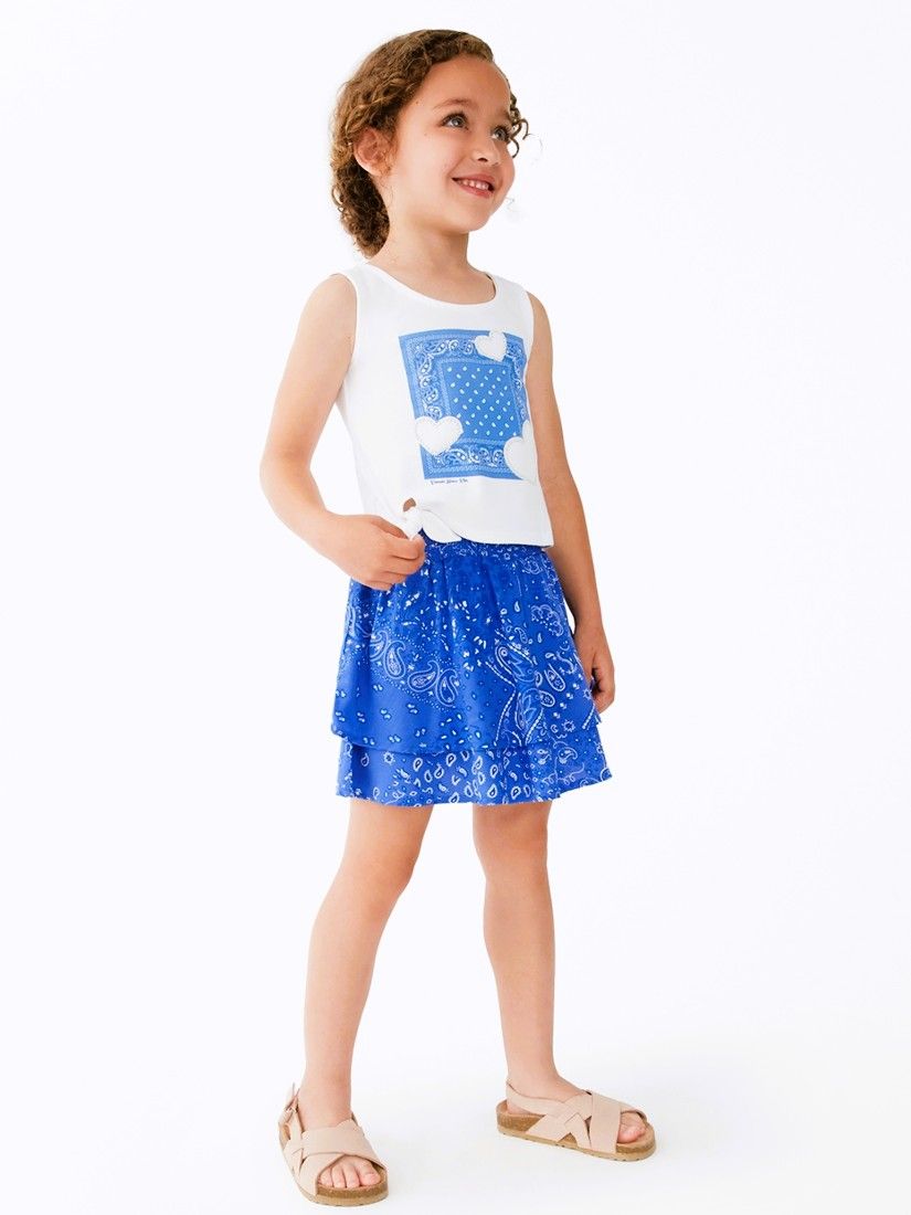 Φούστα με βολάν και έθνικ σχέδια μπλε