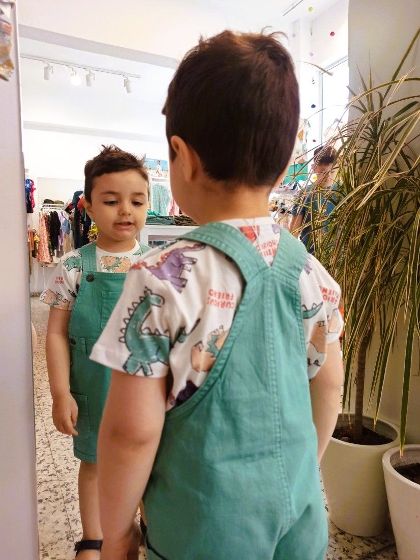 Σετ σαλοπέτα τζιν με μπλούζα με δεινόσαυρους βεραμάν