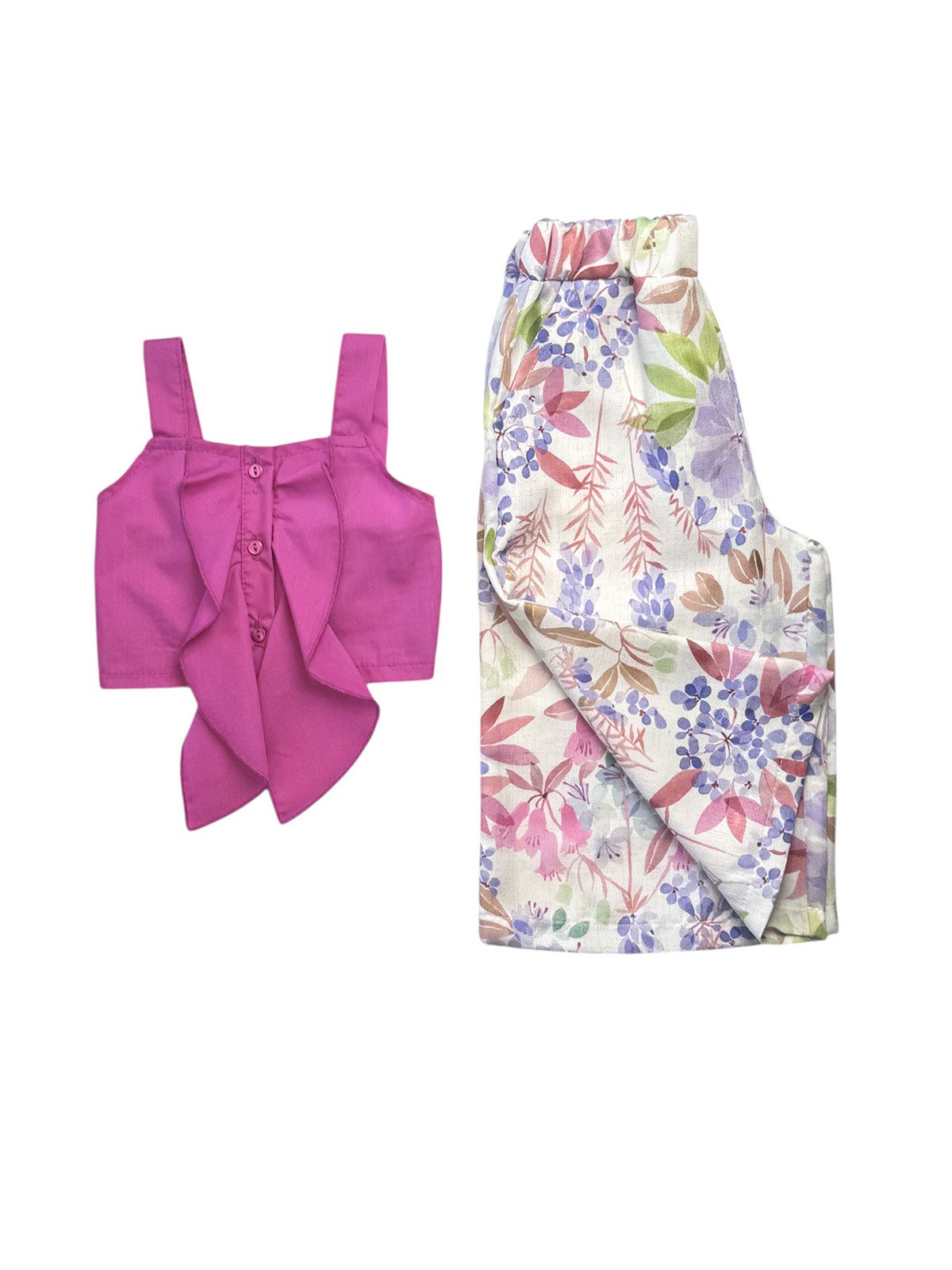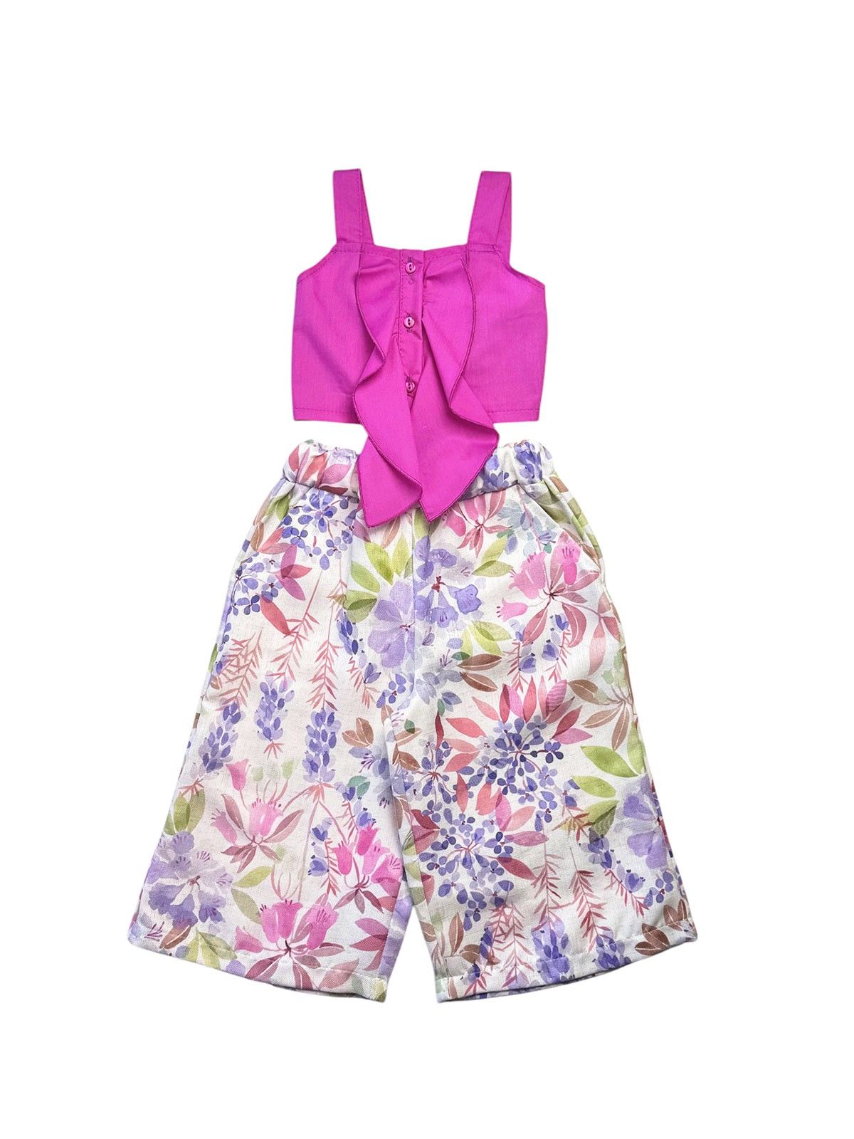 Σετ κροπ τοπ και φλοράλ παντελόνα με λάστιχο ελληνικής ραφής κορίτσι μεγάλο ματζέντα