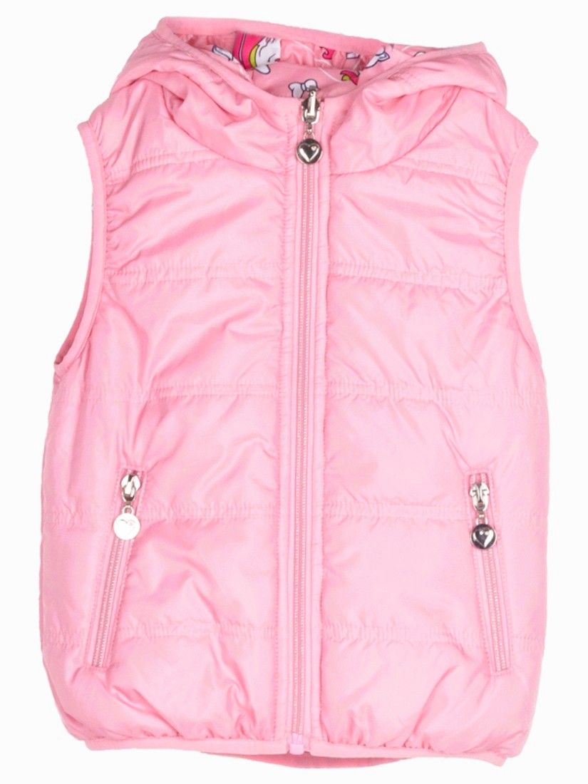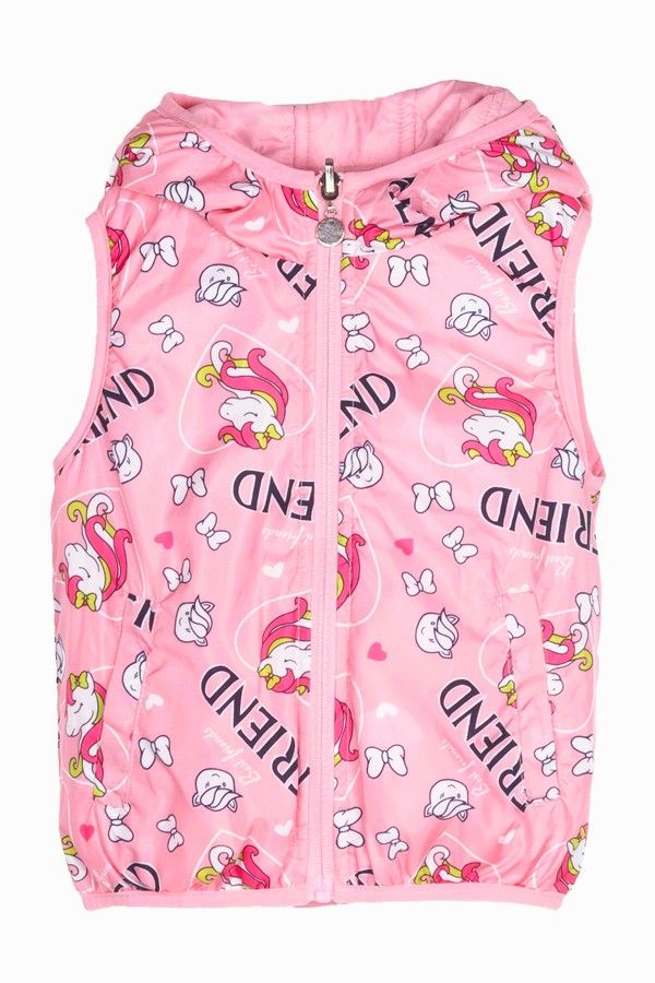 Γιλέκο δύο όψεων μονόχρωμο και print μονόκεροι με κουκούλα ροζ