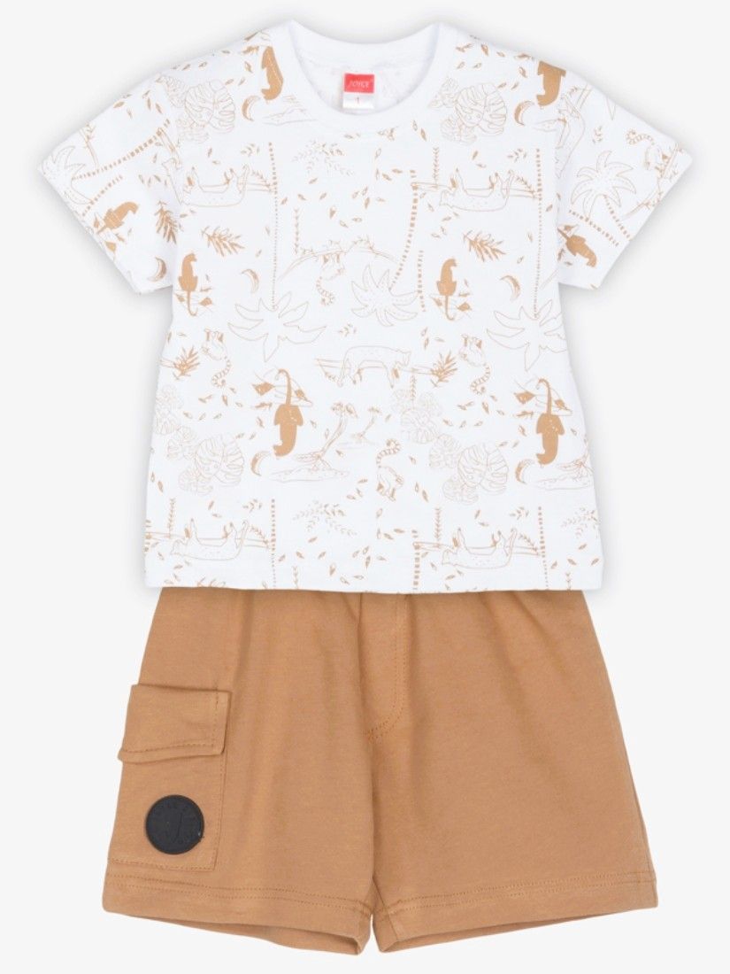 Σετ κοντομάνικη μπλούζα με δεινόσαυρους και Cargo βερμούδα καφέ