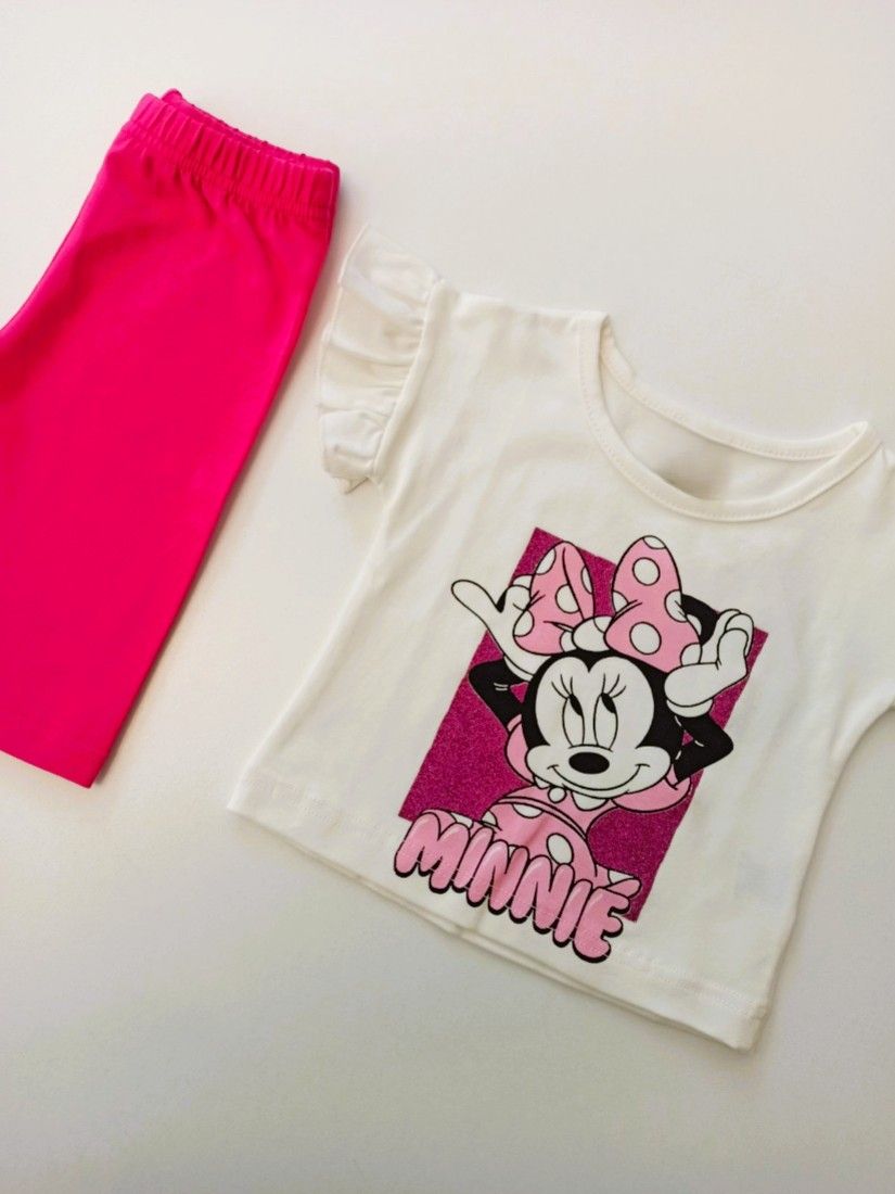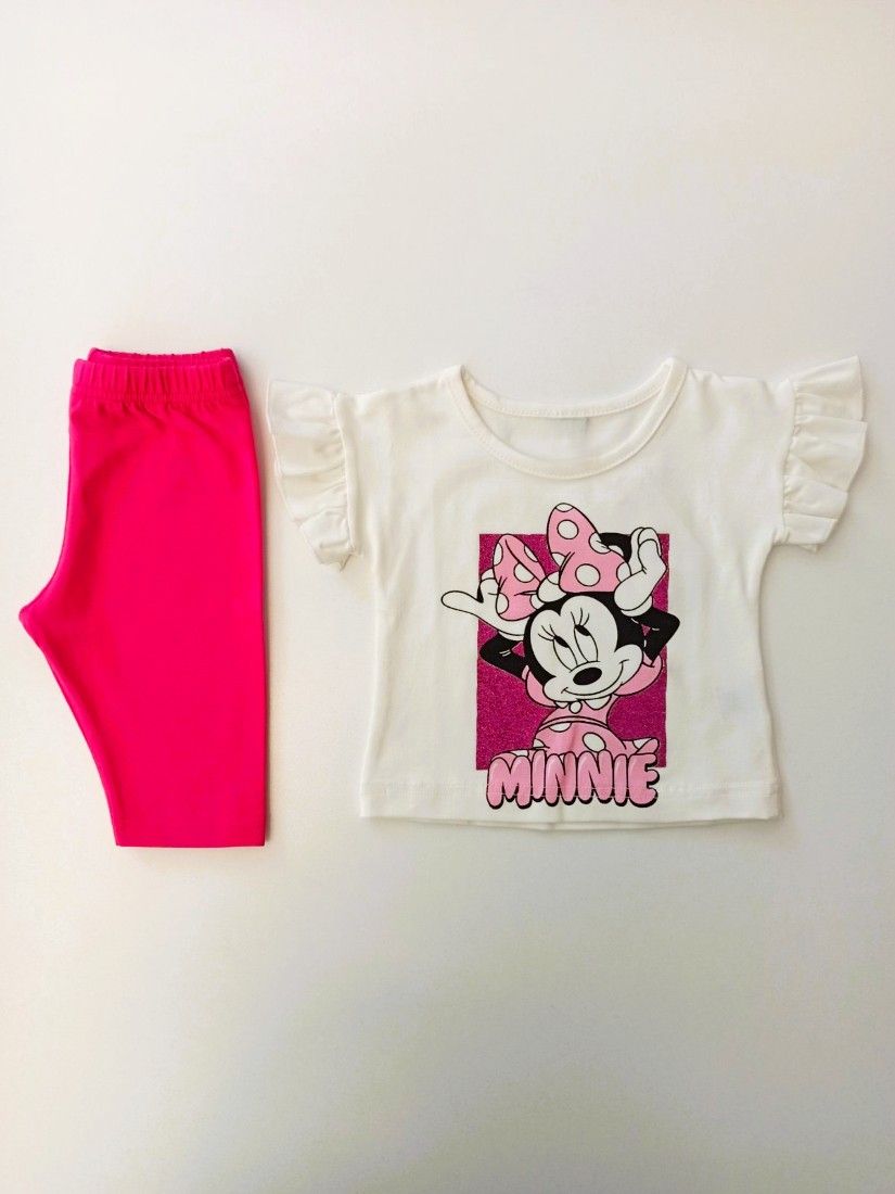 Βρεφικό σετ μπλούζα με βολάν και glitter και κάπρι κολάν ελληνικής ραφής φούξια