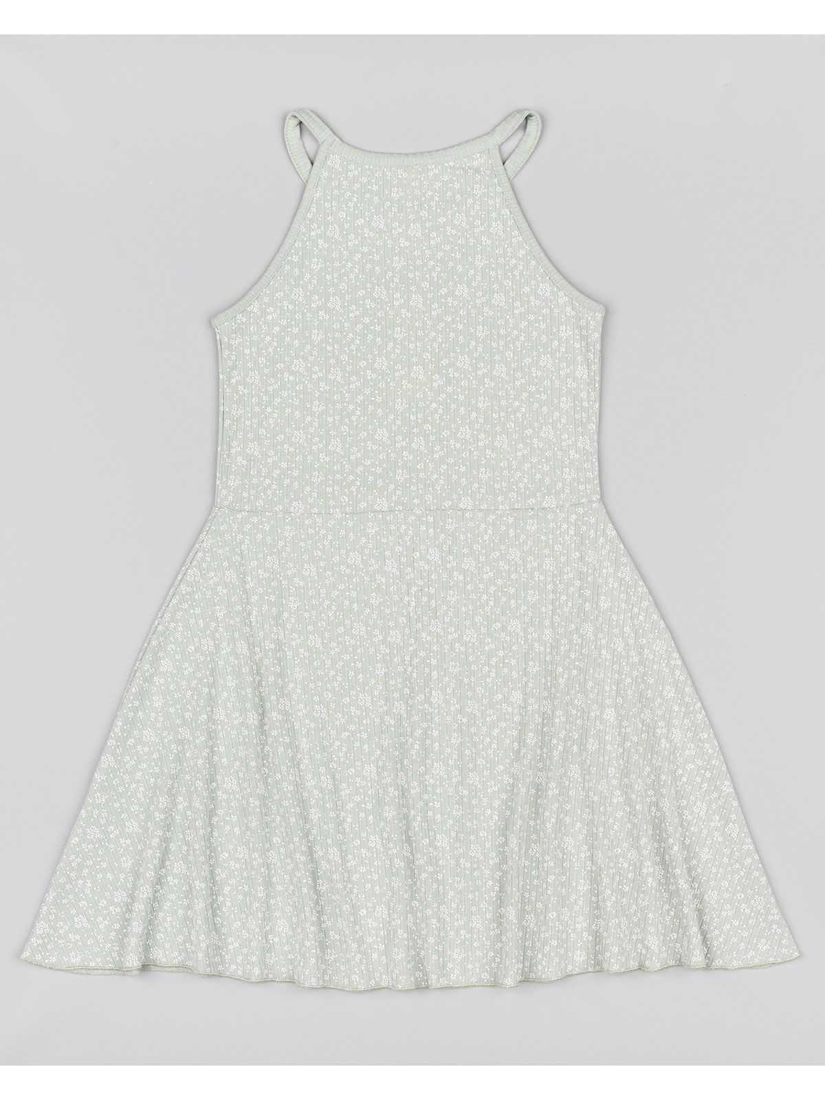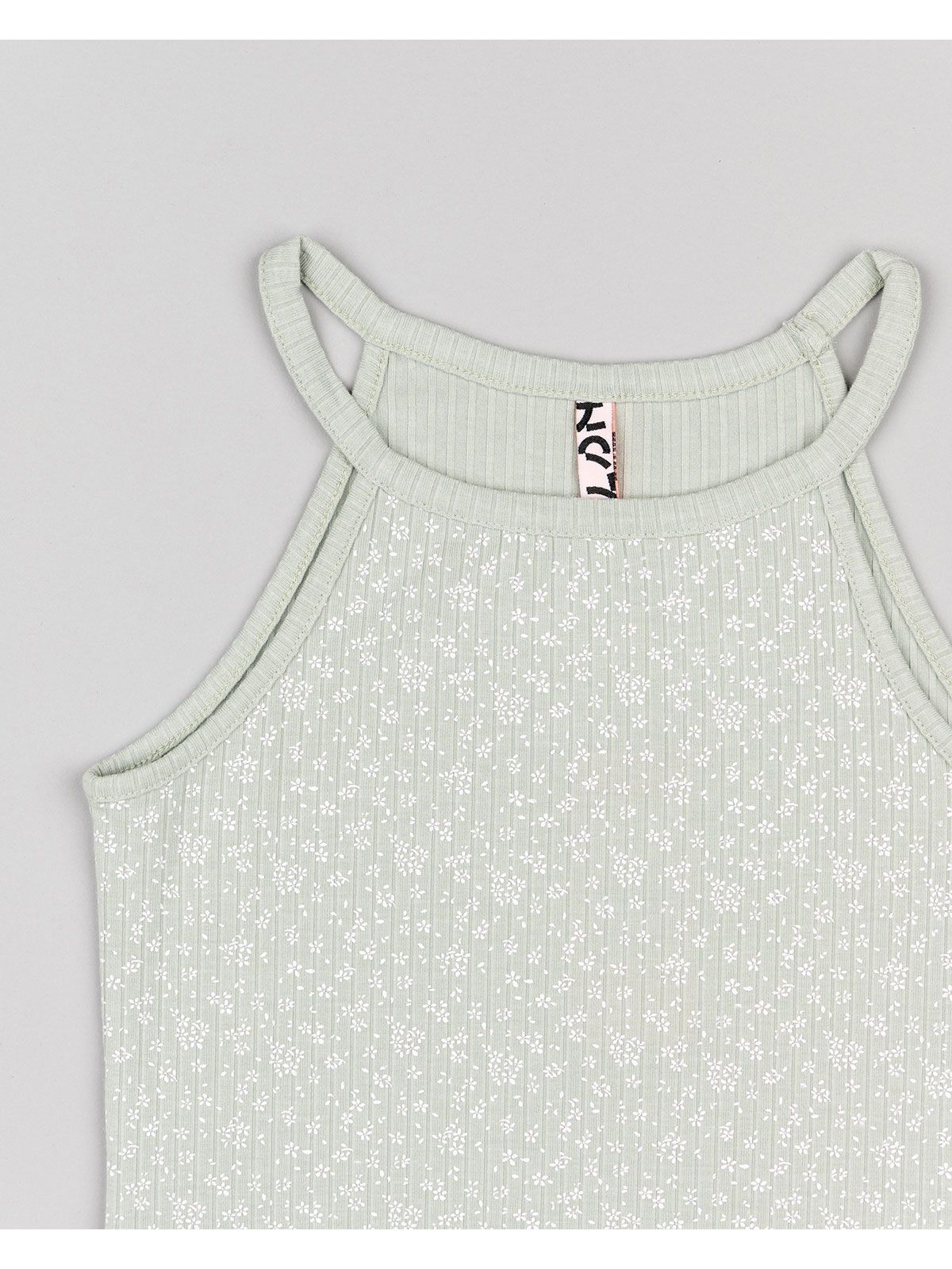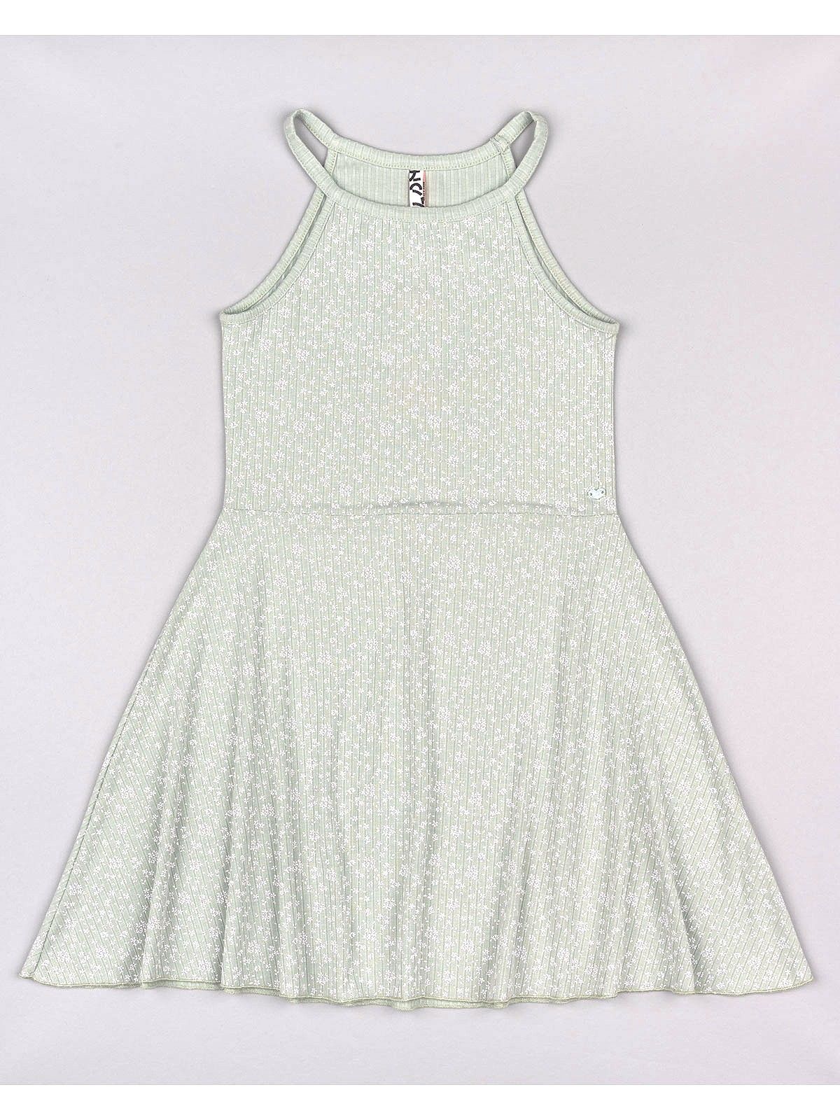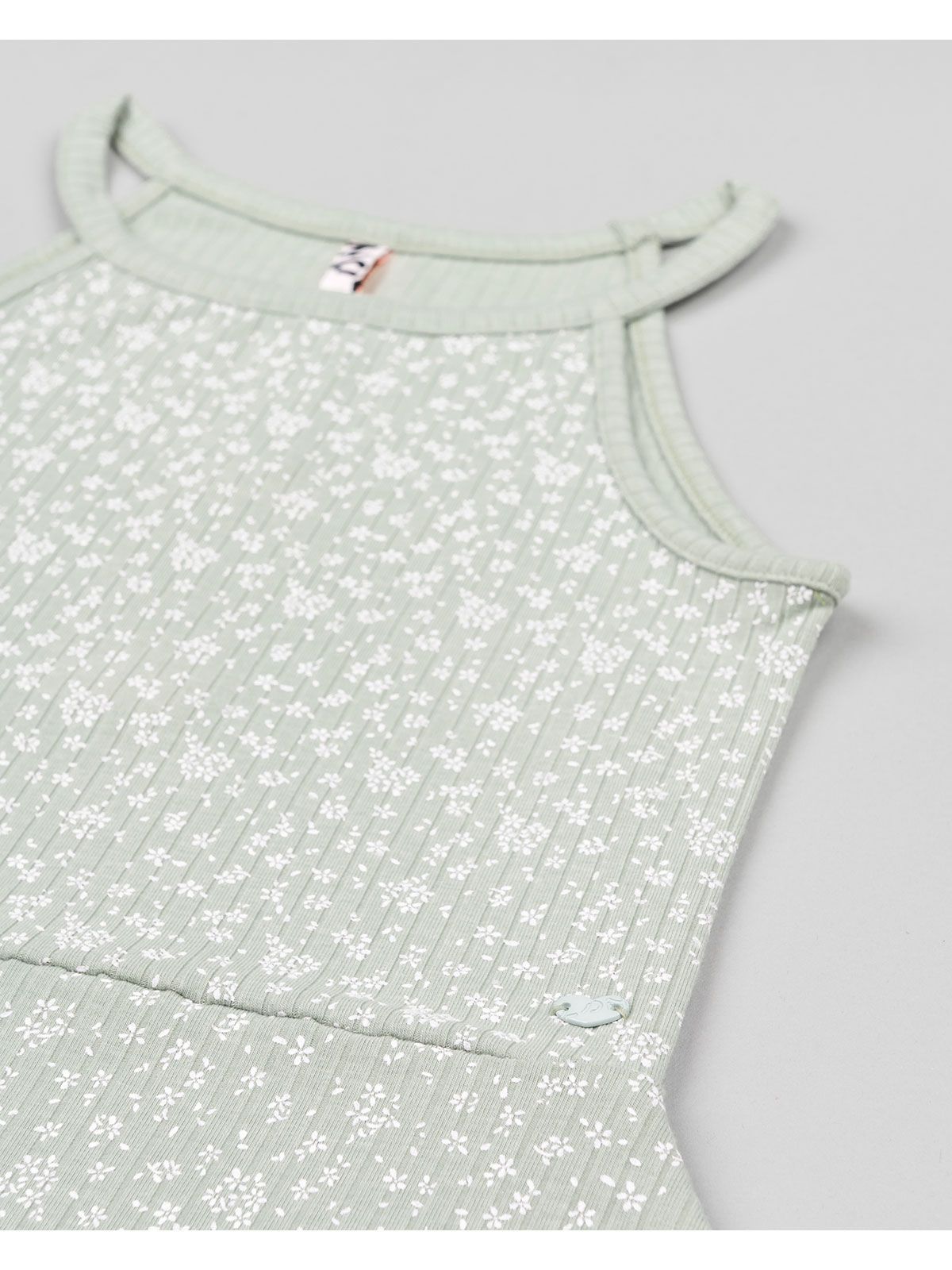 Φόρεμα φλοράλ με παρτούς ώμους μέντα