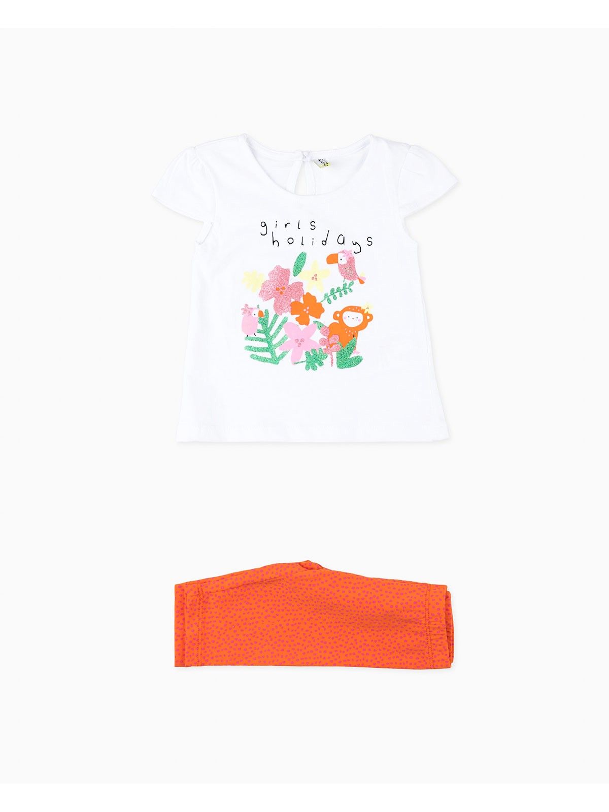 Σετ μπλούζα με print glitter jungle και πουά κάπρι κολάν φούξια