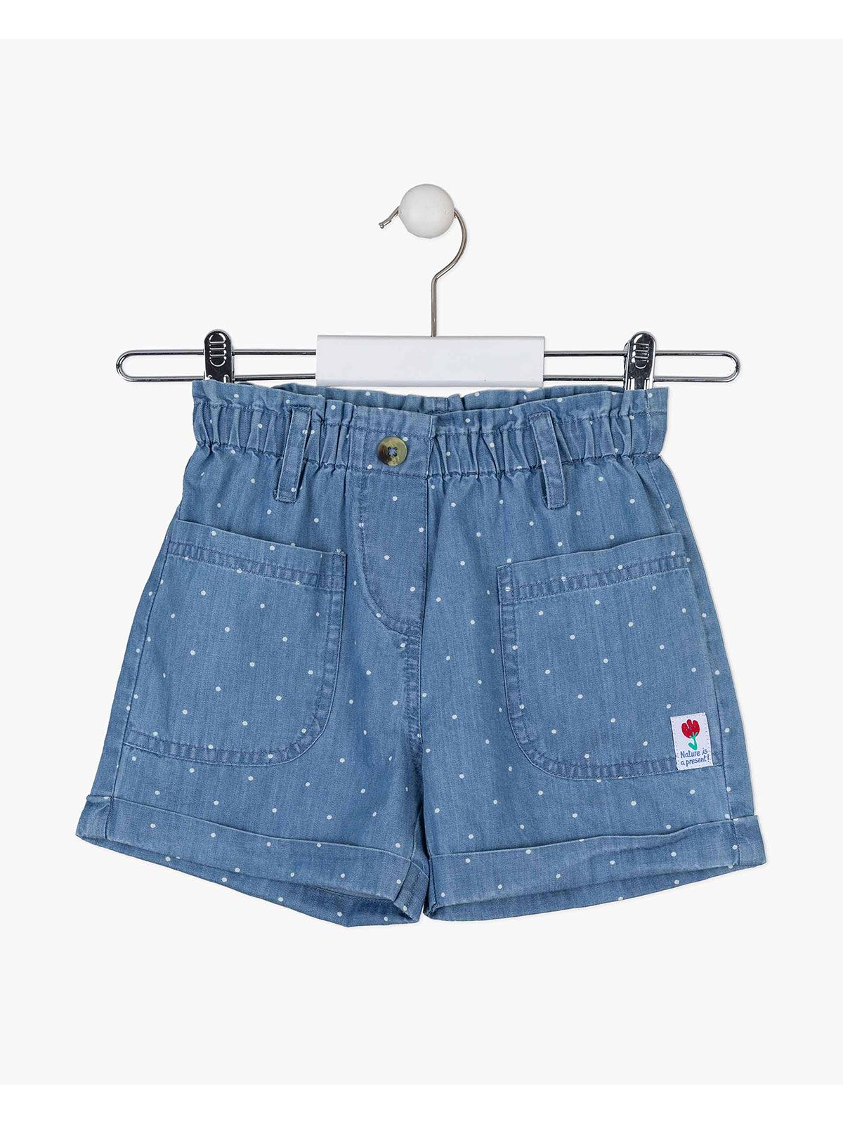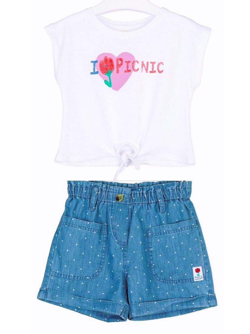 Σετ μπλούζα με δέσιμο και πουά τζιν σορτς με τσέπες και ρεβέρ λευκό