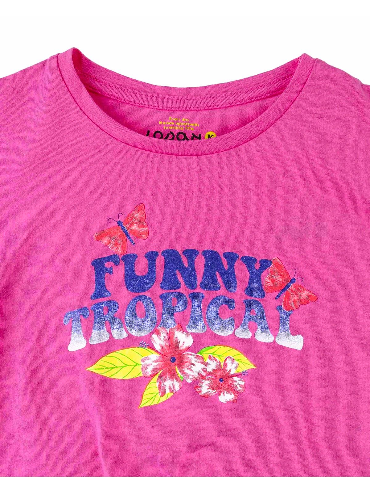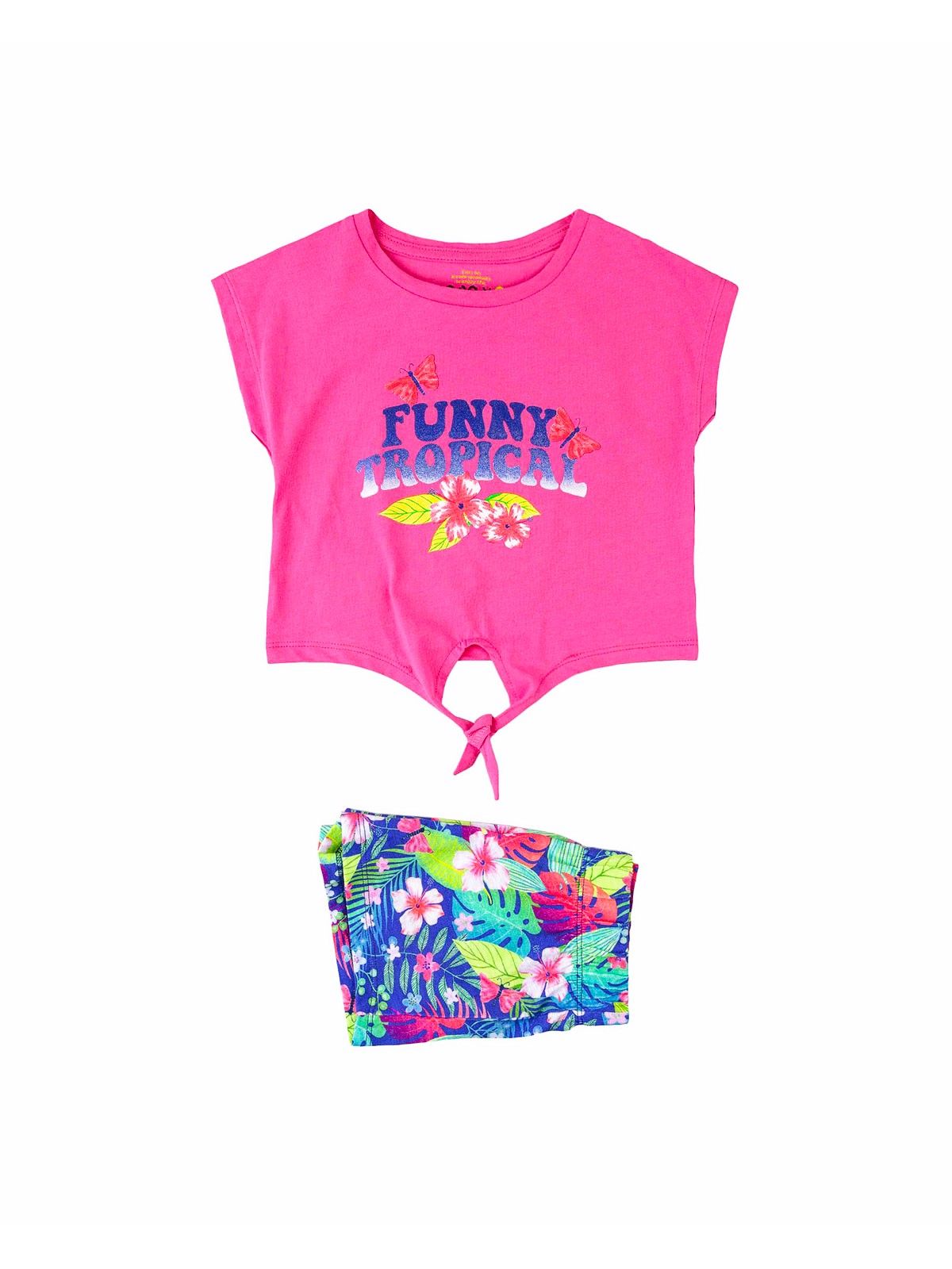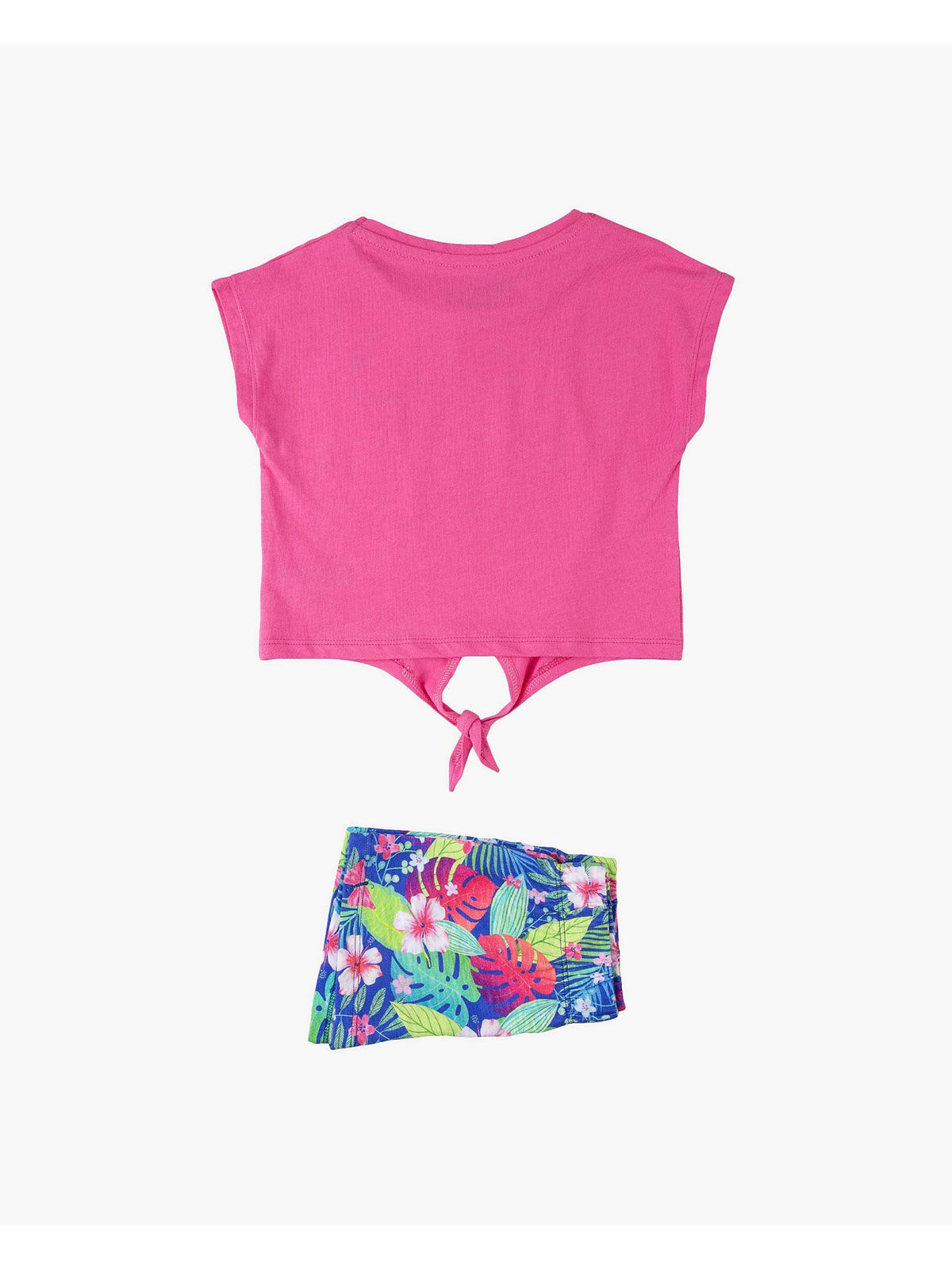 Σετ μπλούζα με δέσιμο και φλοράλ σορτς φούξια