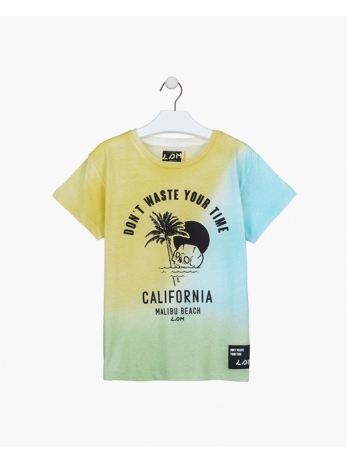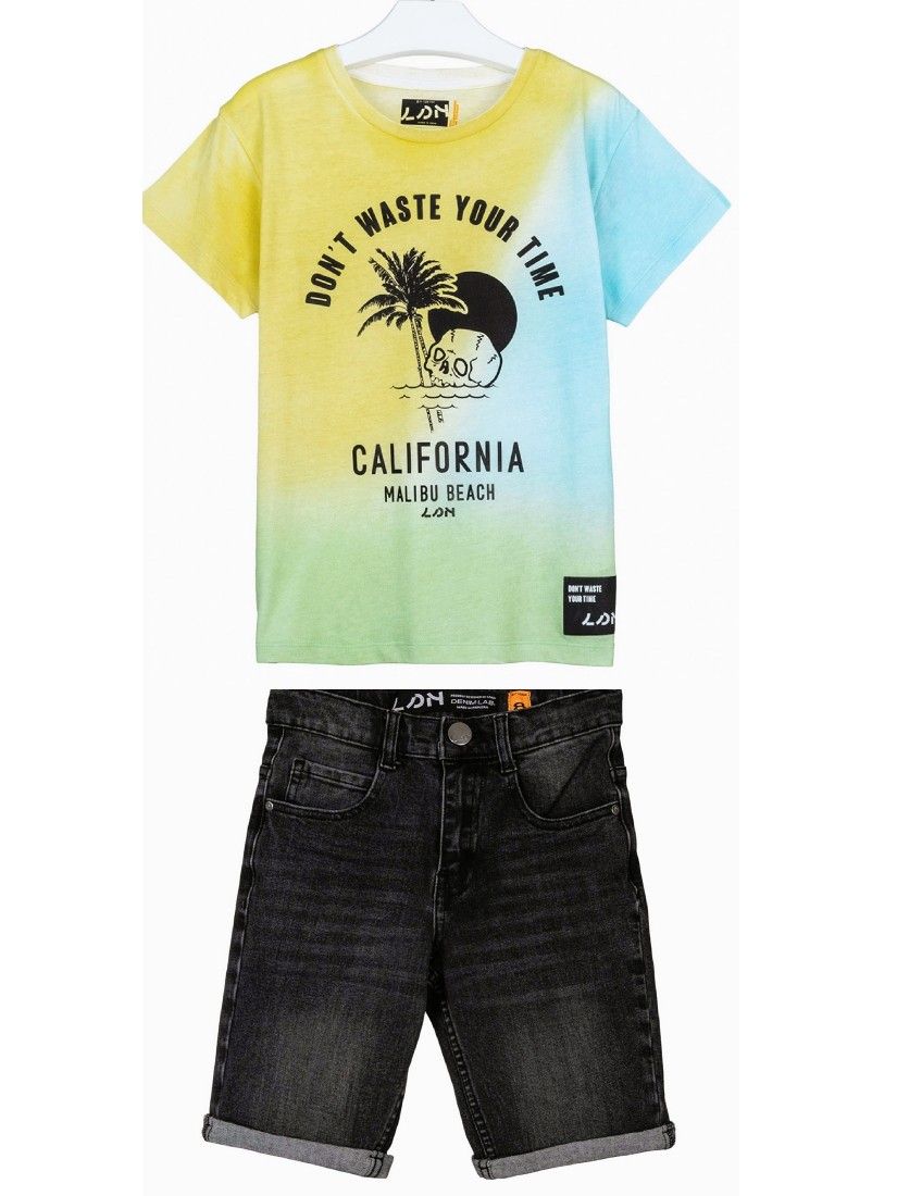 Σετ μπλούζα με print 'Malibu Beach' και τζιν βερμούδα με ρεβέρ κίτρινο