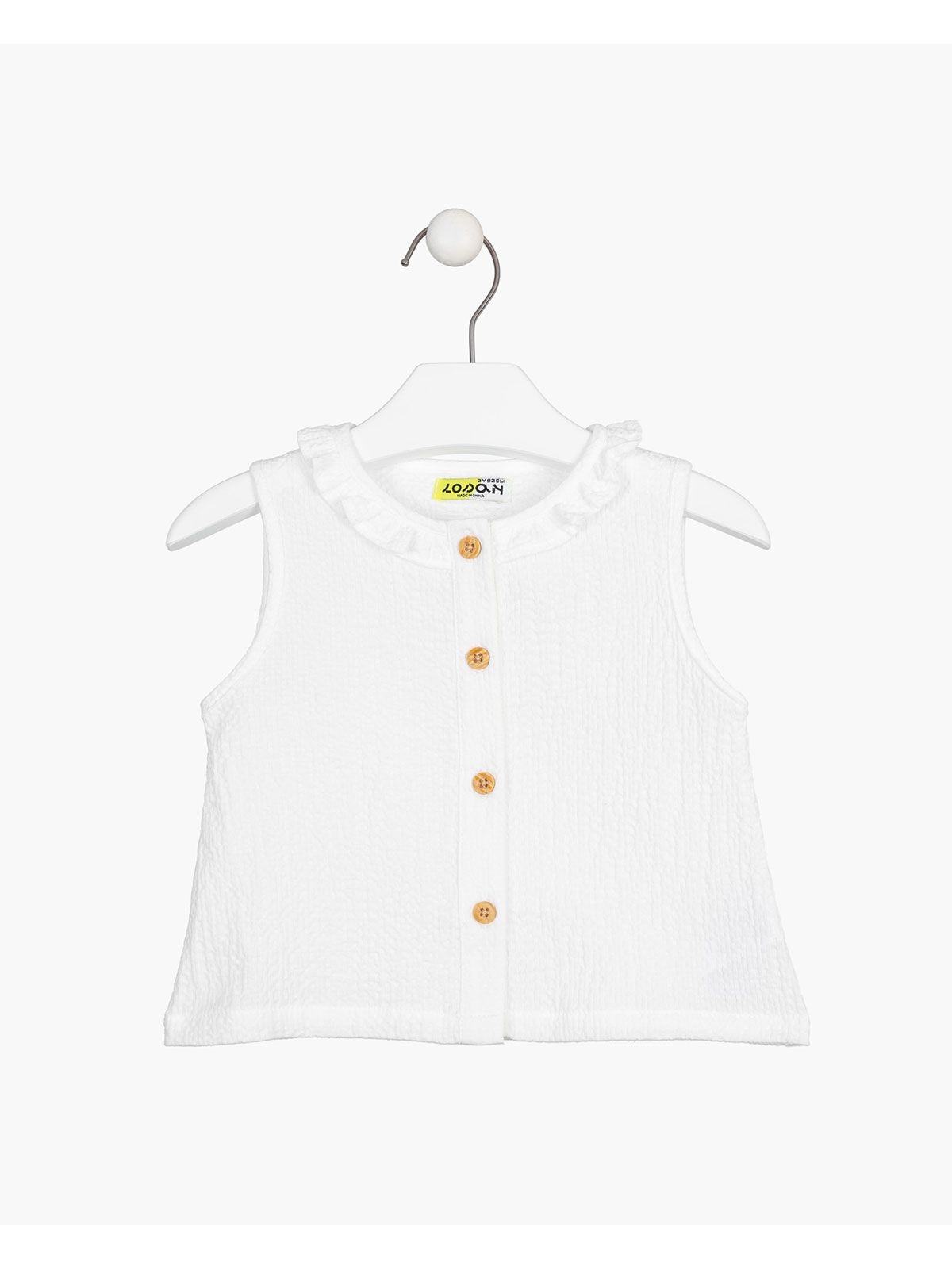 Πουκάμισο αμάνικο μονόχρωμο με βολάν λευκό