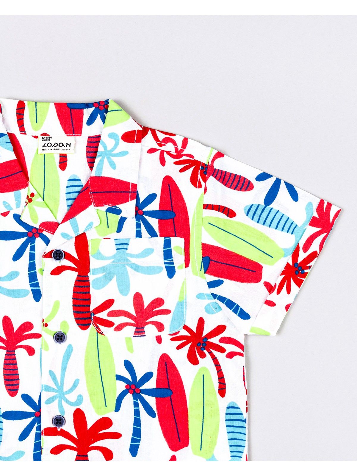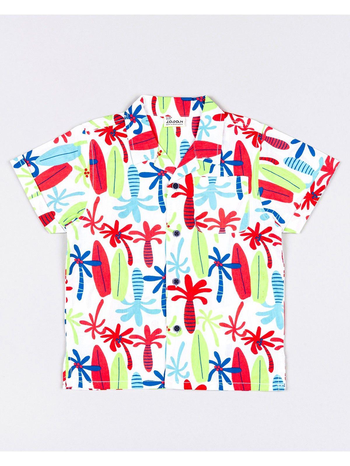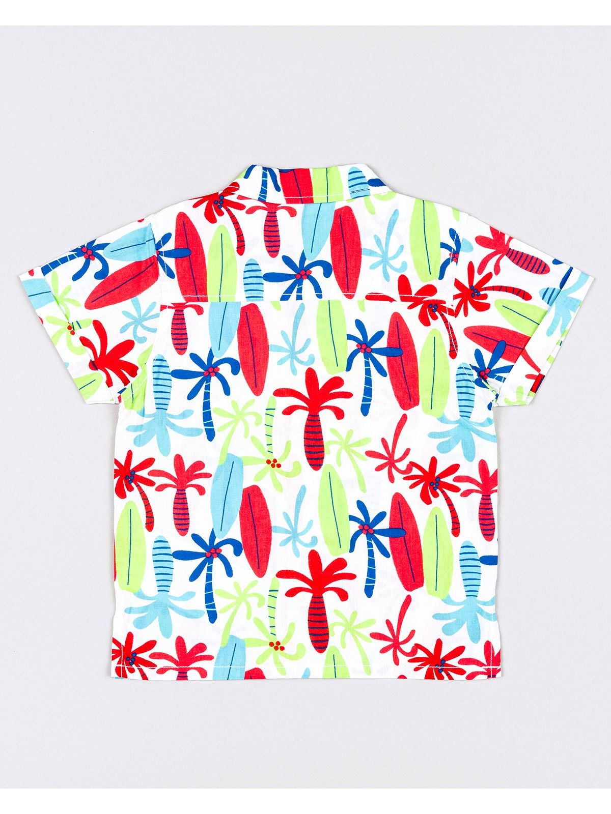 Πουκάμισο λινό με τσέπη και surfing print κόκκινο