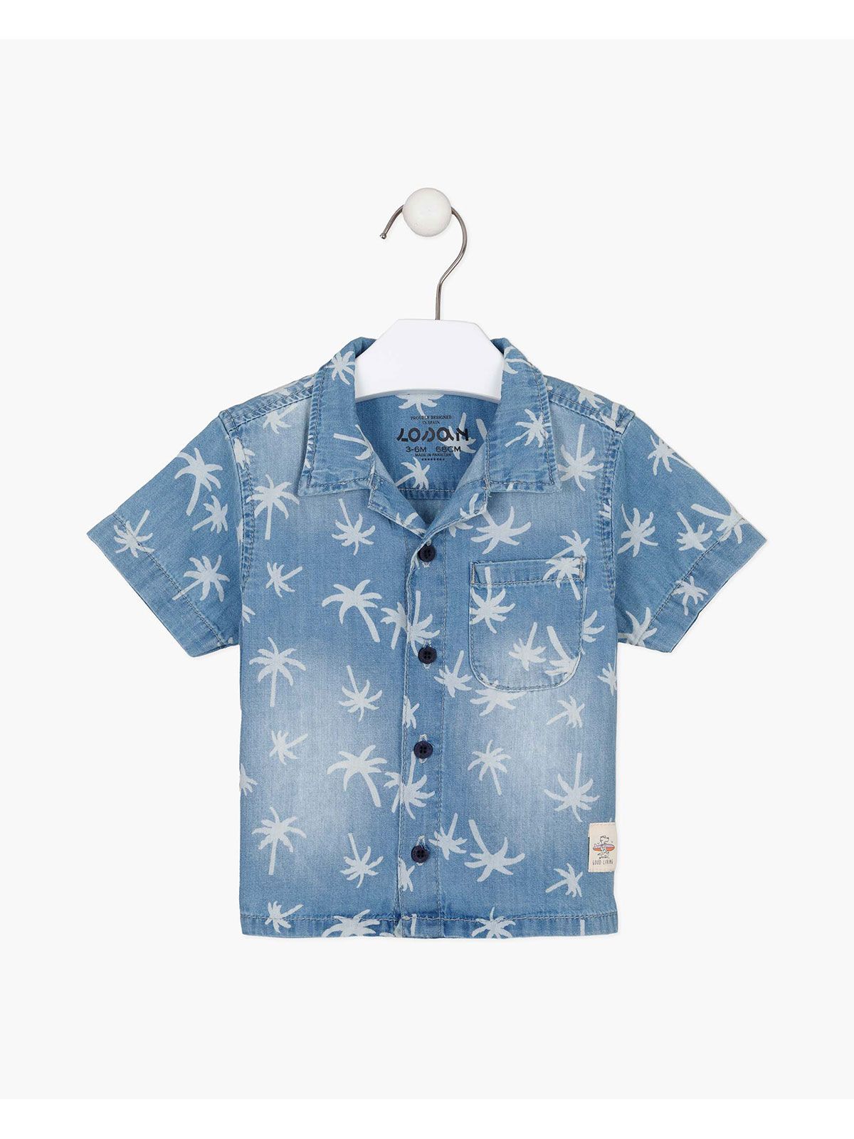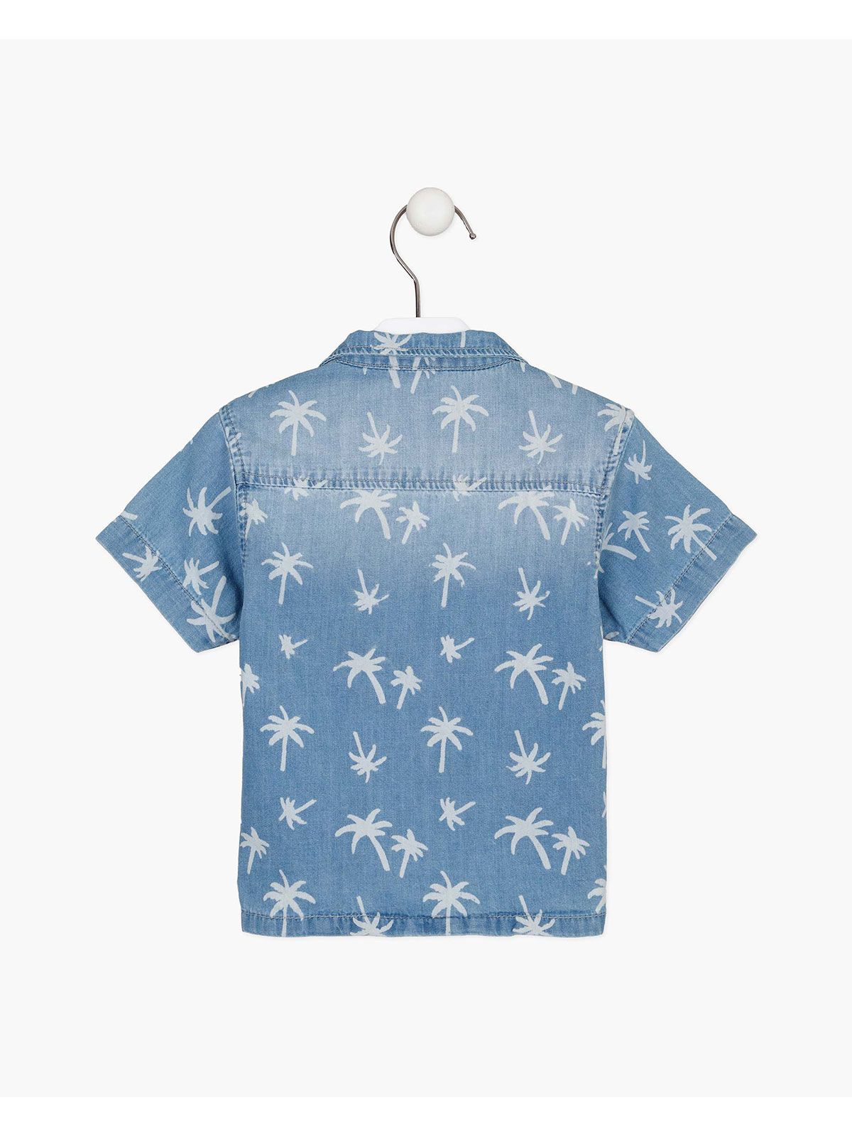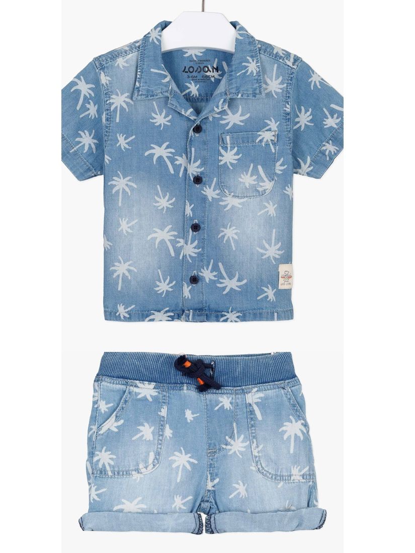Σετ πουκάμισο τζιν με τσέπη και βερμούδα με print φοίνικες μπλε