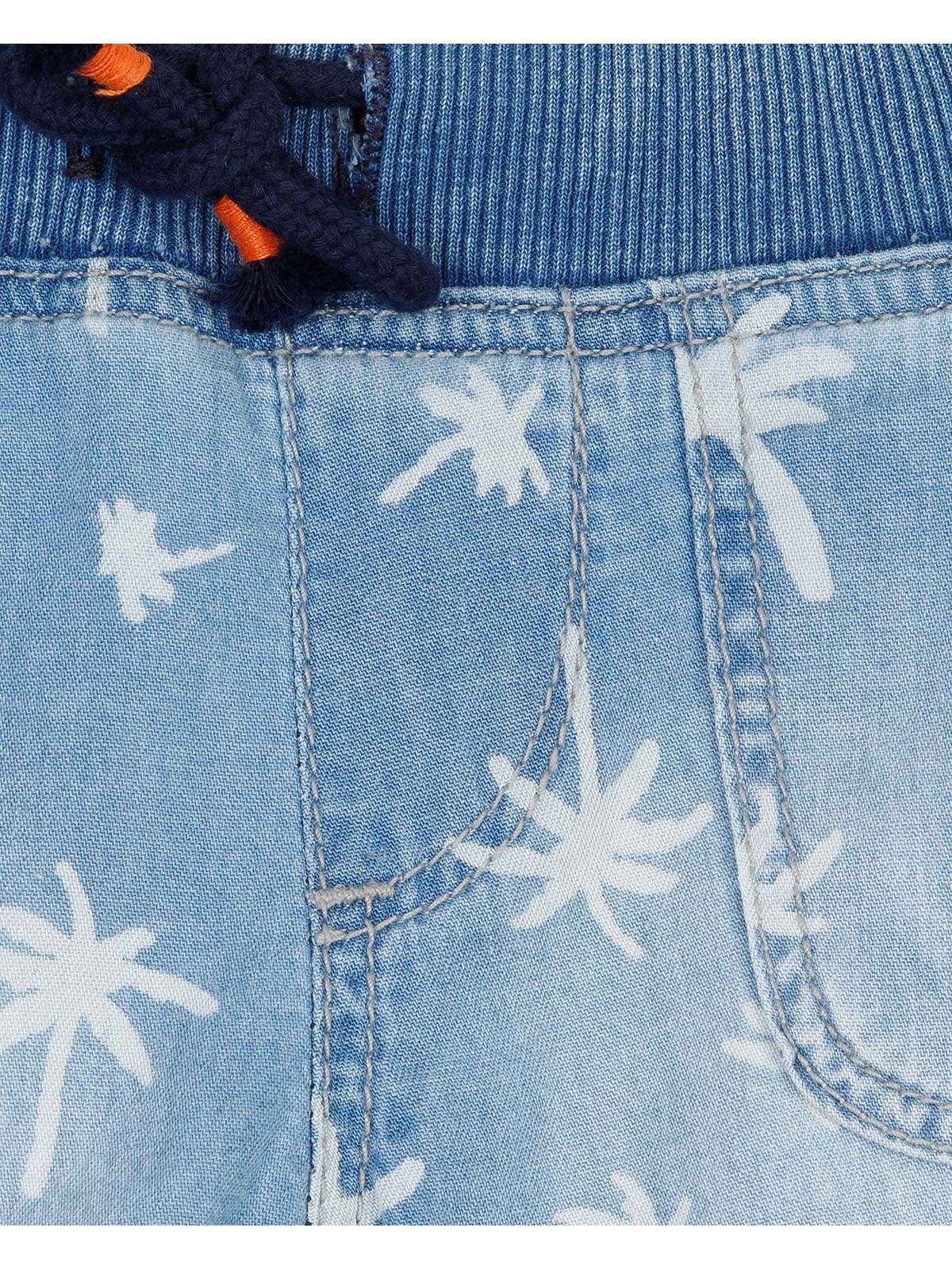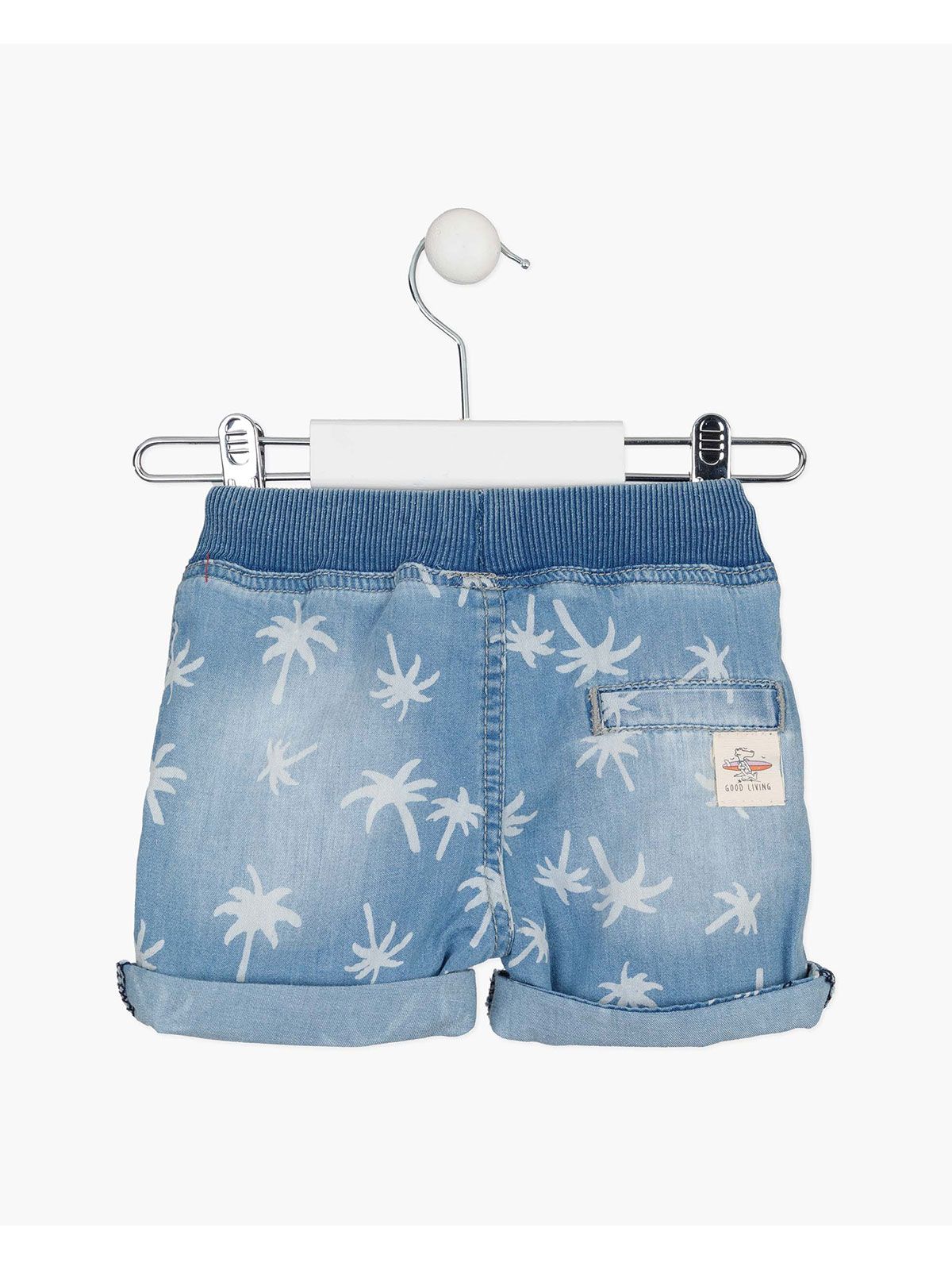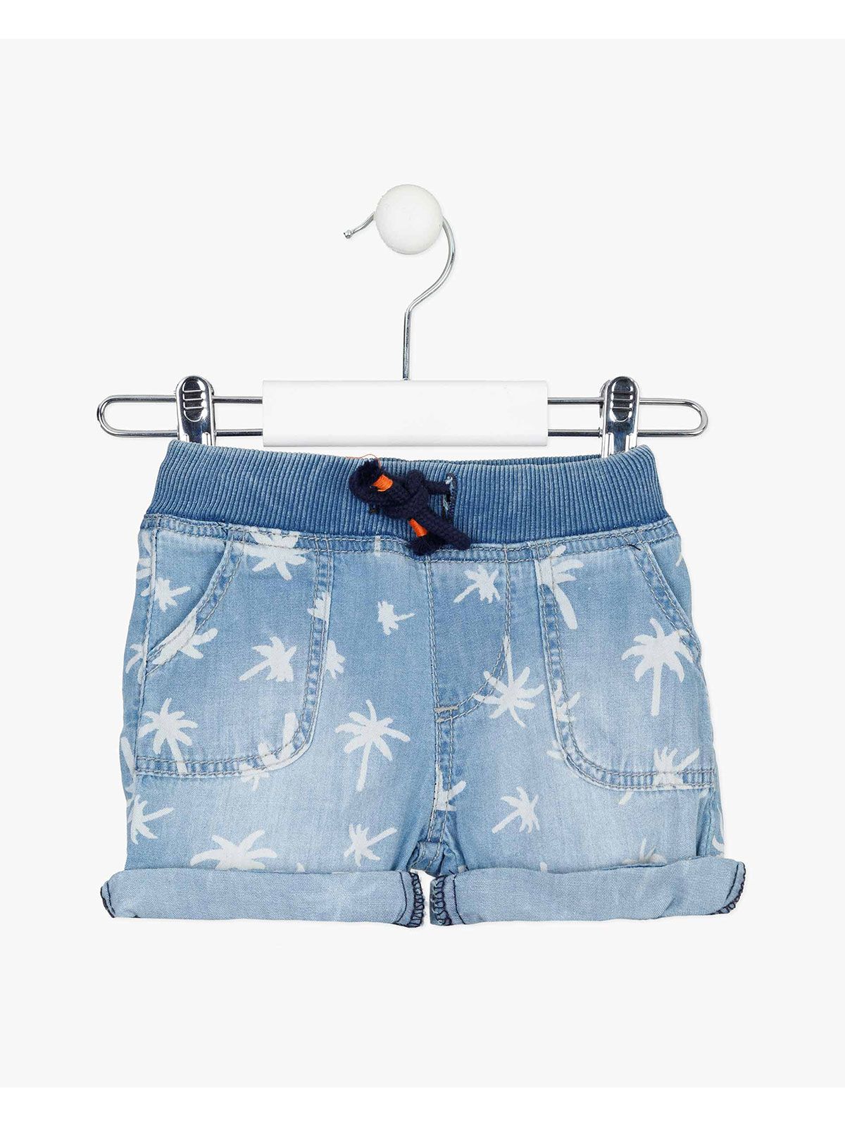 Σετ πουκάμισο τζιν με τσέπη και βερμούδα με print φοίνικες μπλε