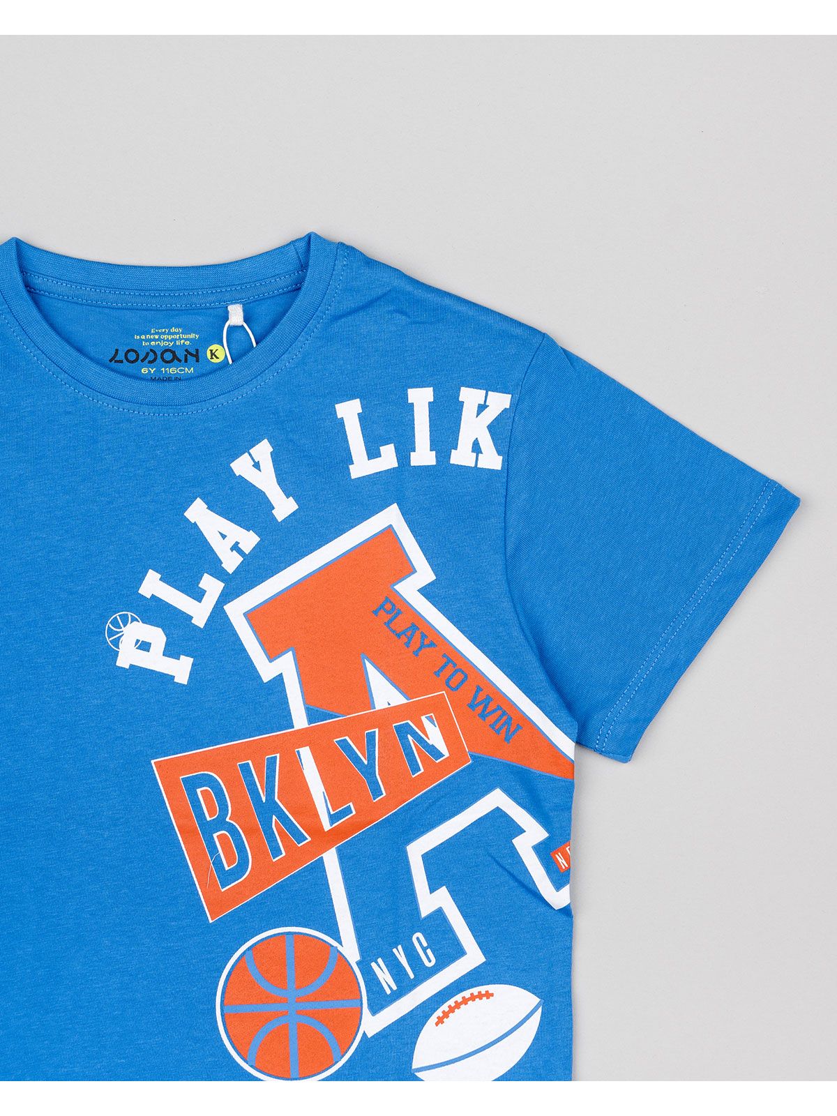 Μπλούζα κοντομάνικη βαμβακερή Losan Kids με διάφορα print μπλε ρουά