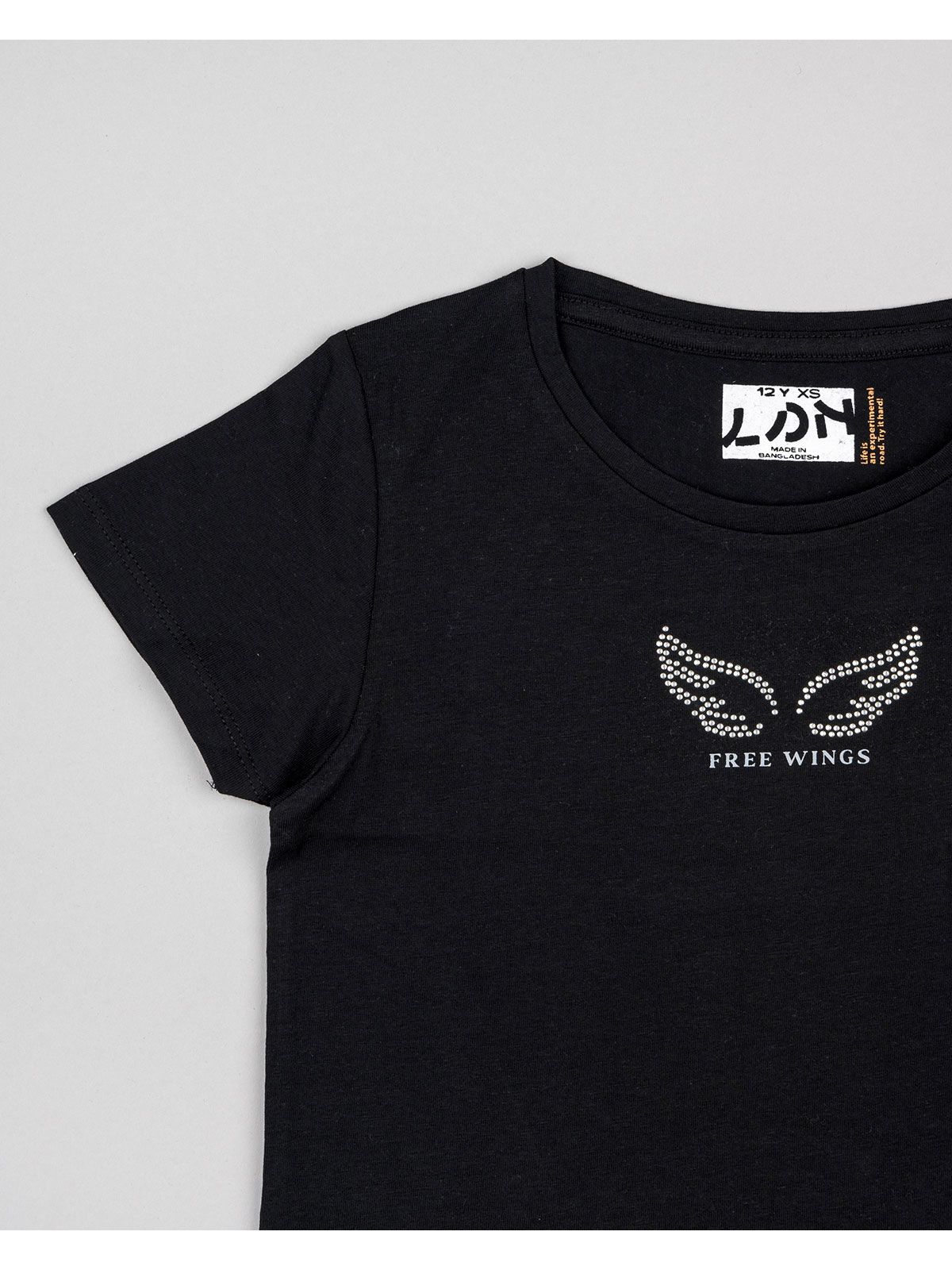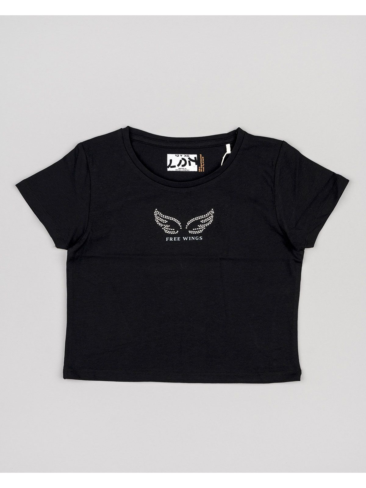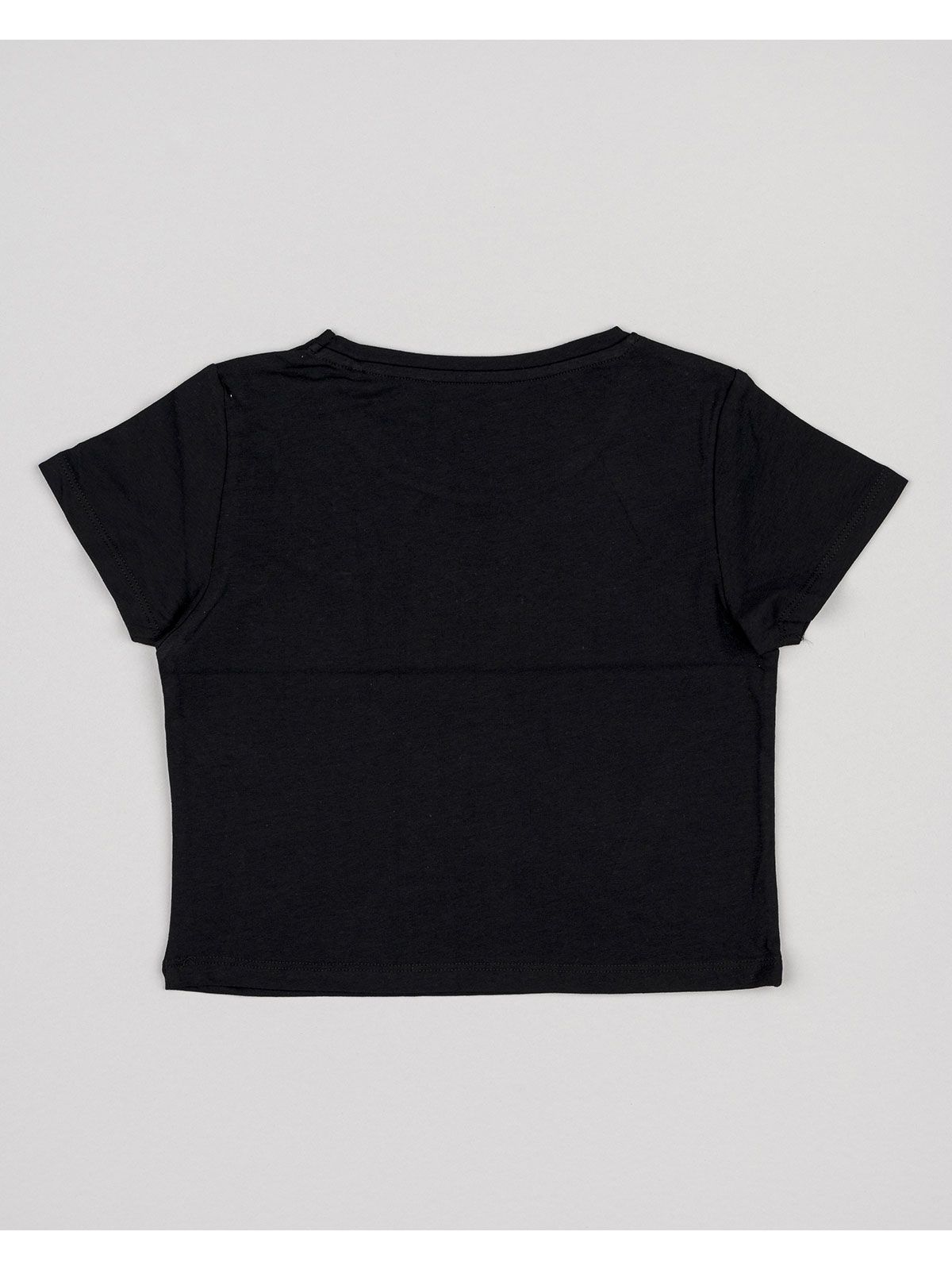Μπλούζα κοντομάνικη κροπ βαμβακερή με διάφορα print μαύρο
