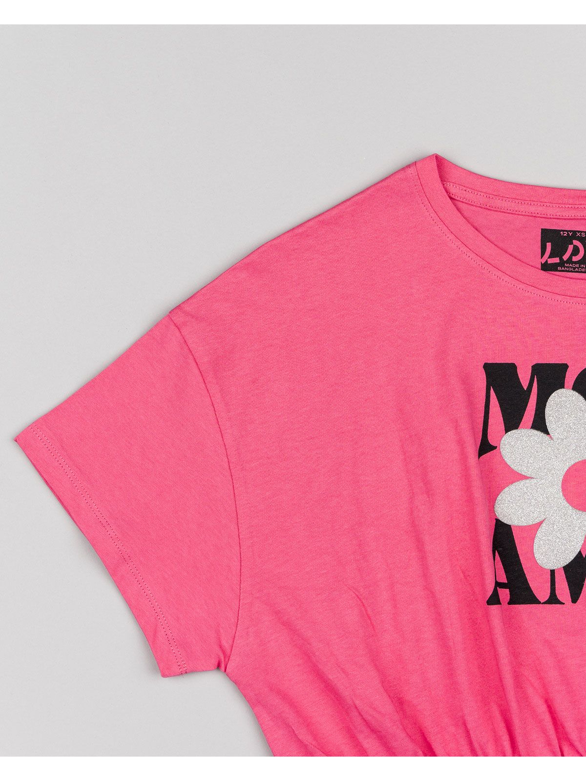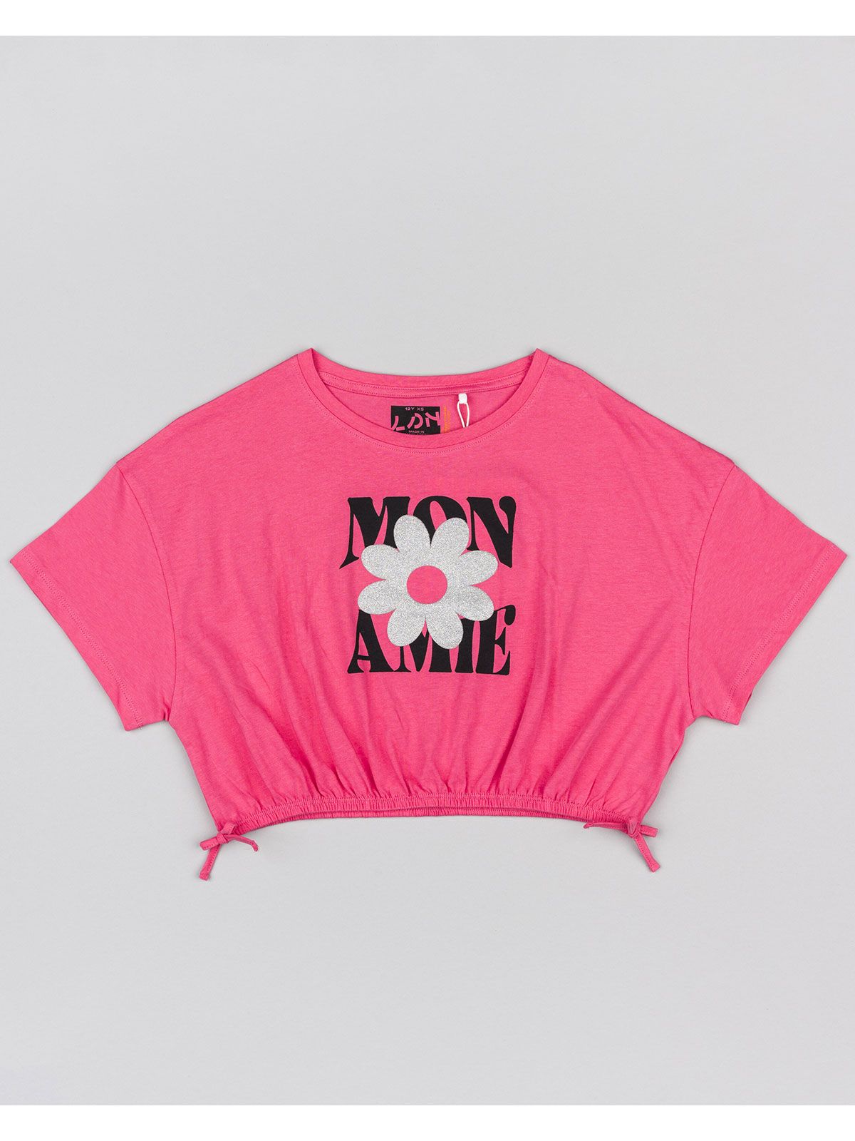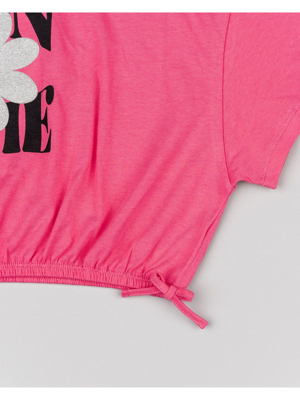 Μπλούζα κοντομάνικη κροπ βαμβακερή με διάφορα print φούξια