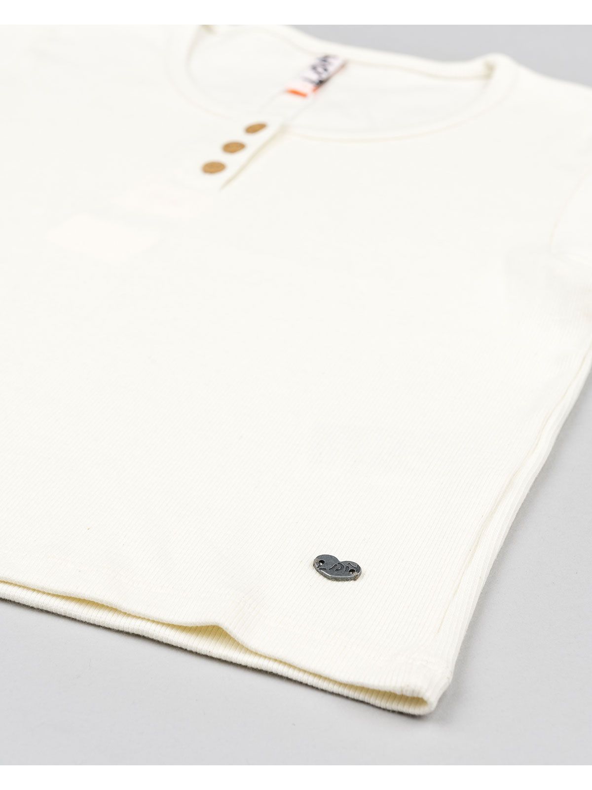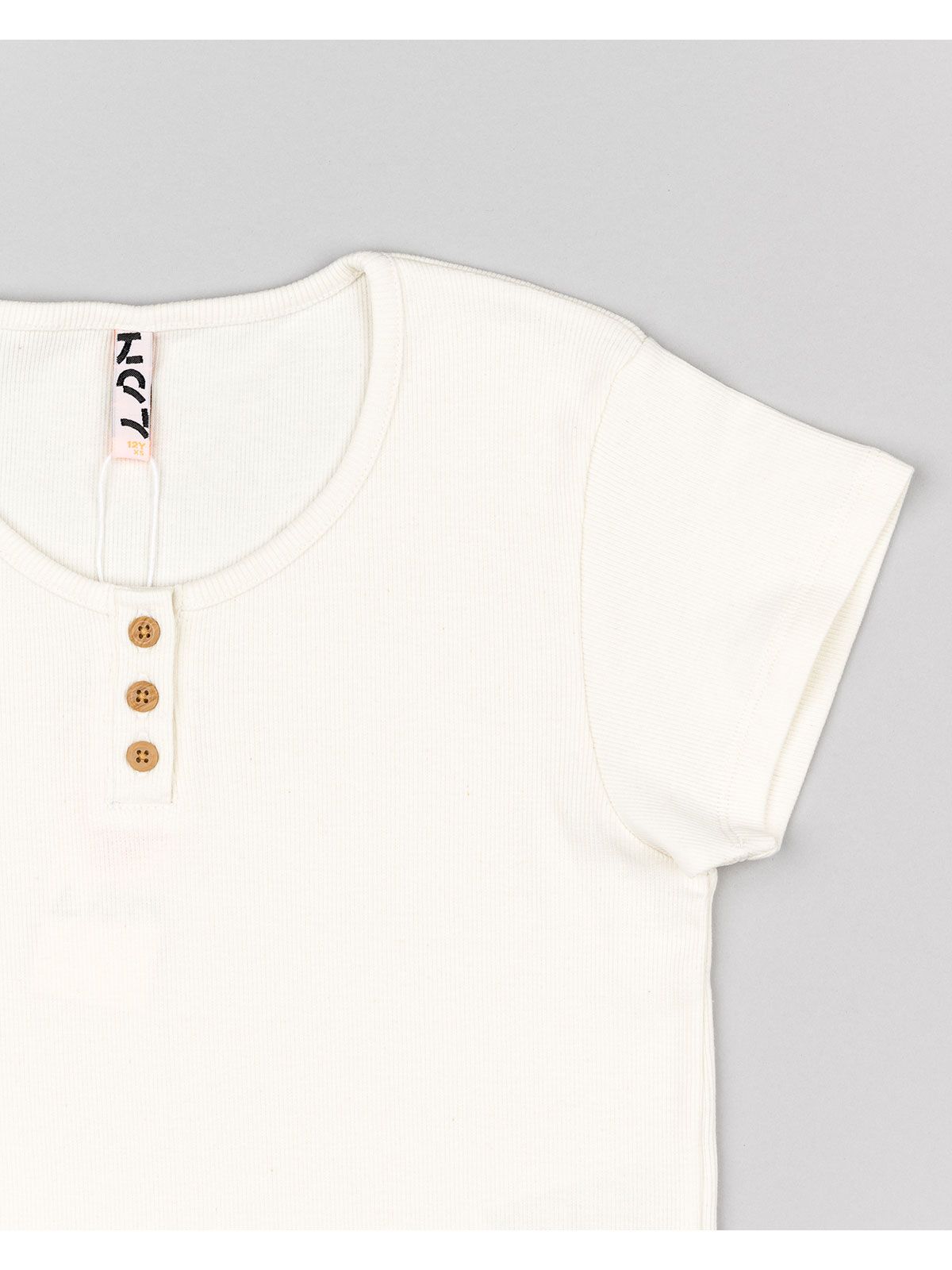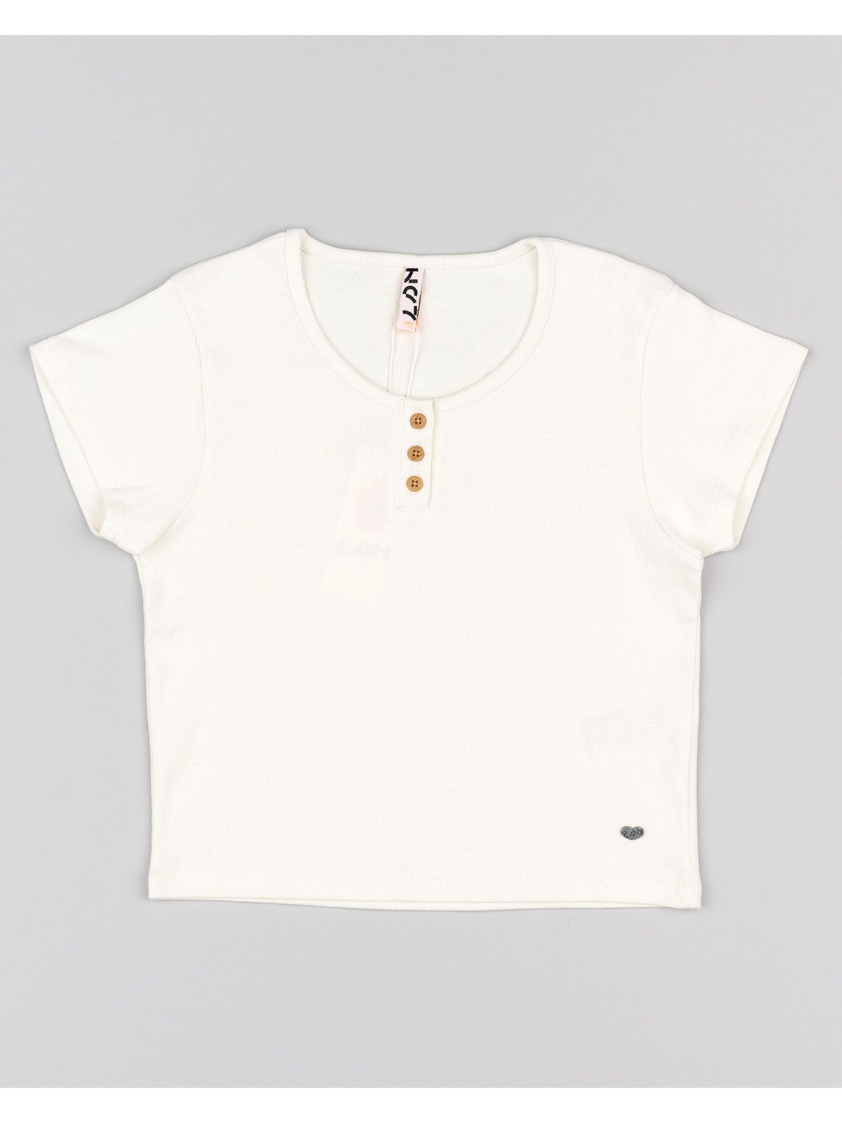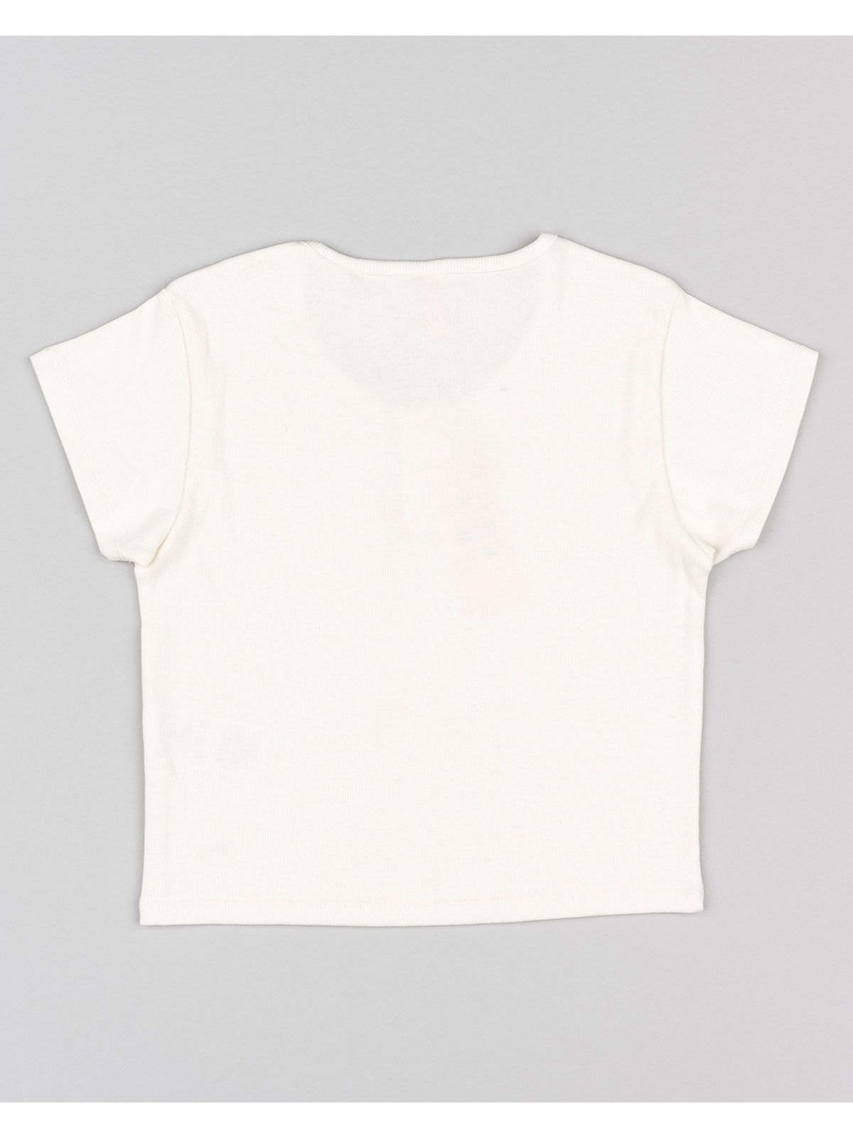 Μπλούζα κοντομάνικη κροπ βαμβακερή με διάφορα print εκρού