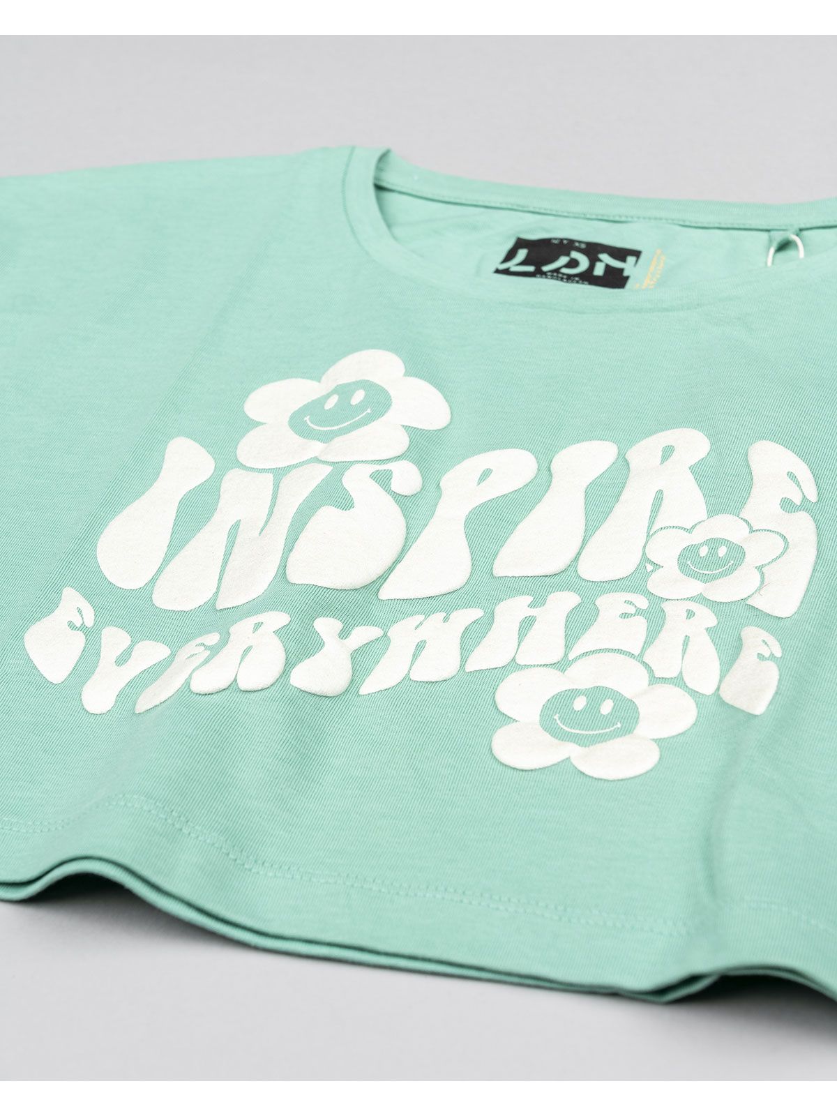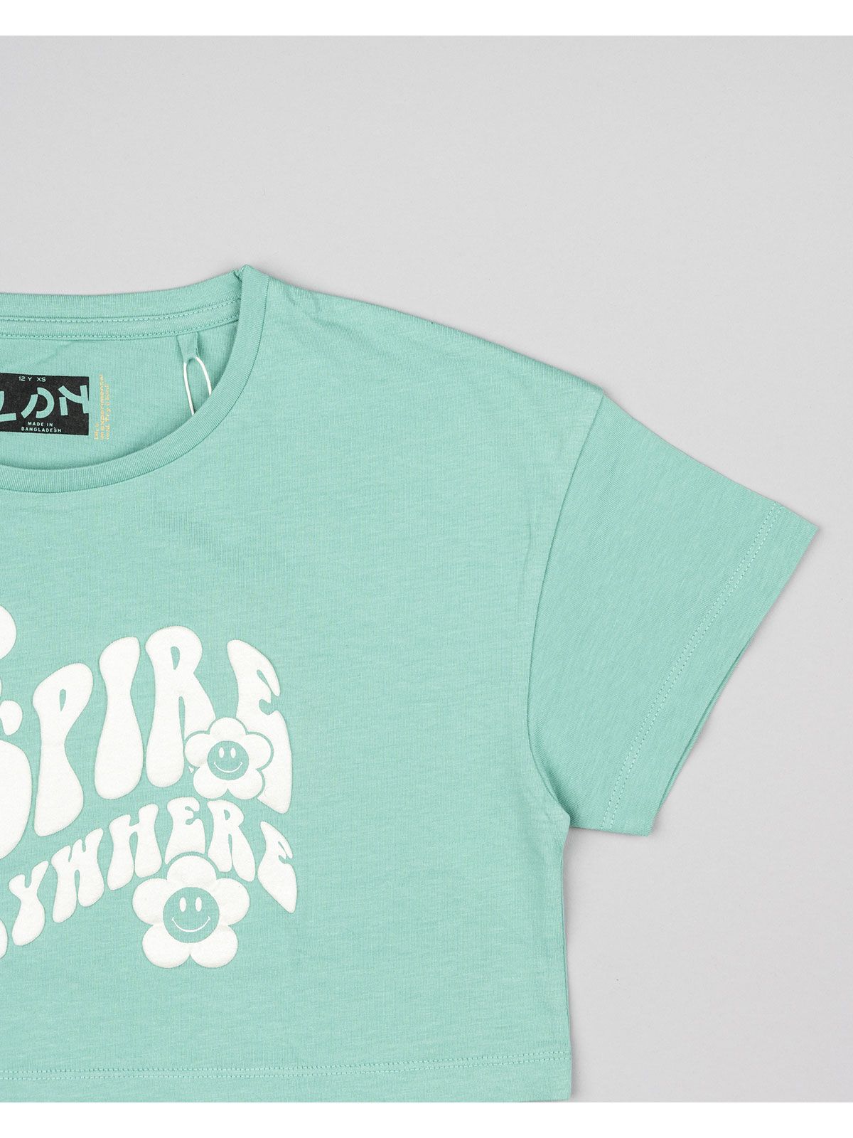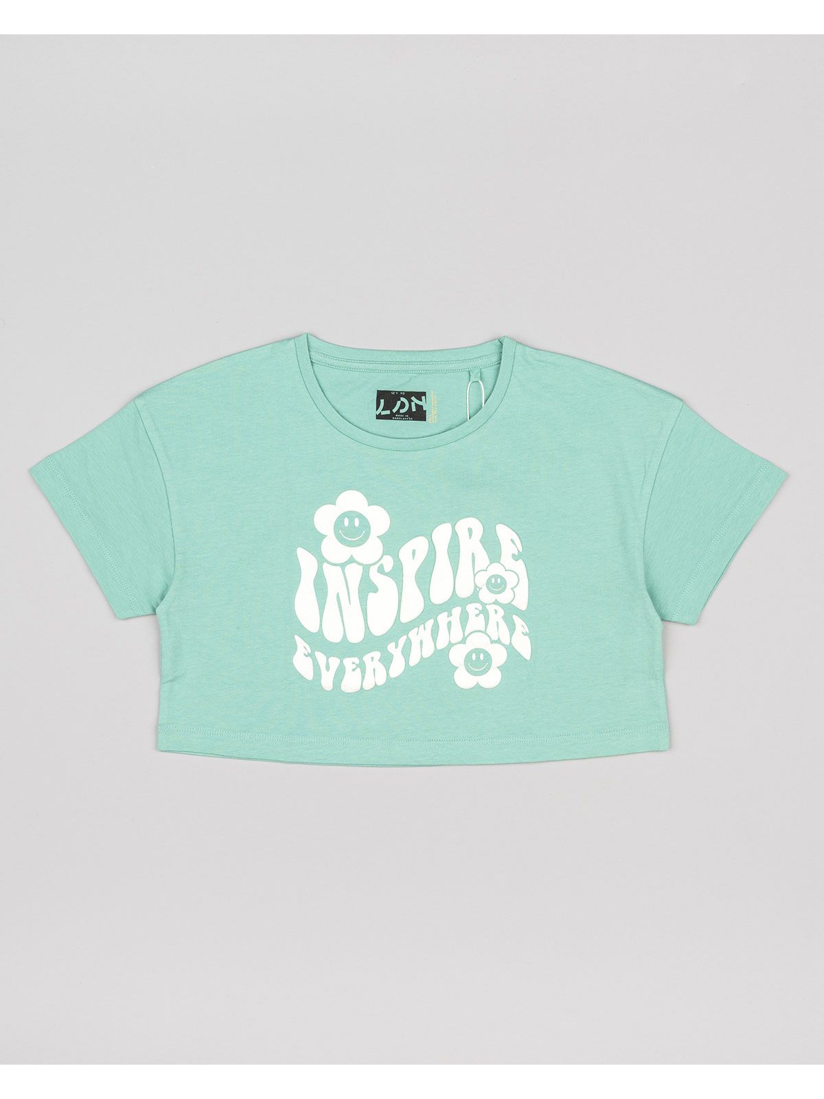 Μπλούζα κοντομάνικη κροπ βαμβακερή με διάφορα print μέντα