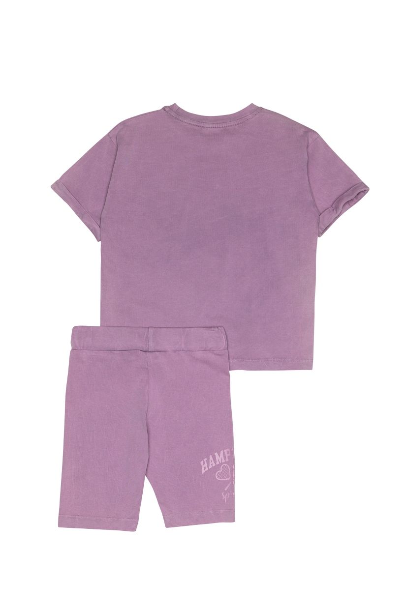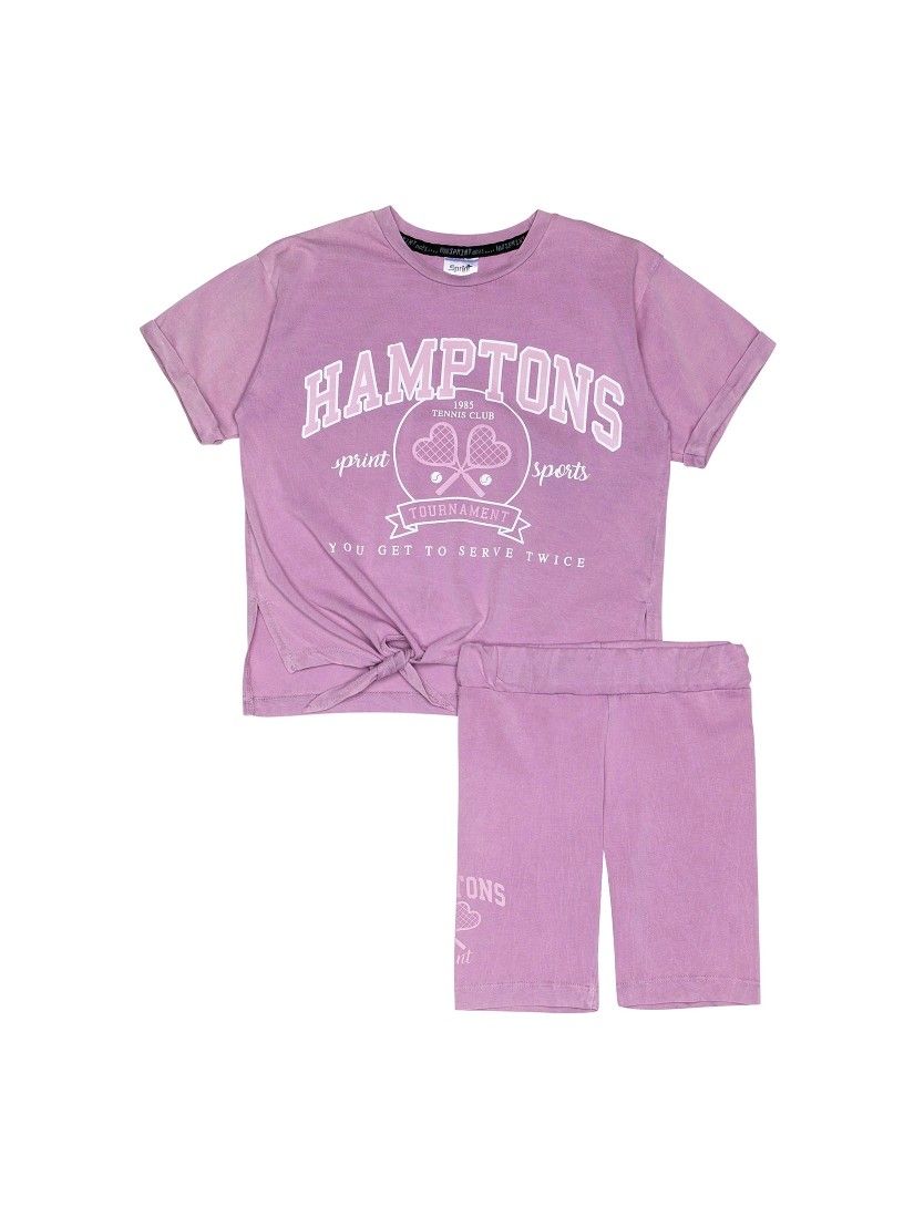 Σετ μπλούζα που δένει και ποδηλατικό κολάν λιλά