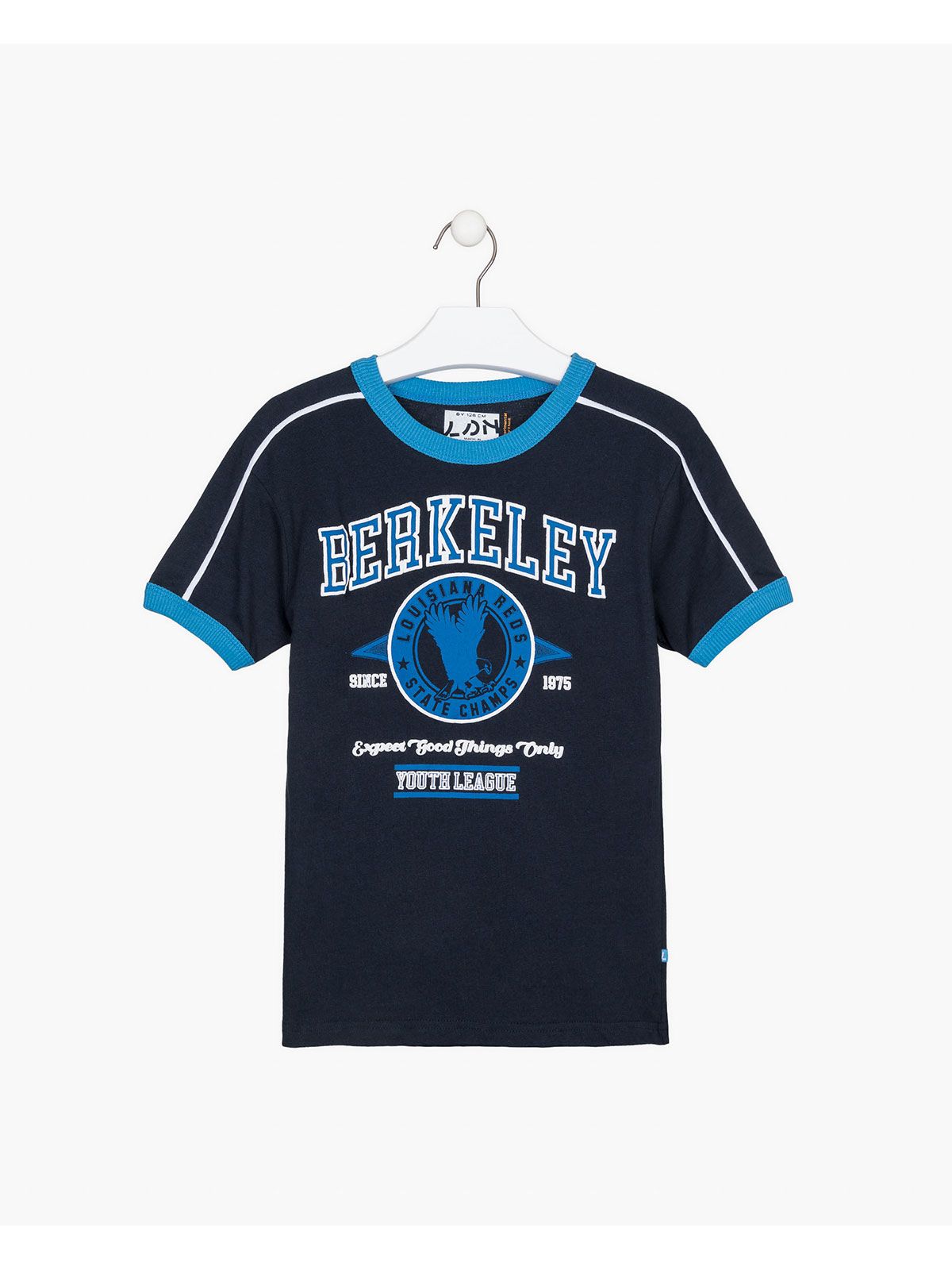 Μπλούζα κοντομάνικη βαμβακερή Losan Try με διάφορα print μπλε ρουά