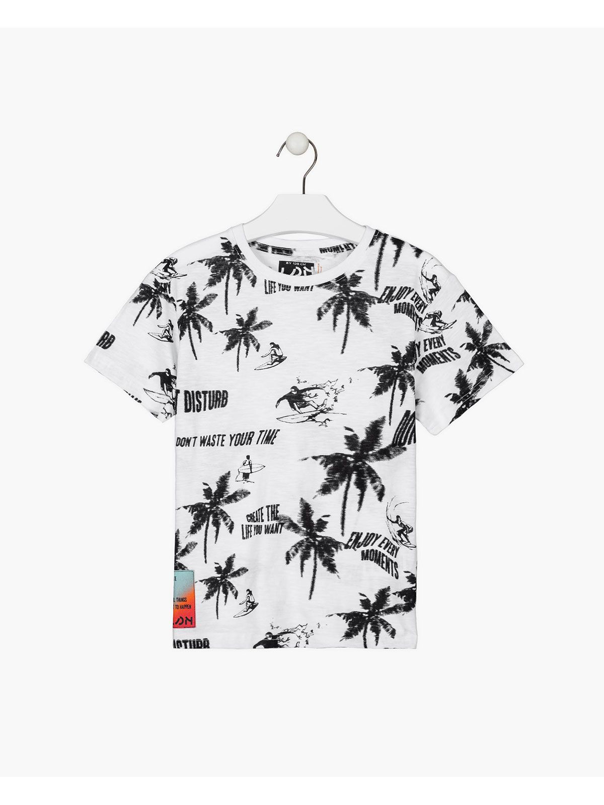 Μπλούζα κοντομάνικη βαμβακερή Losan Try με διάφορα print εκρού