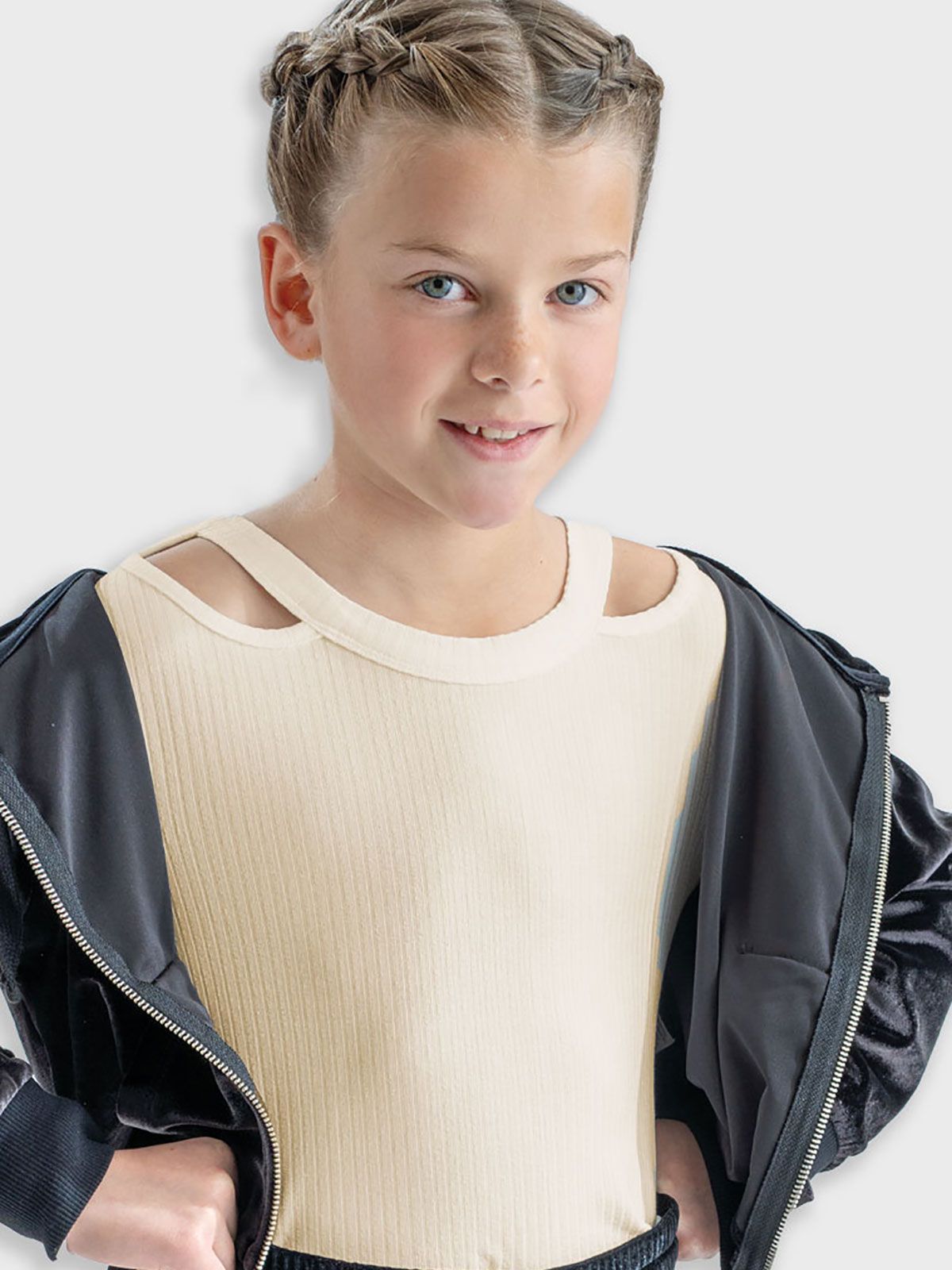 Κροπ τοπ ριπ μονόχρωμο με ανοίγματα στους ώμους μπεζ