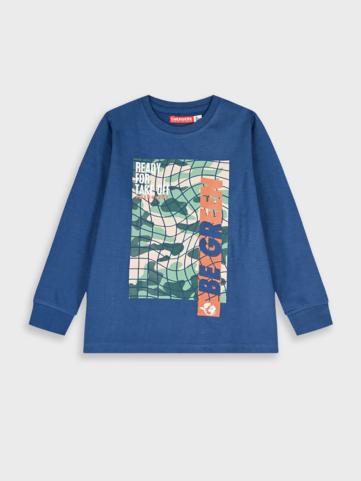 Μπλούζα βαμβακερή μακρυμάνικη με print be green μπλε