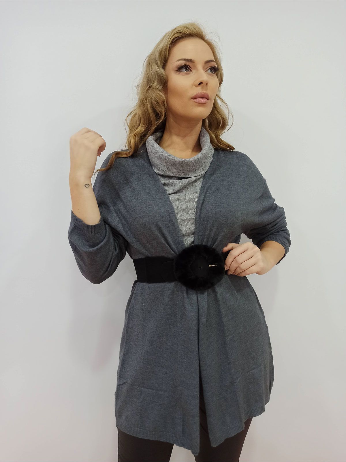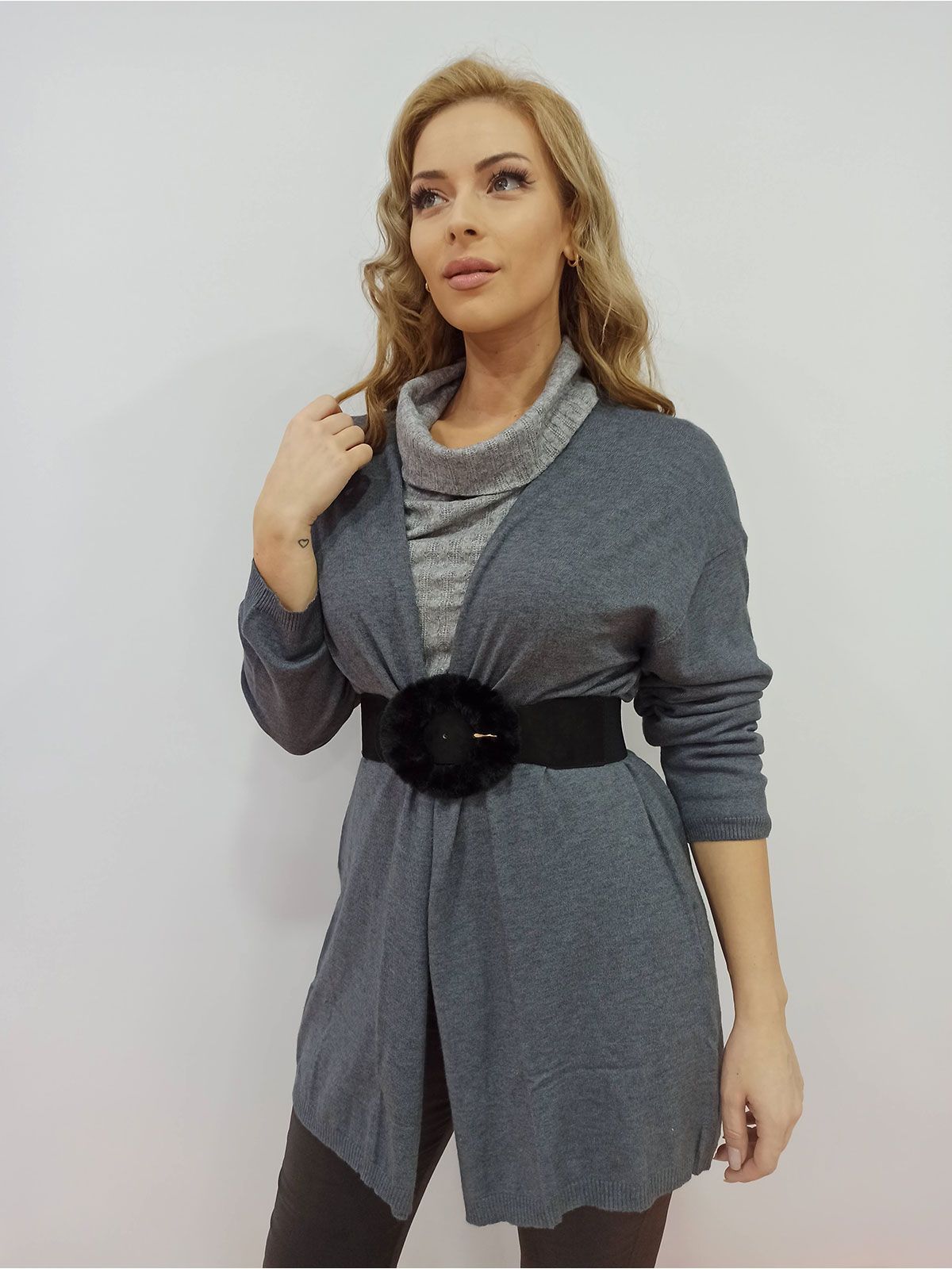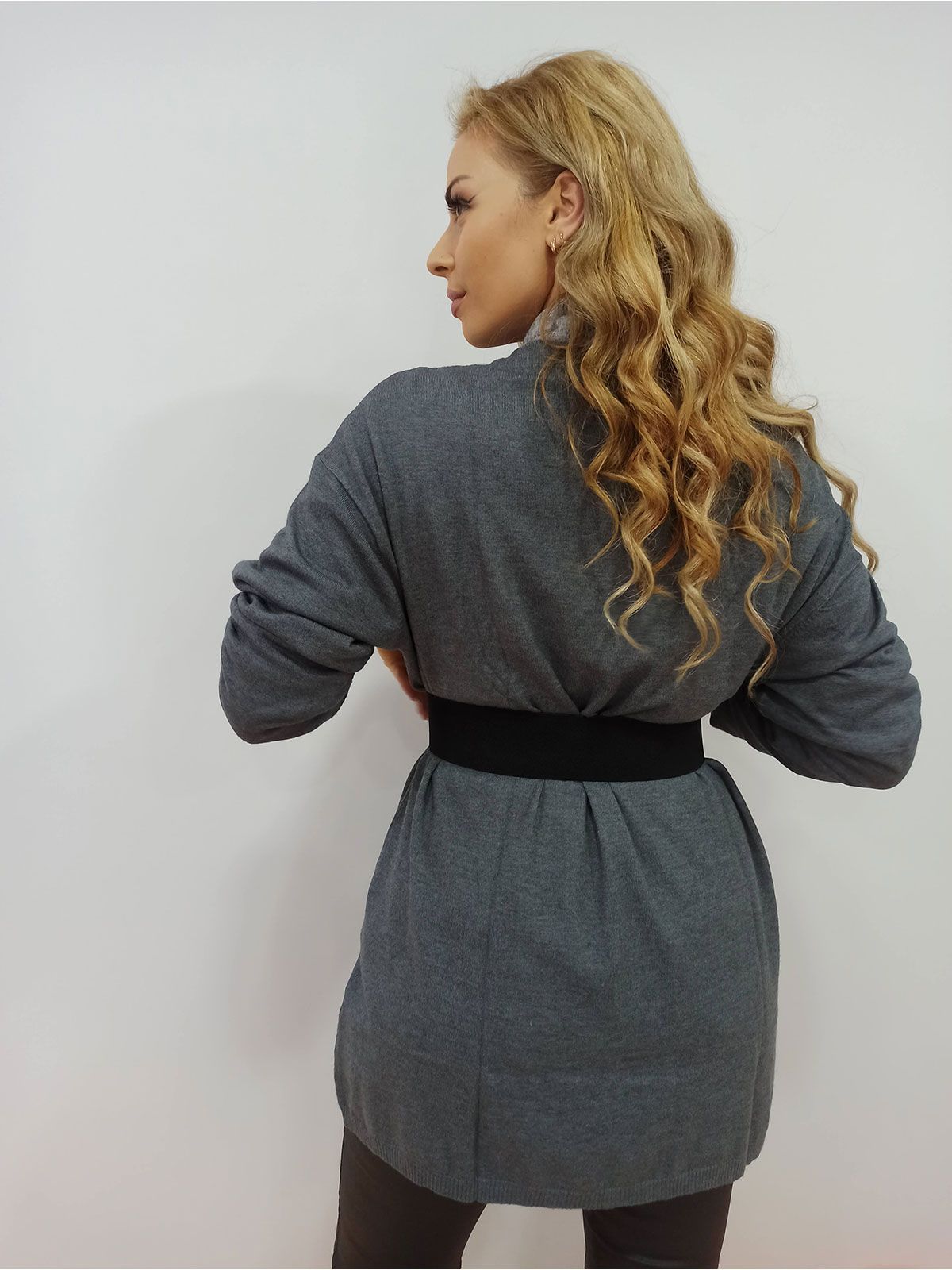 Ζακέτα μακριά μονόχρωμη χωρίς κουμπιά γκρι