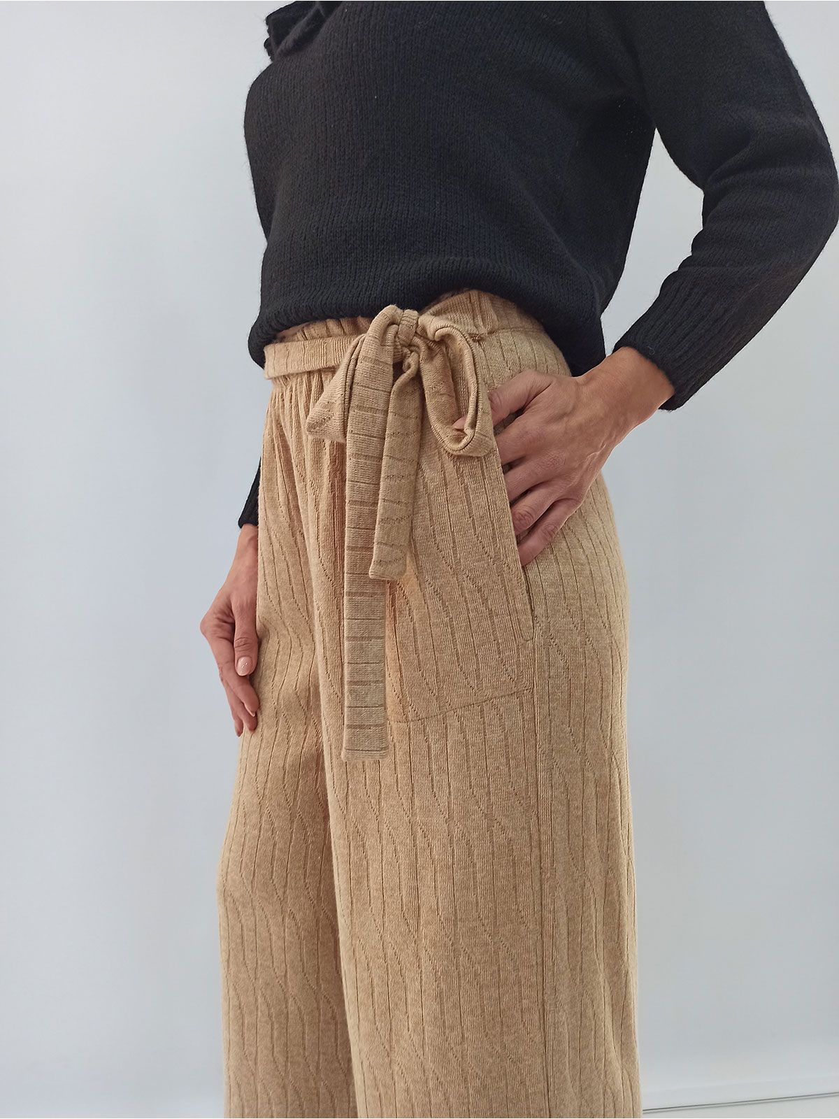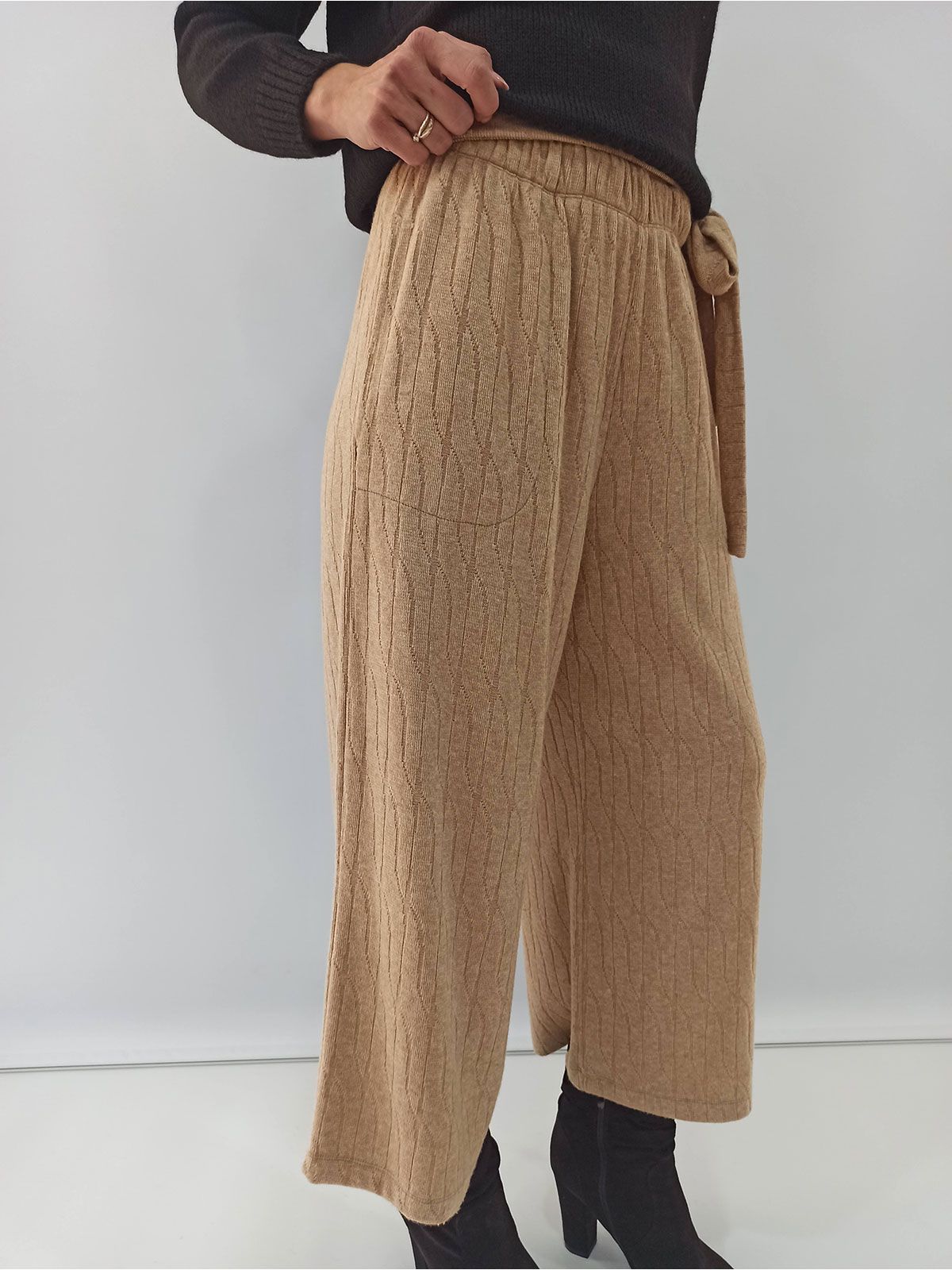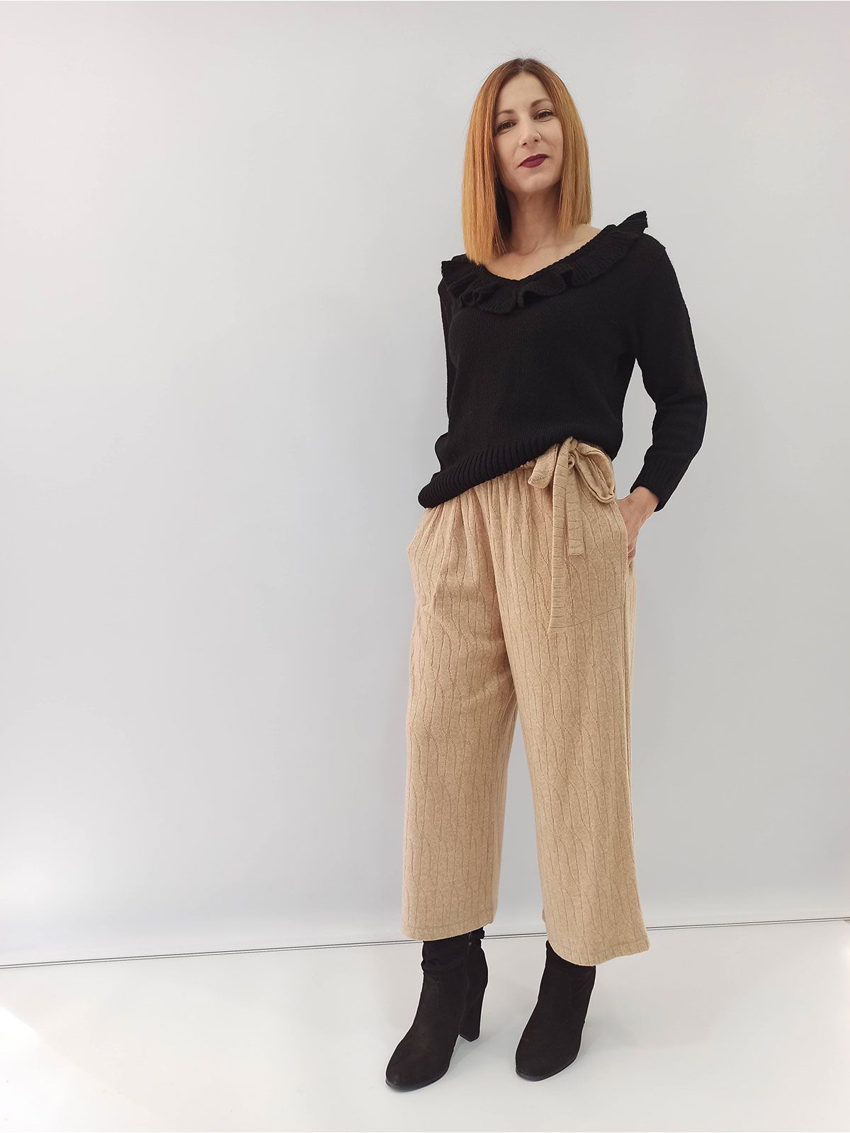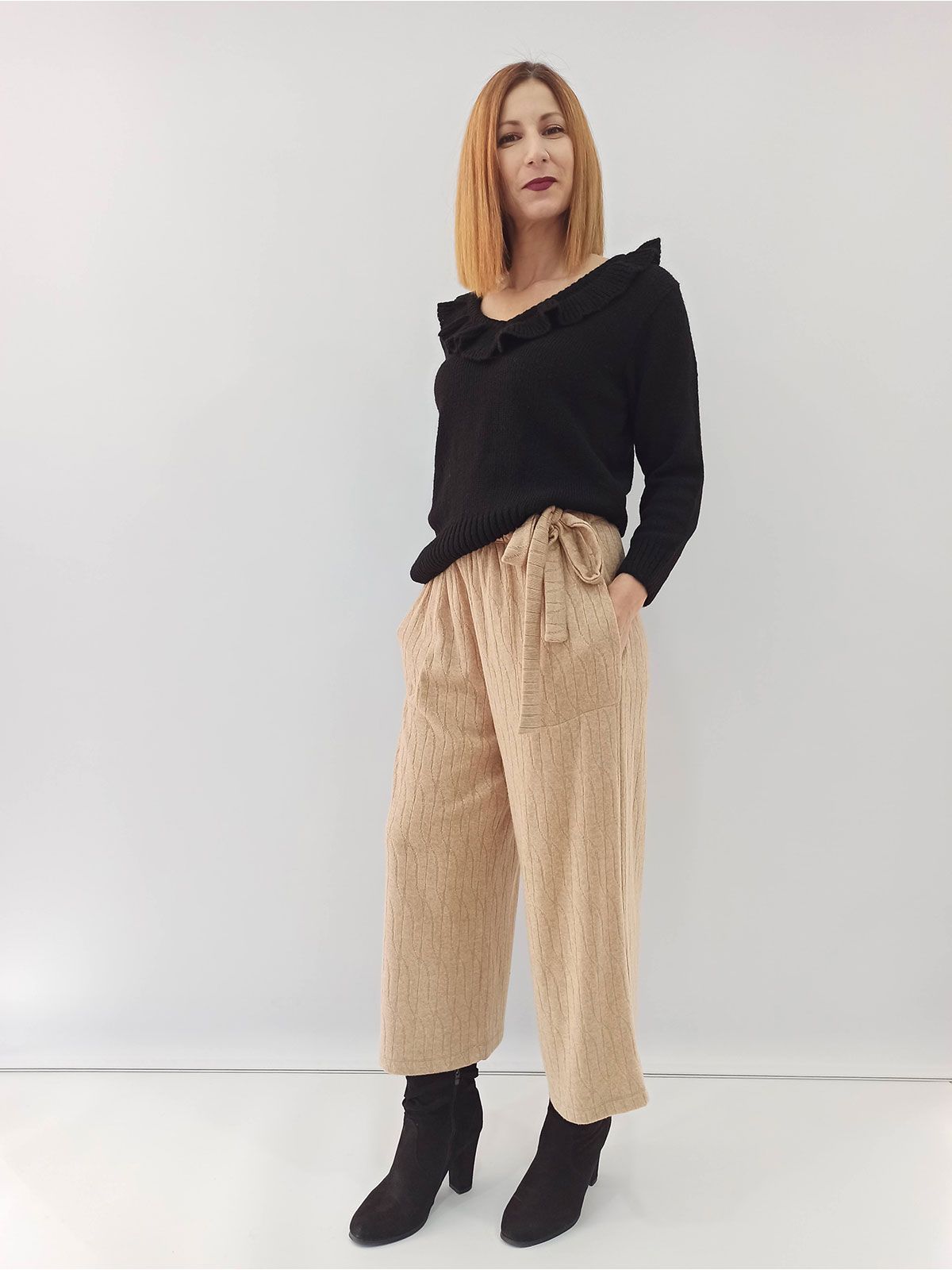 Παντελόνα ζιπ κιλότ ελληνικής ραφής μονόχρωμη με ζώνη μπεζ