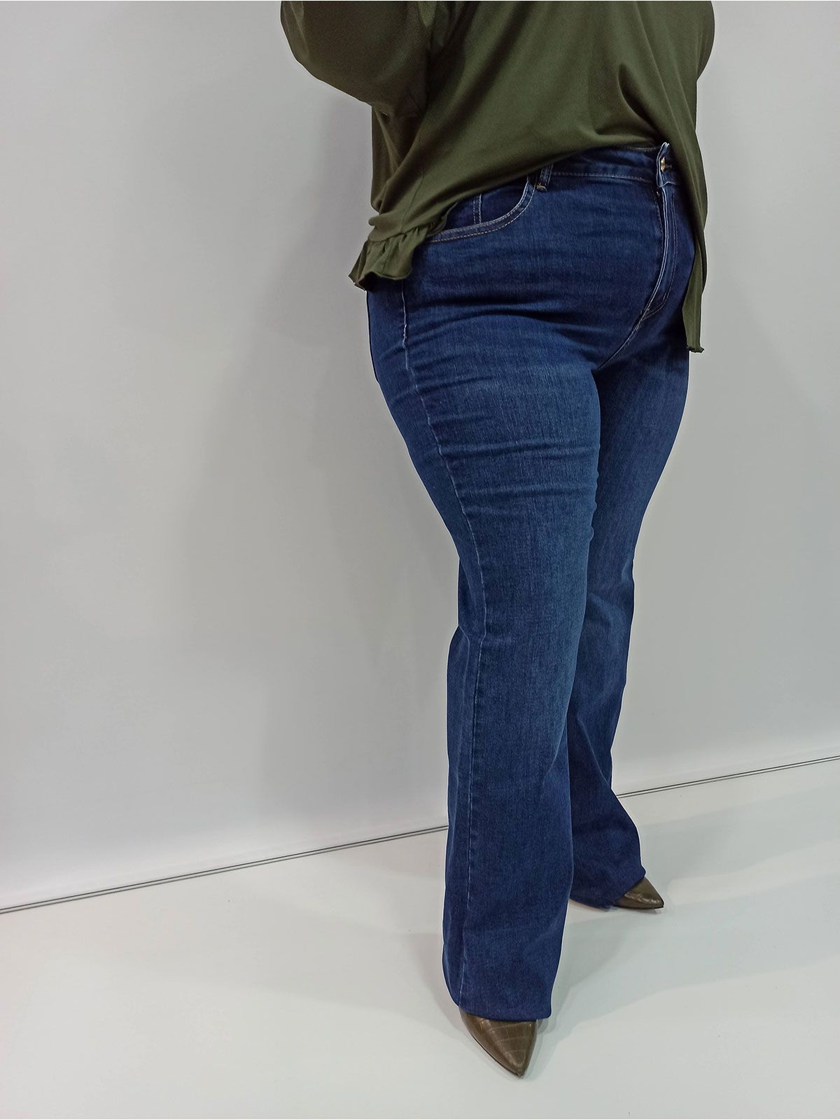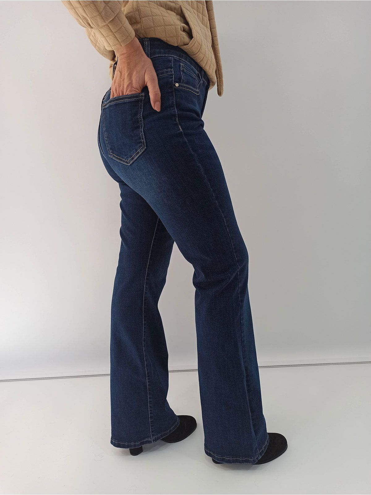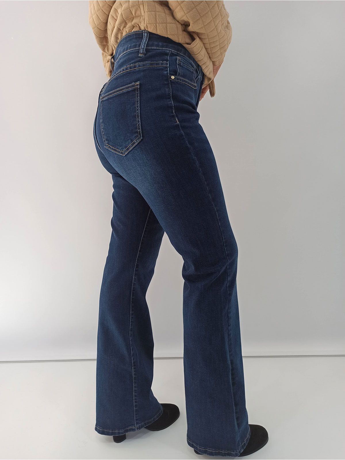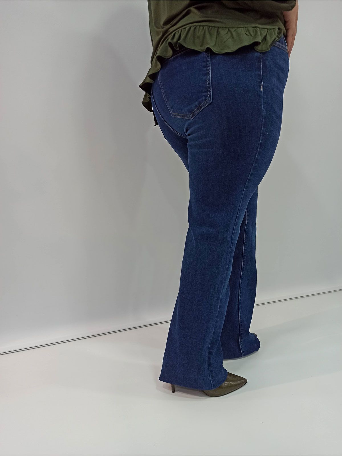 Παντελόνι τζιν καμπάνα μονόχρωμη με τσέπες και γαζιά μπλε