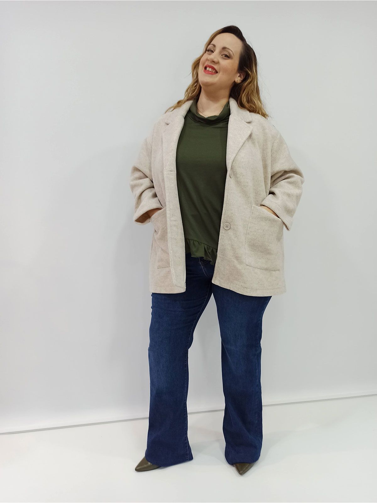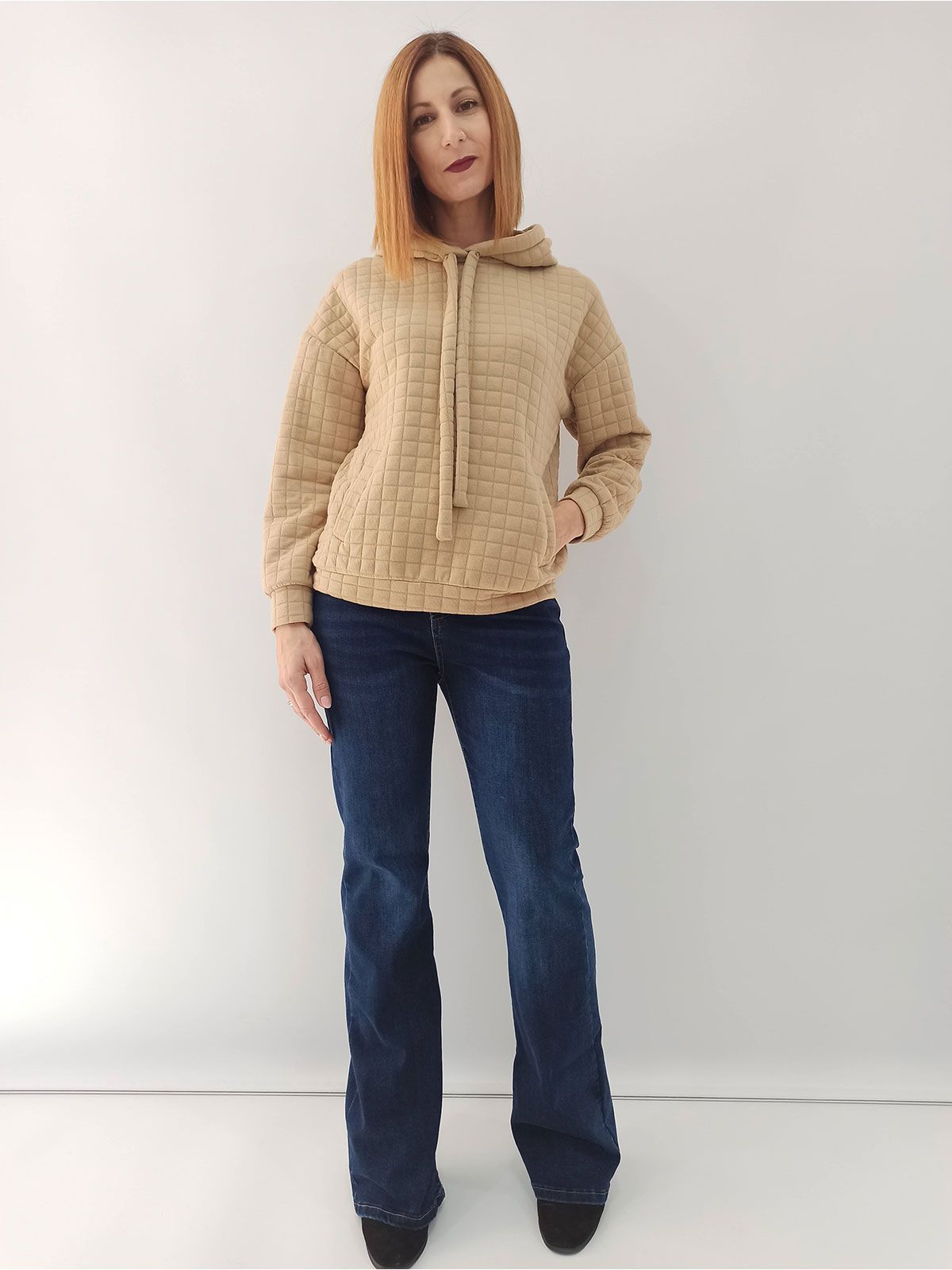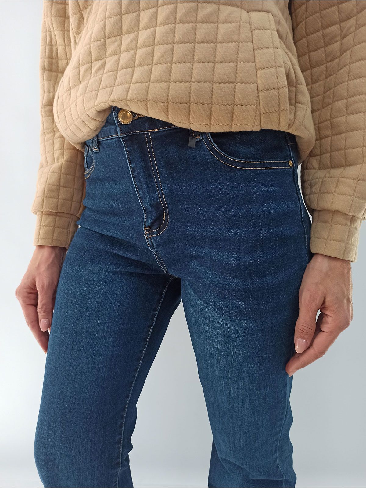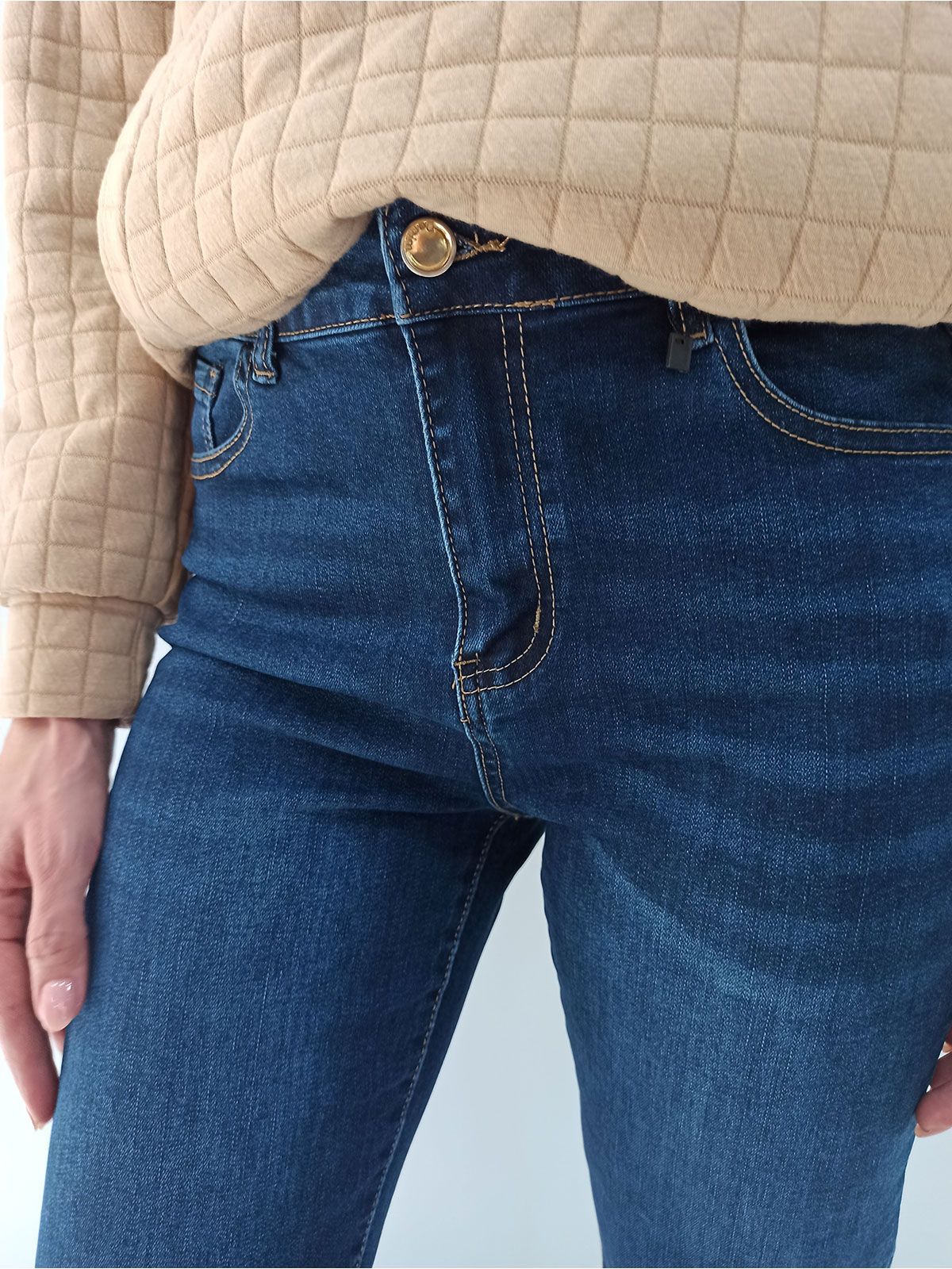 Παντελόνι τζιν καμπάνα μονόχρωμη με τσέπες και γαζιά μπλε