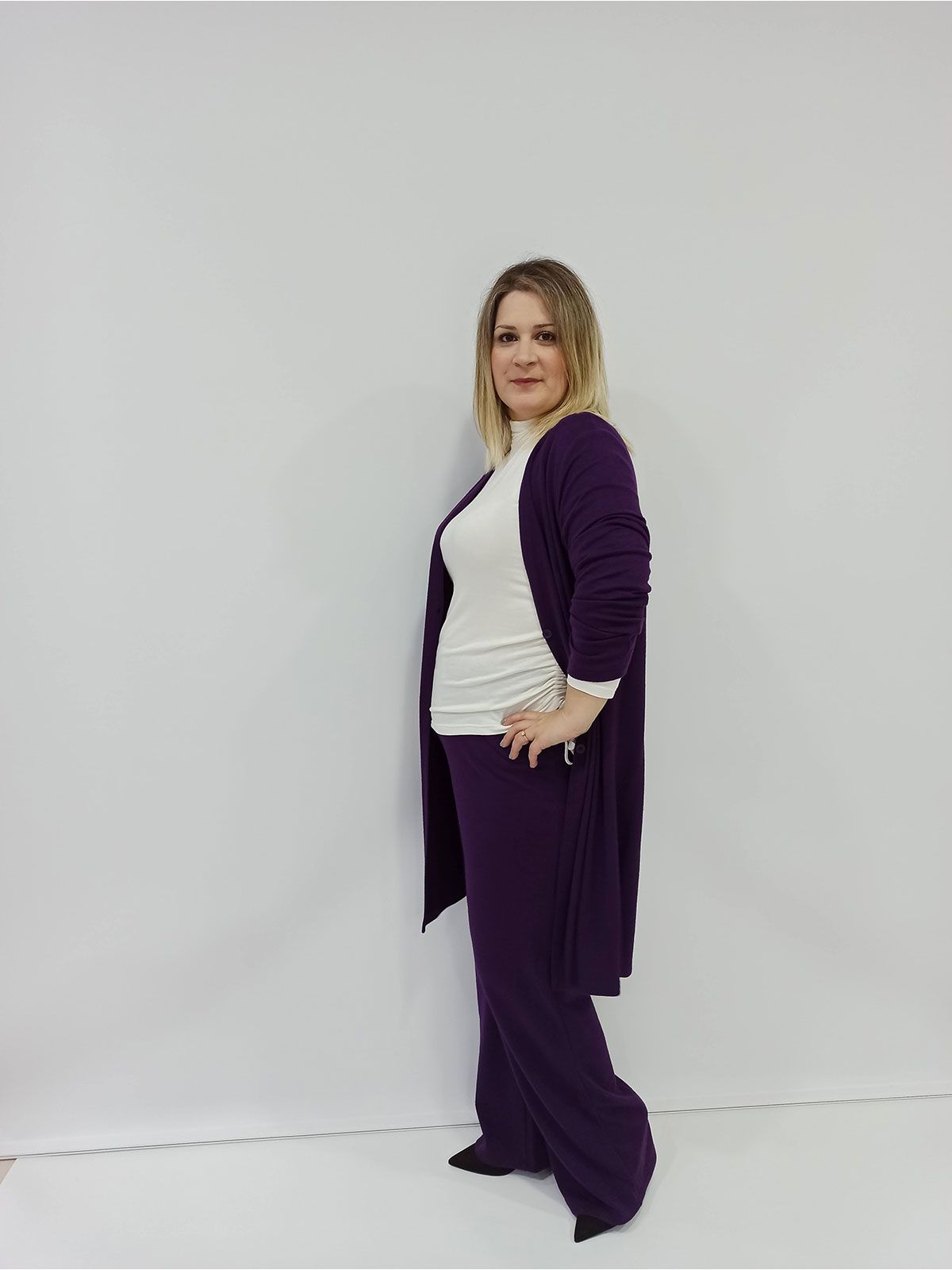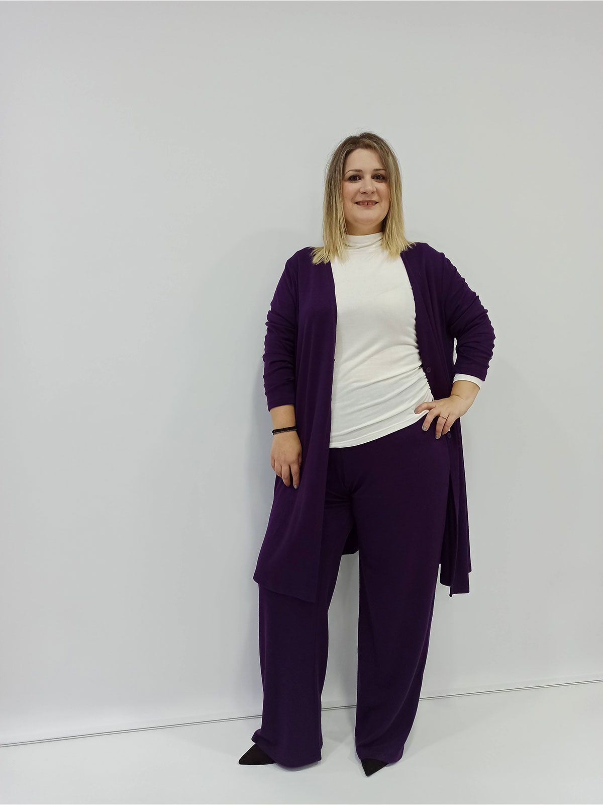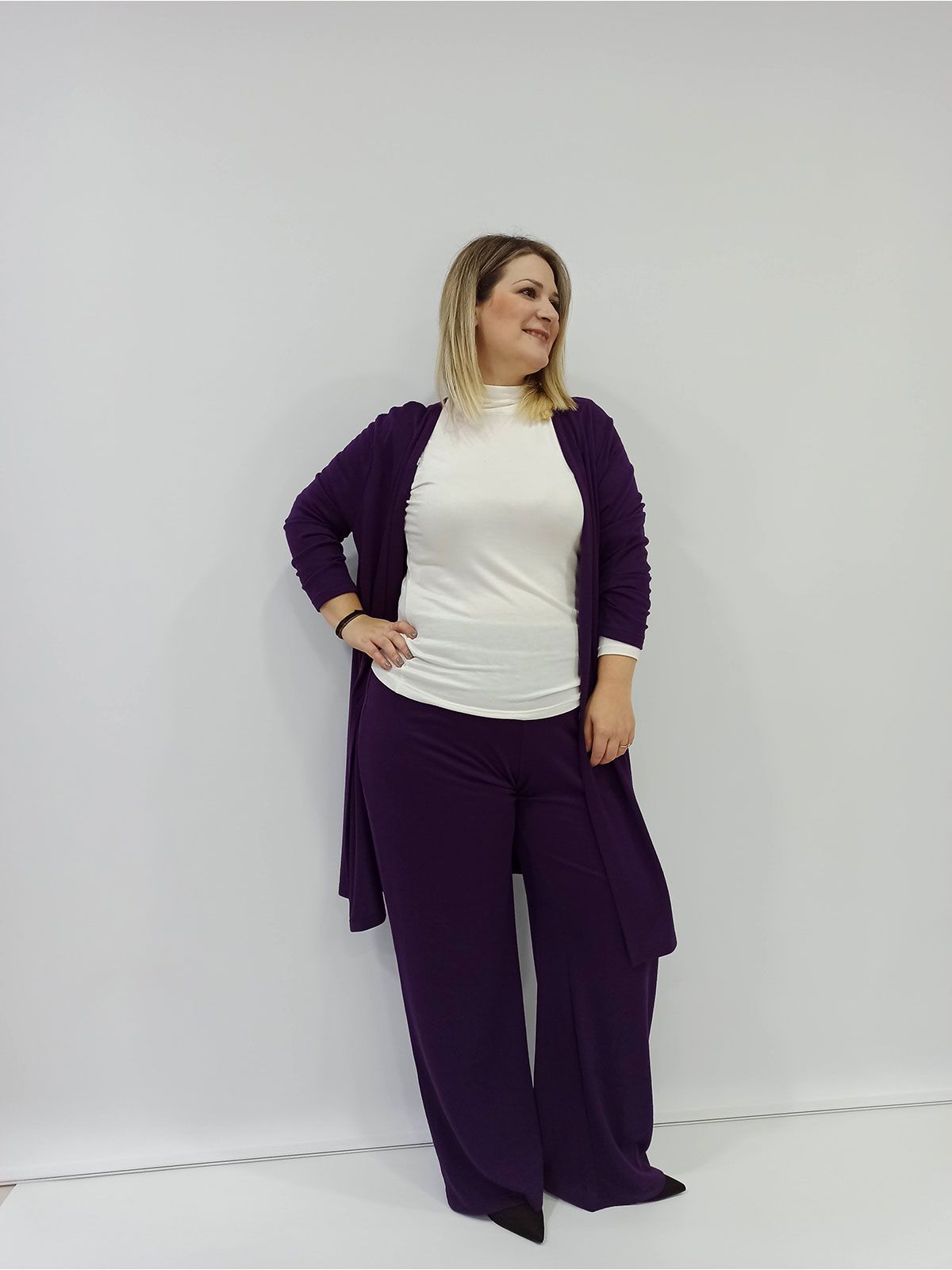 Παντελόνα μονόχρωμη με λάστιχο στη μέση ελληνικής ραφής μωβ