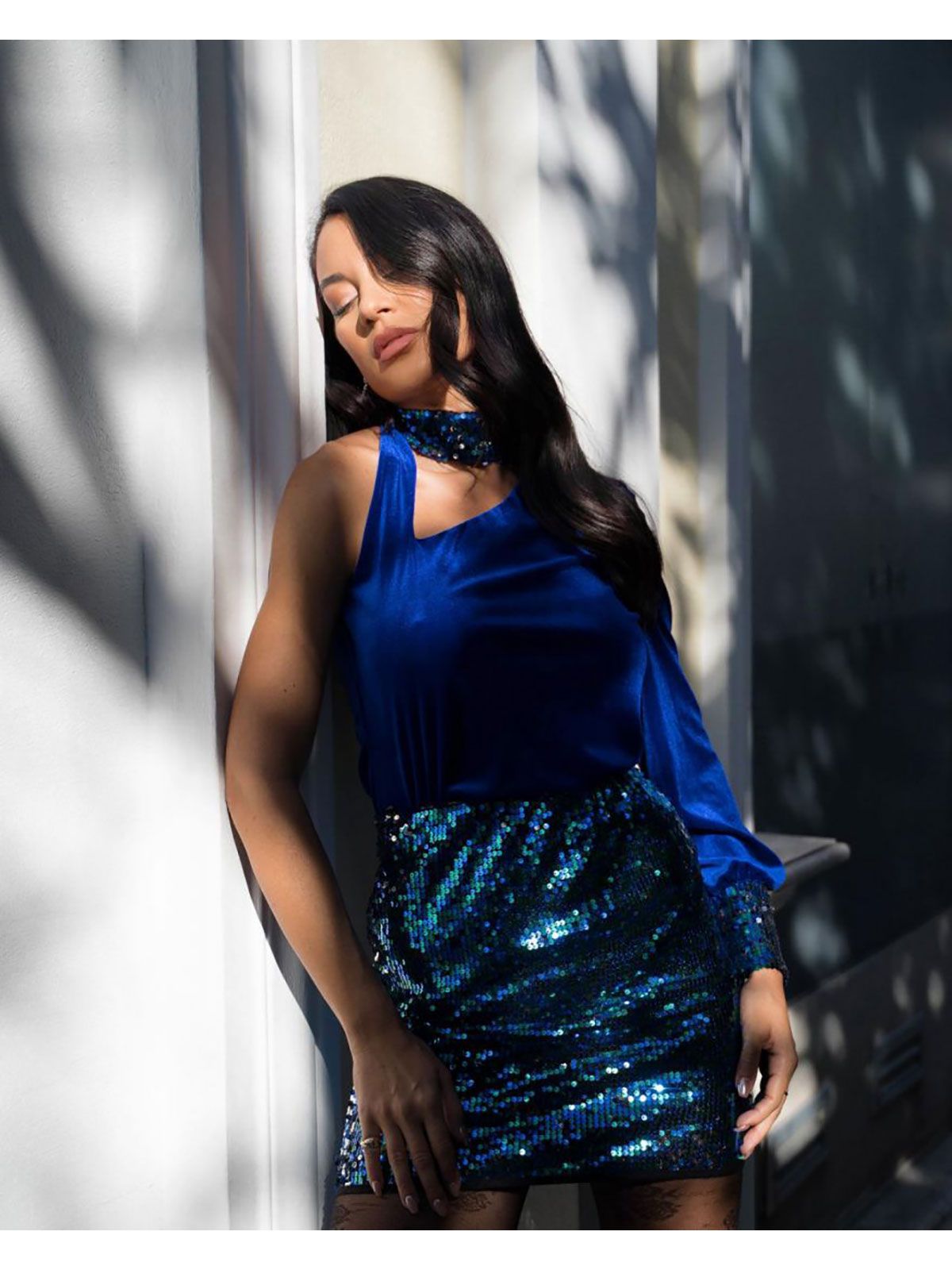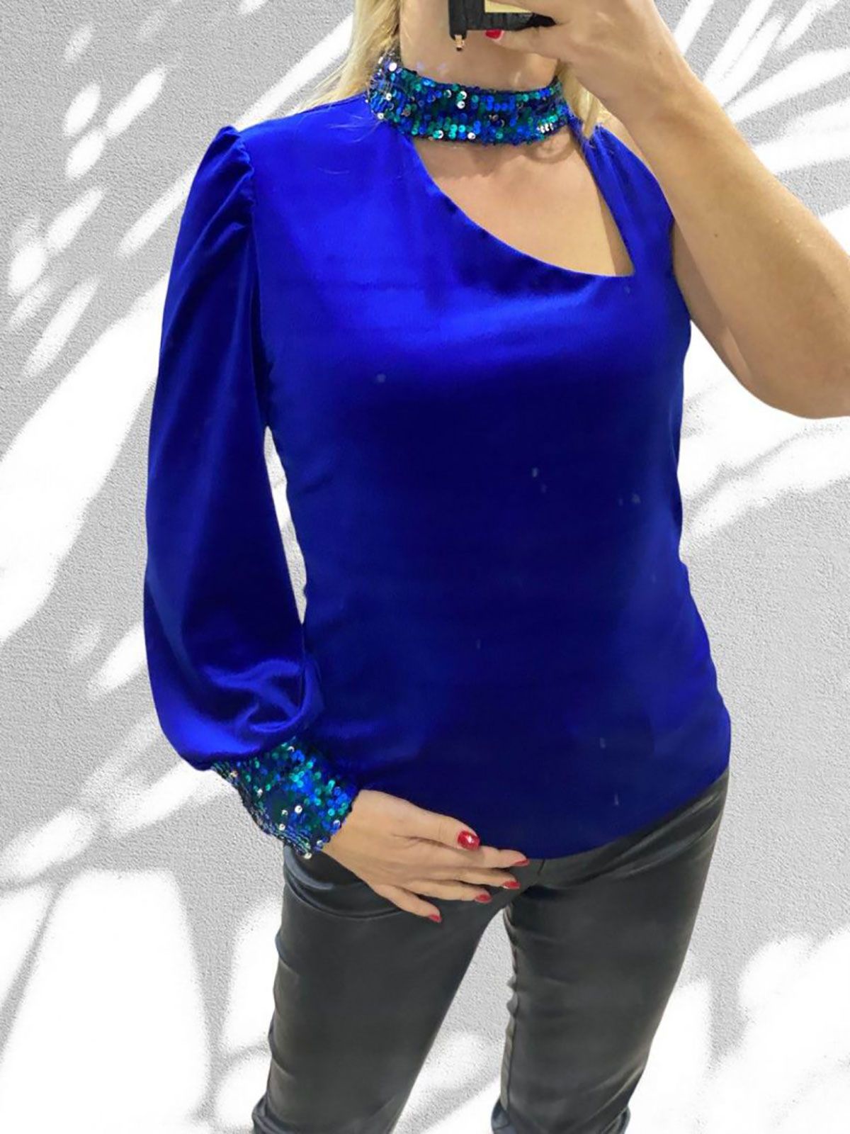 Μπλούζα με ένα μανίκι και τσόκερ με πούλιες ελληνικής ραφής μπλε