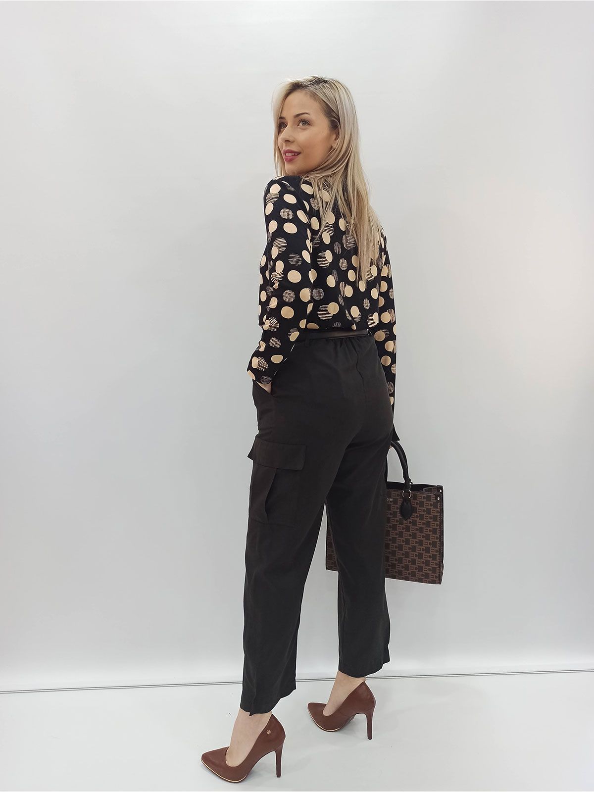 Παντελόνι Cargo με λάστιχο στη μέση ελληνικής ραφής μαύρο