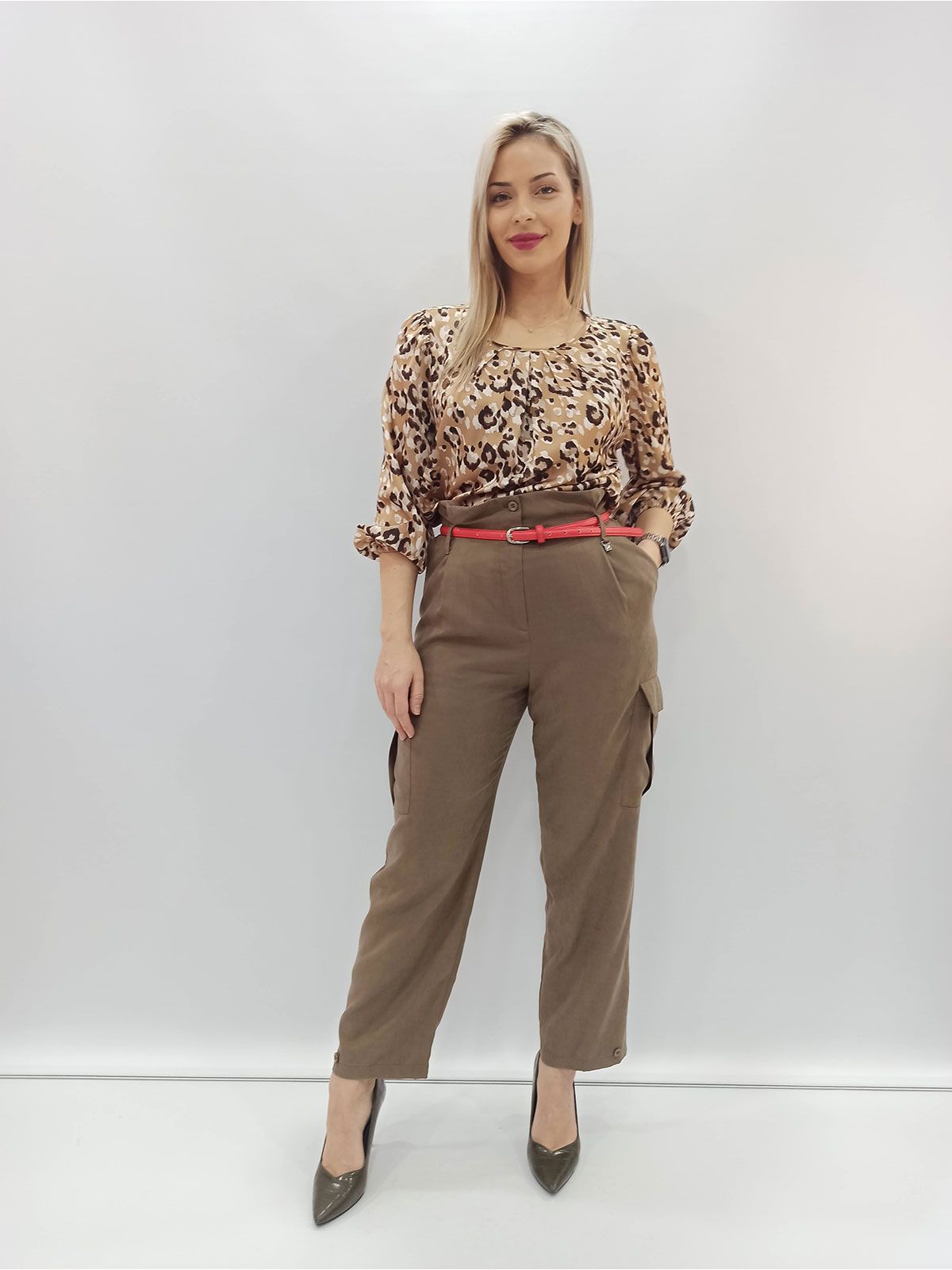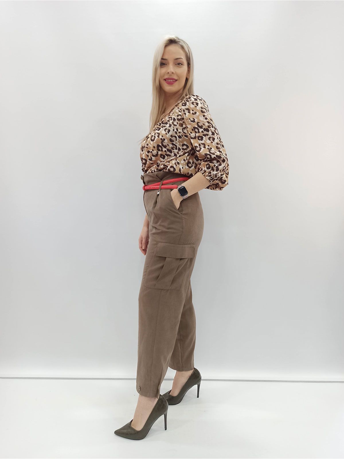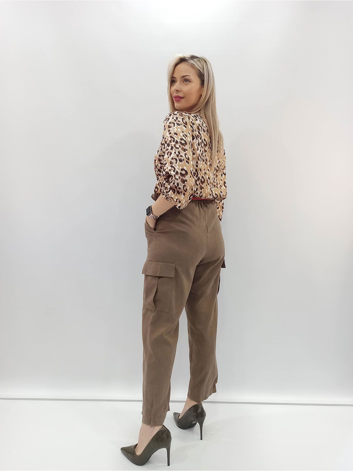 Παντελόνι Cargo με λάστιχο στη μέση ελληνικής ραφής καφέ