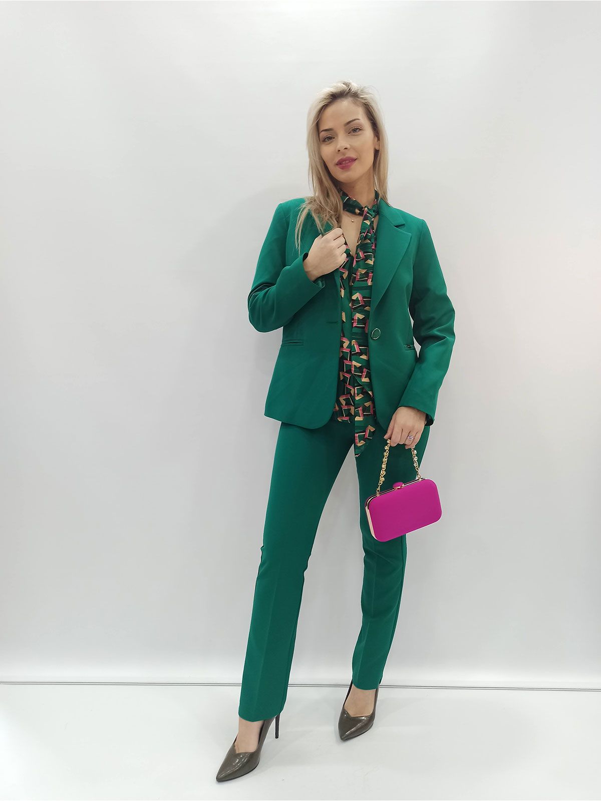Σακάκι κρεπ μονόχρωμο με κουμπί ελληνικής ραφής πράσινο