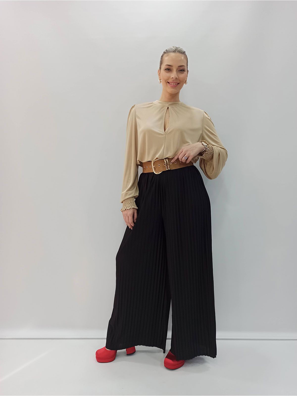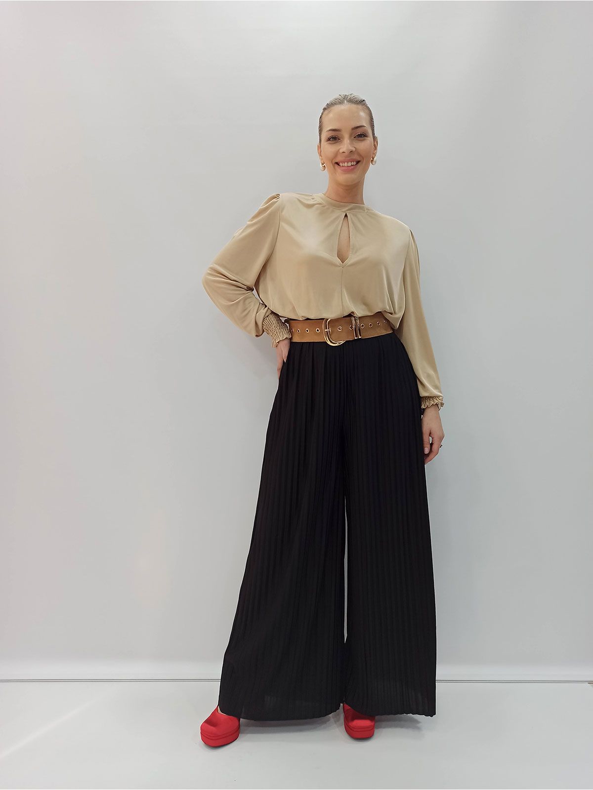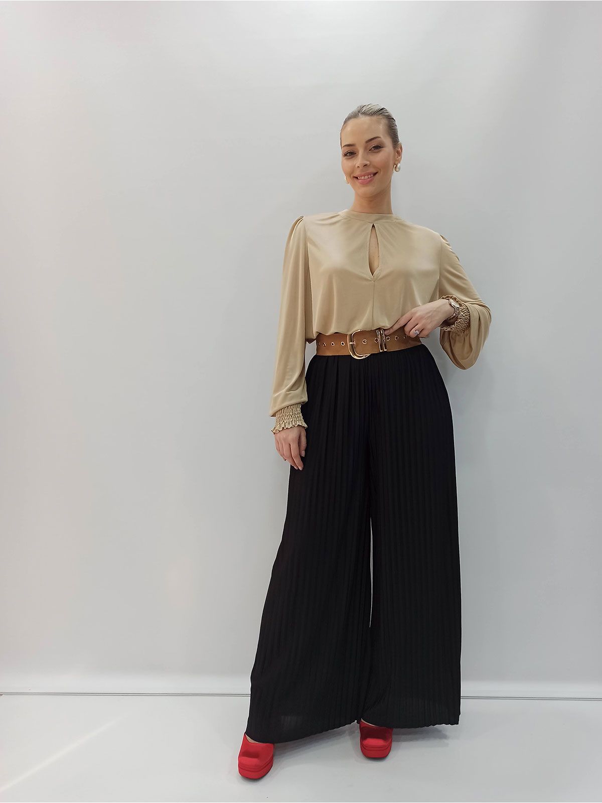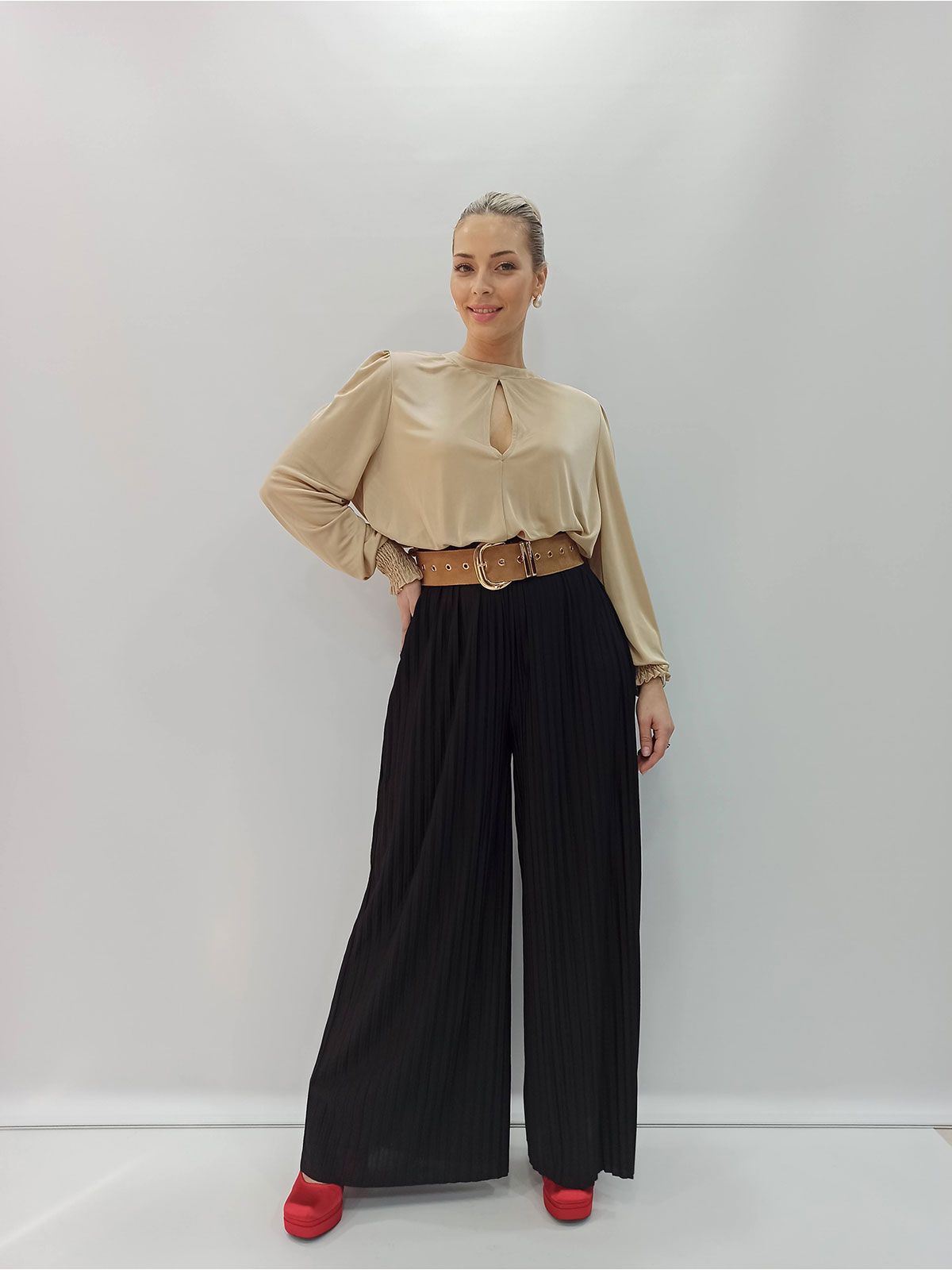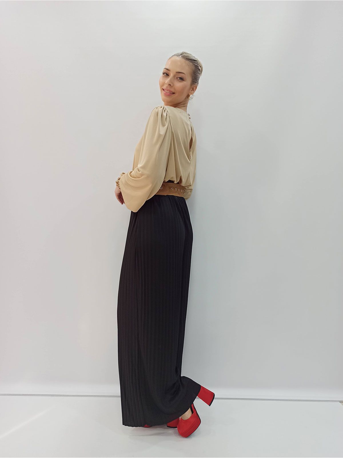 Παντελόνα πλισέ μονόχρωμη ψηλόμεση μαύρο