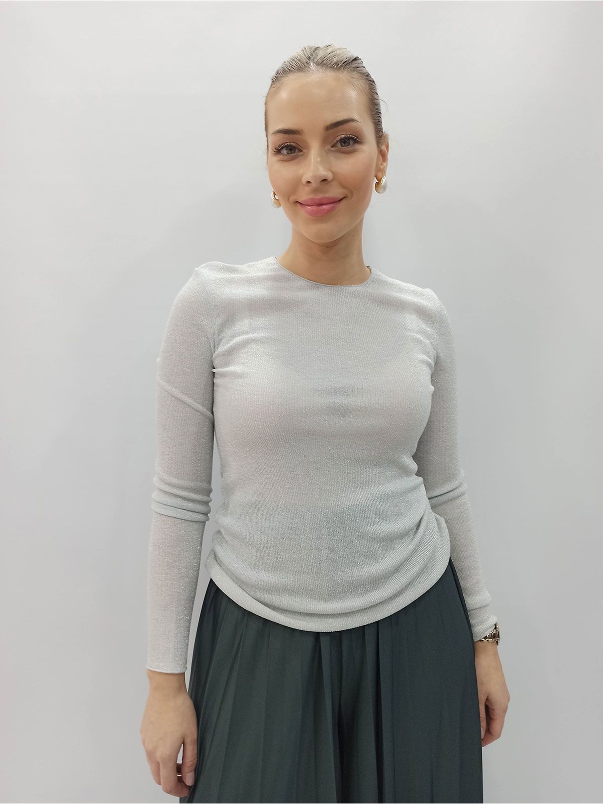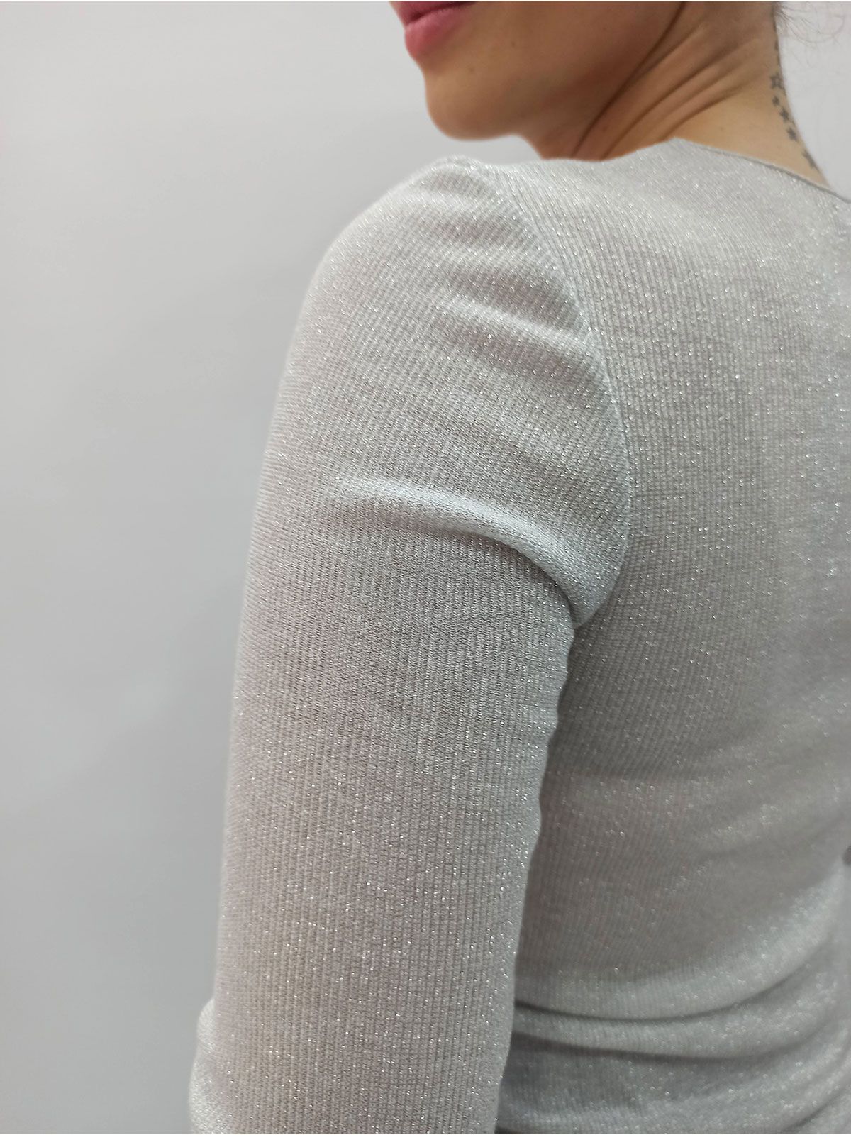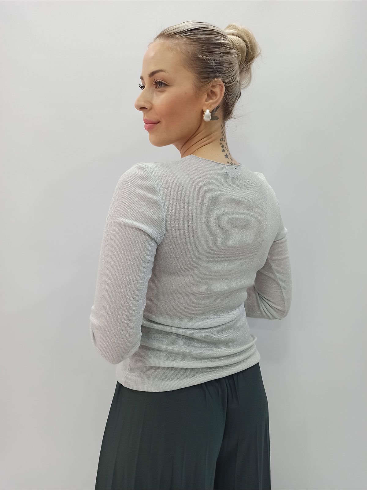 Μπλούζα με λαιμόκοψη και ασημοκλωστή ασημί
