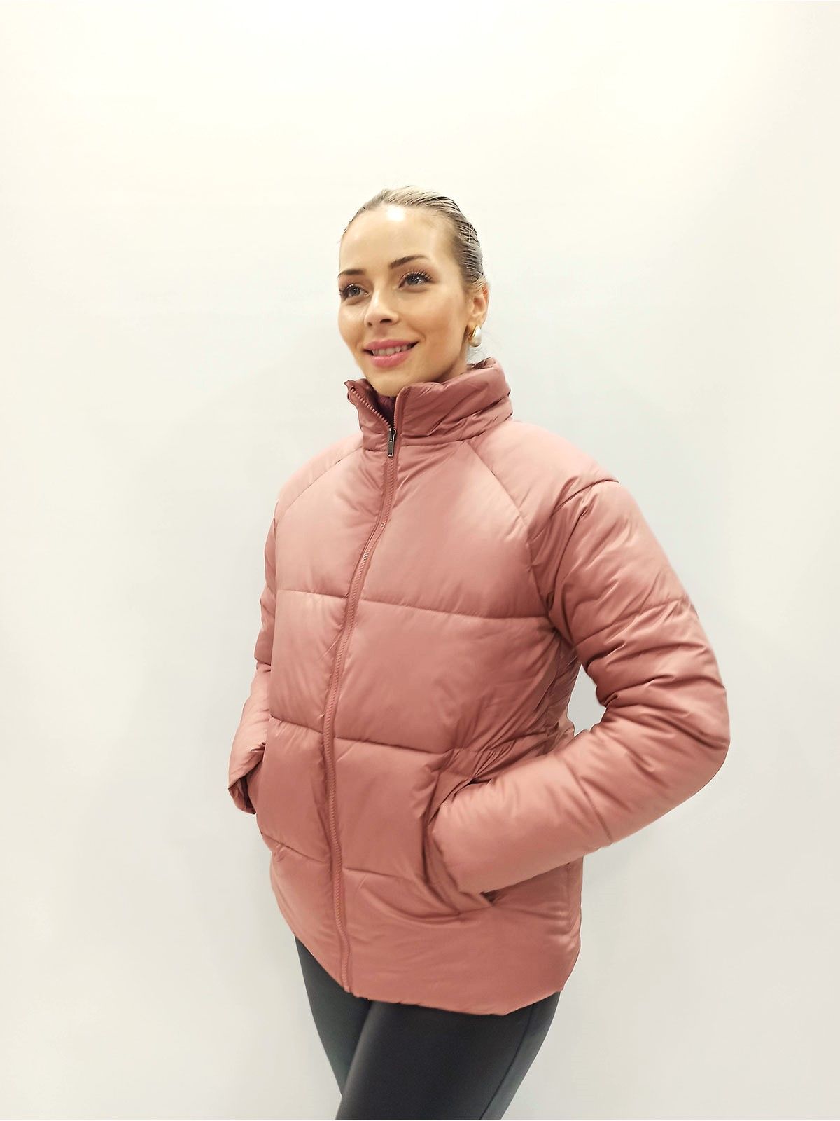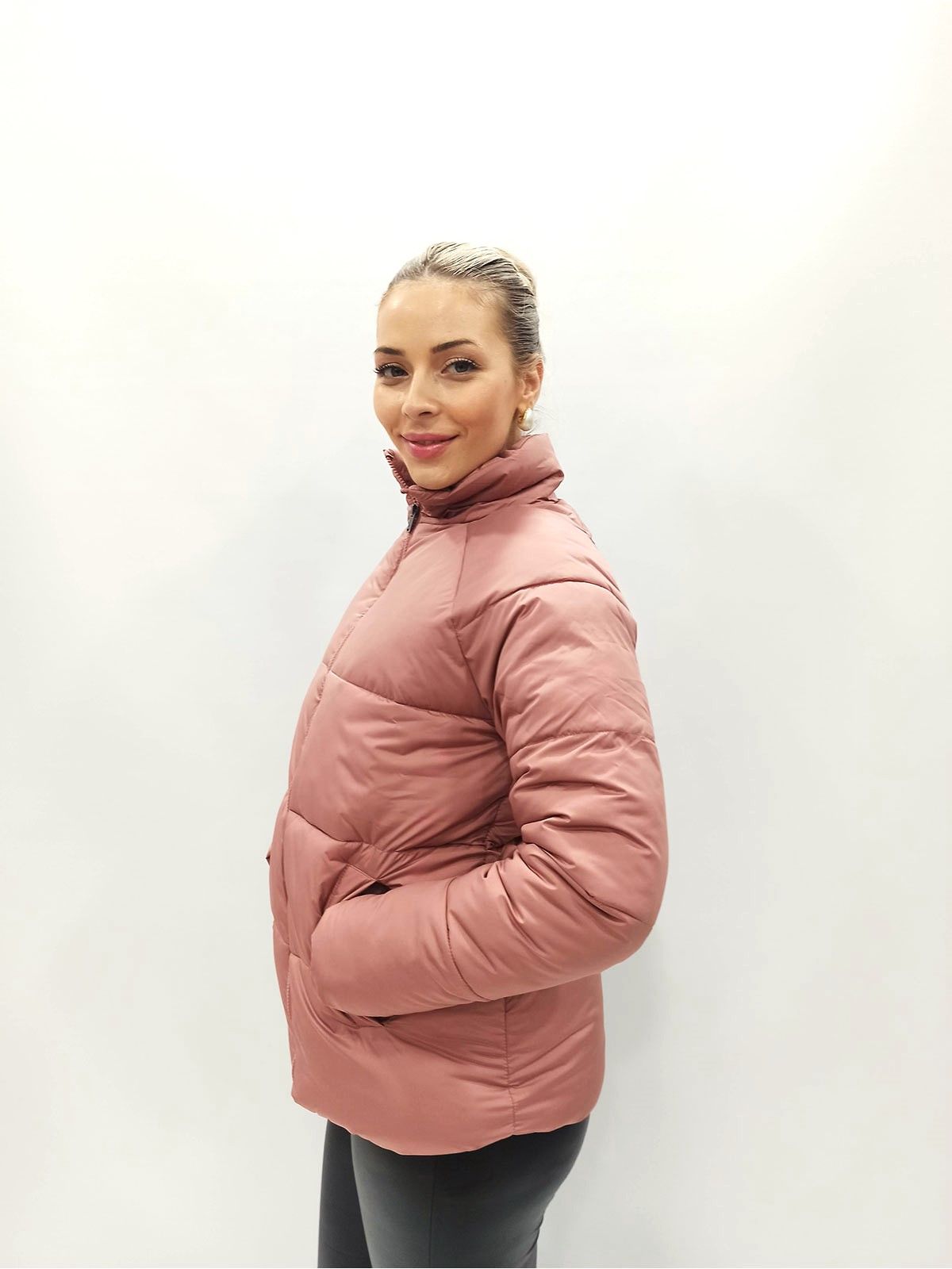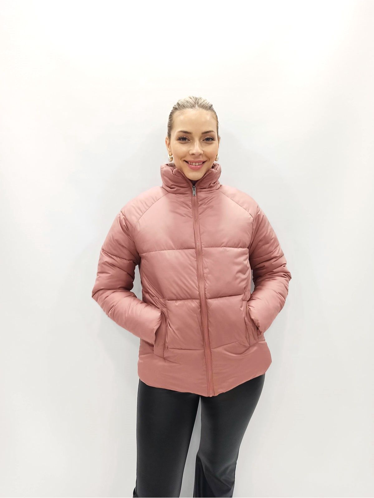 Μπουφάν καπιτονέ με ψηλό λαιμό και τσέπες ροζ