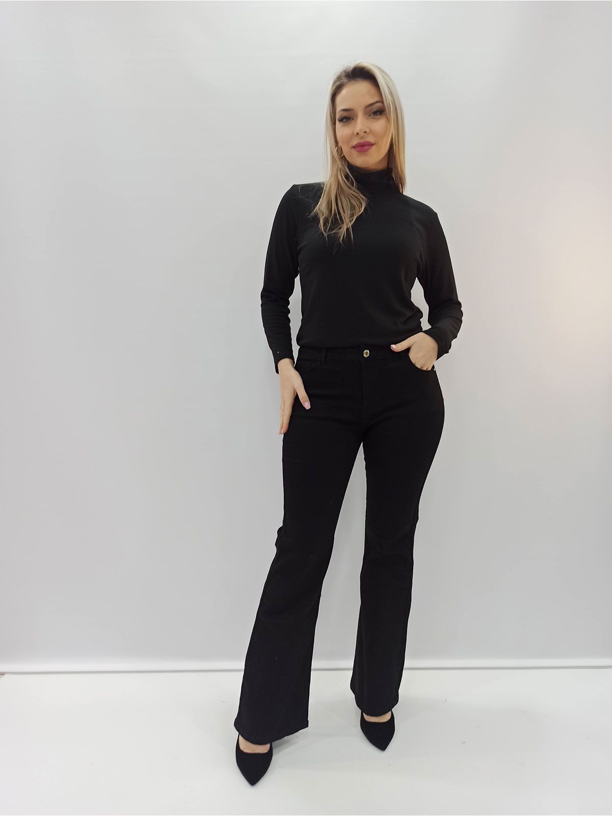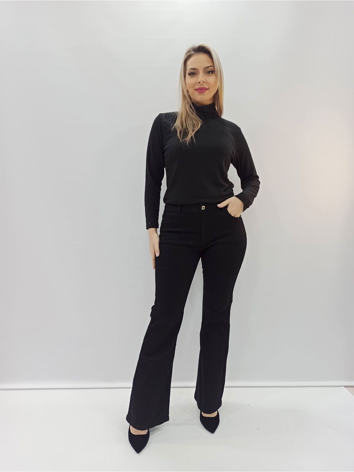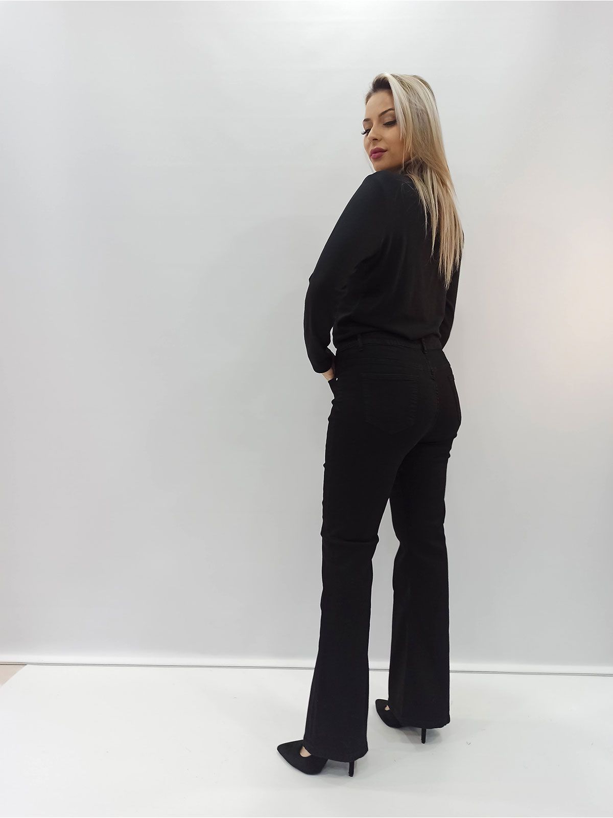 Παντελόνι τζιν καμπάνα μονόχρωμο ελληνικής ραφής μαύρο