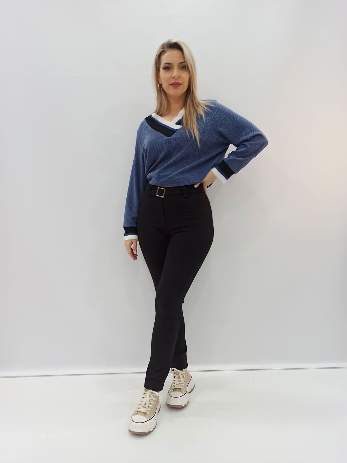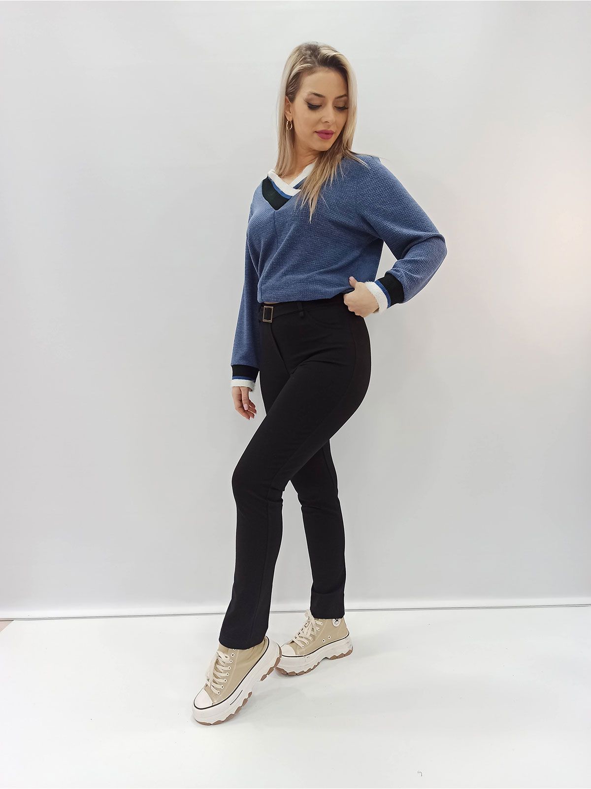 Παντελόνι κολάν μονόχρωμο με ζώνη ελληνικής ραφής μαύρο