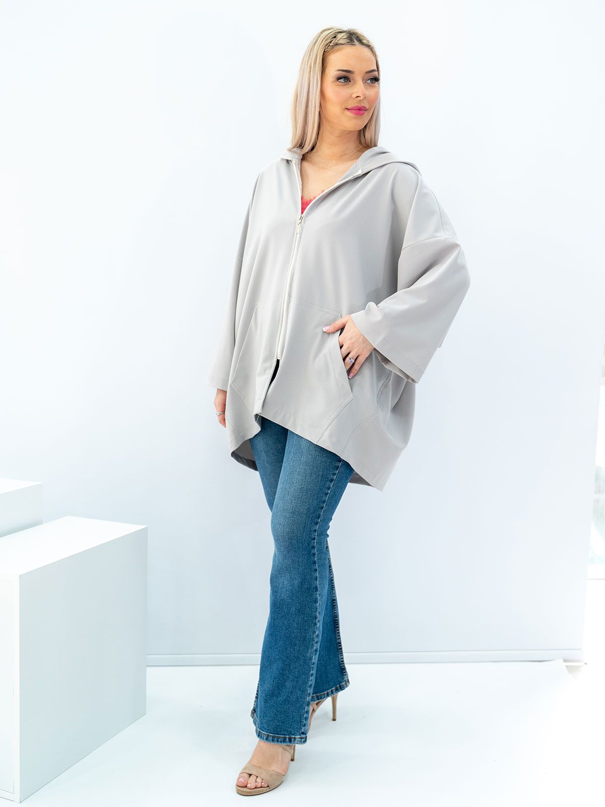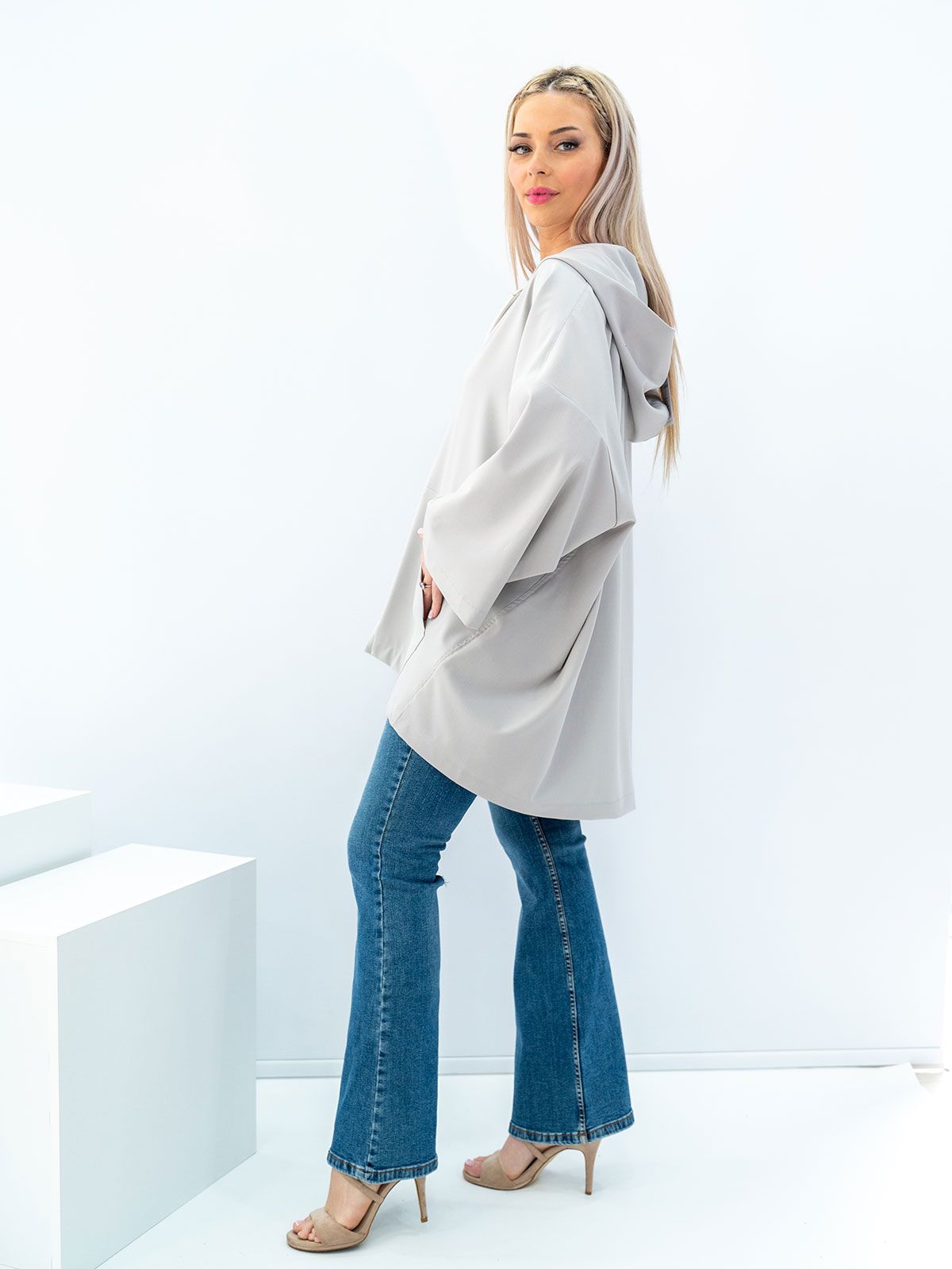Ζακέτα φαρδιά με κουκούλα και φερμουάρ και τσέπες ελληνικής ραφής γκρι