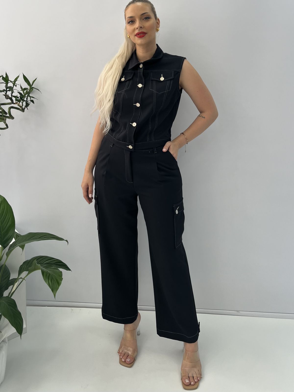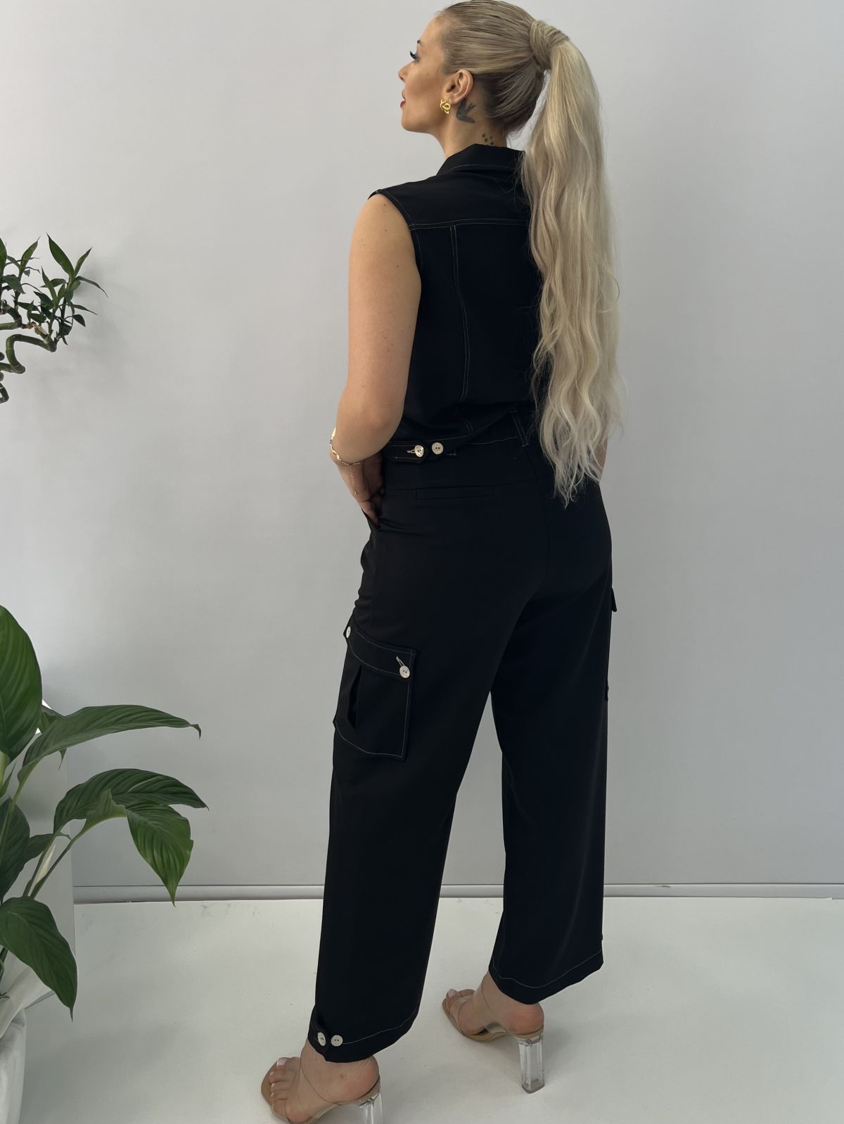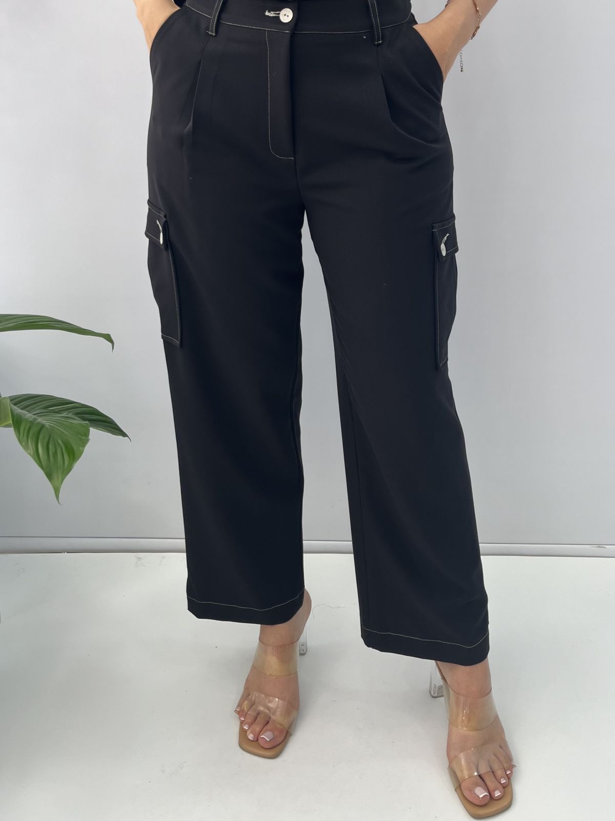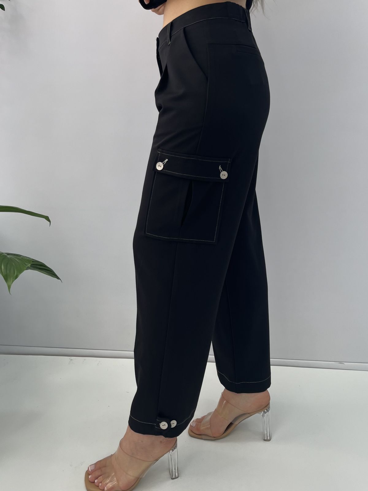 Παντελόνι 7/8 με λευκές λεπτομέρειες, τσέπες στο πλάι και κουμπιά στο κάτω μέρος Ελληνικής ραφής μαύρο