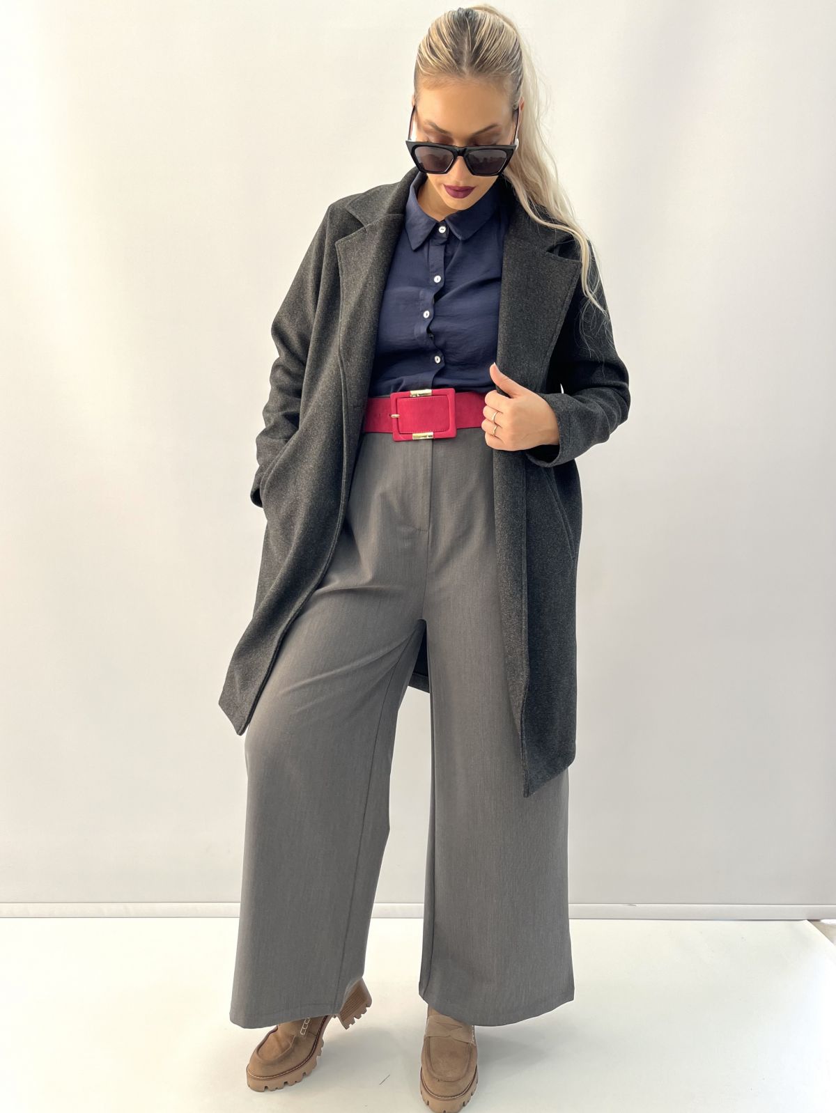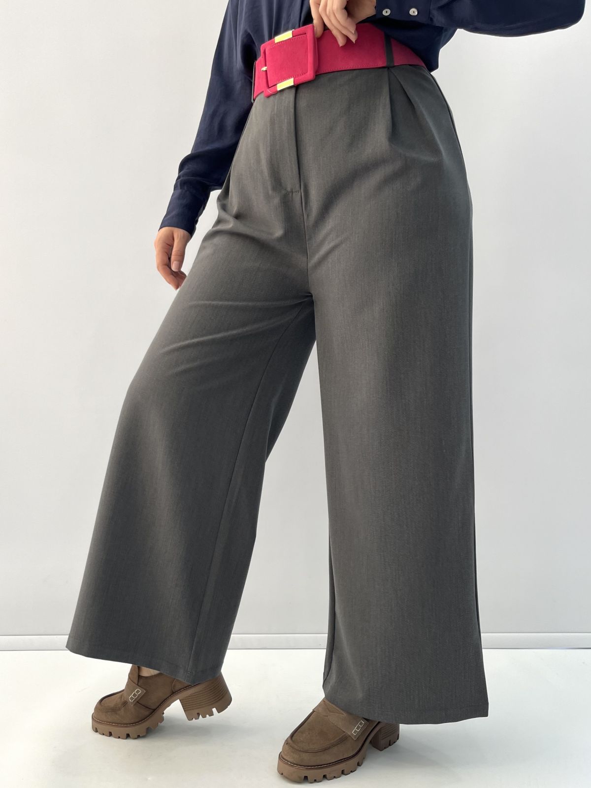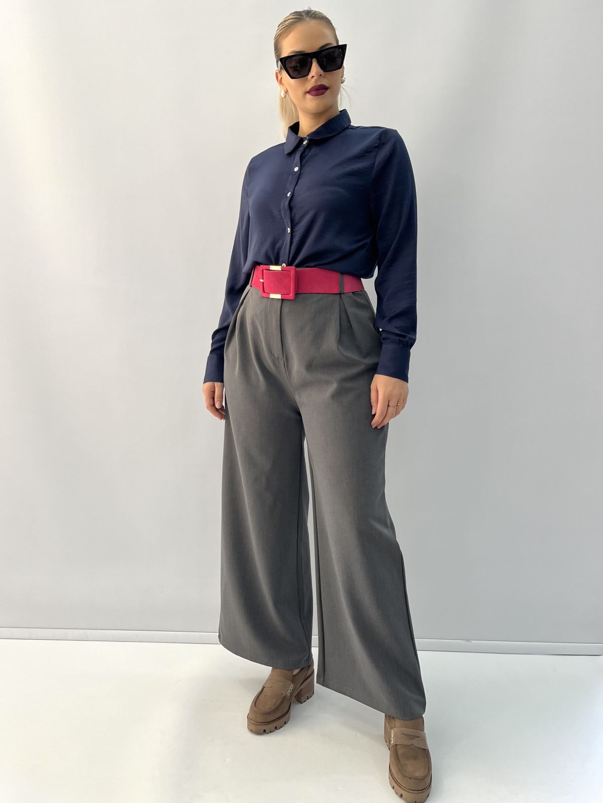 Μονόχρωμη παντελόνα με πιέτες γκρι