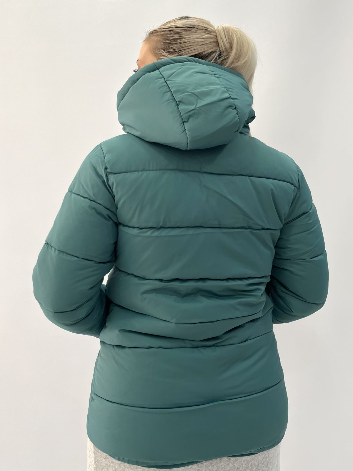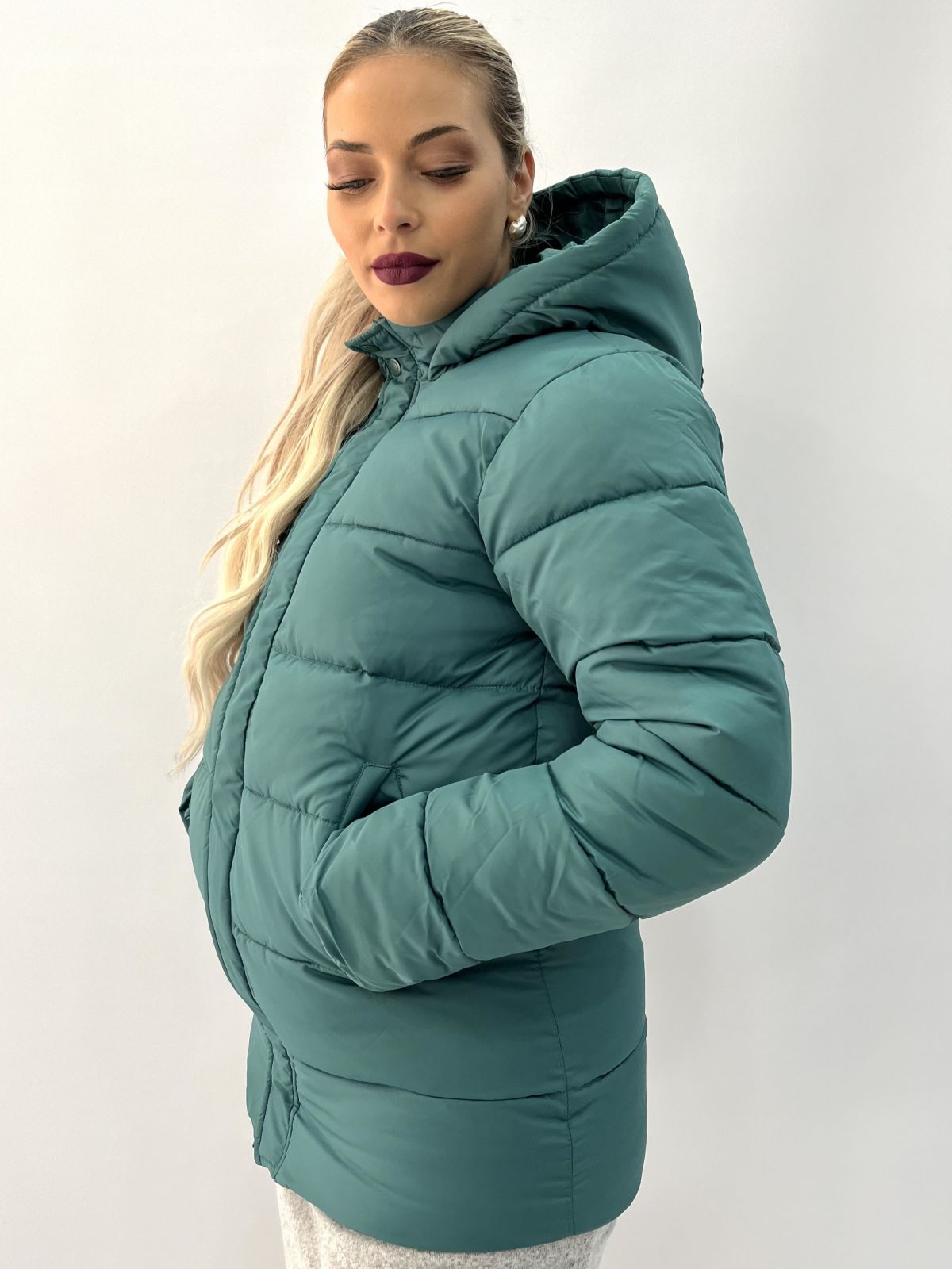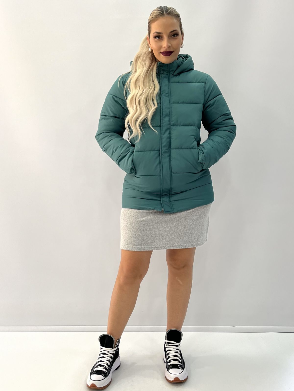 Μπουφάν καπιτονέ μονόχρωμο με κουκούλα και τσέπεςς πράσινο