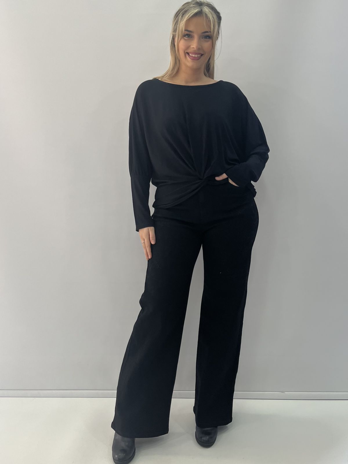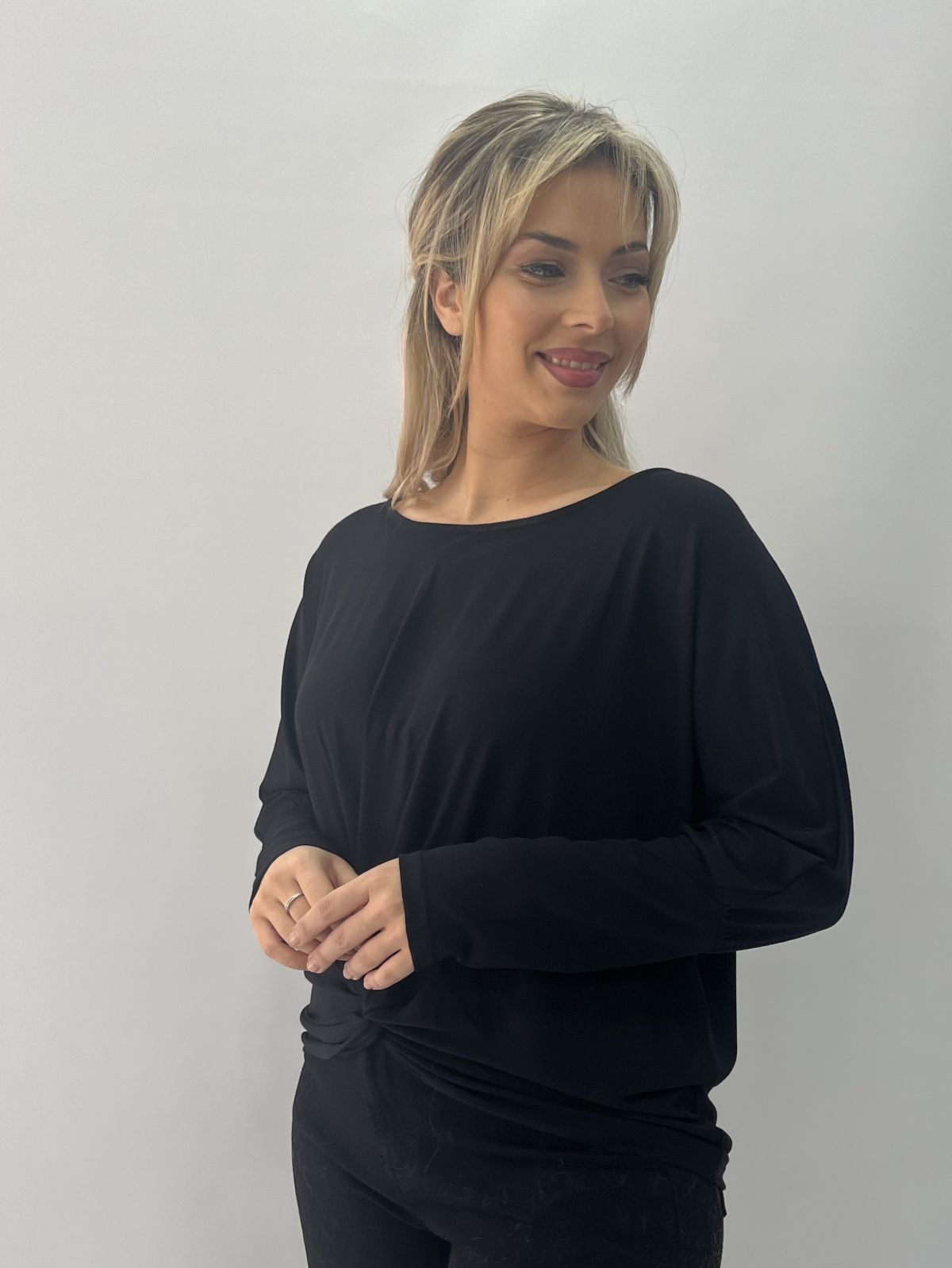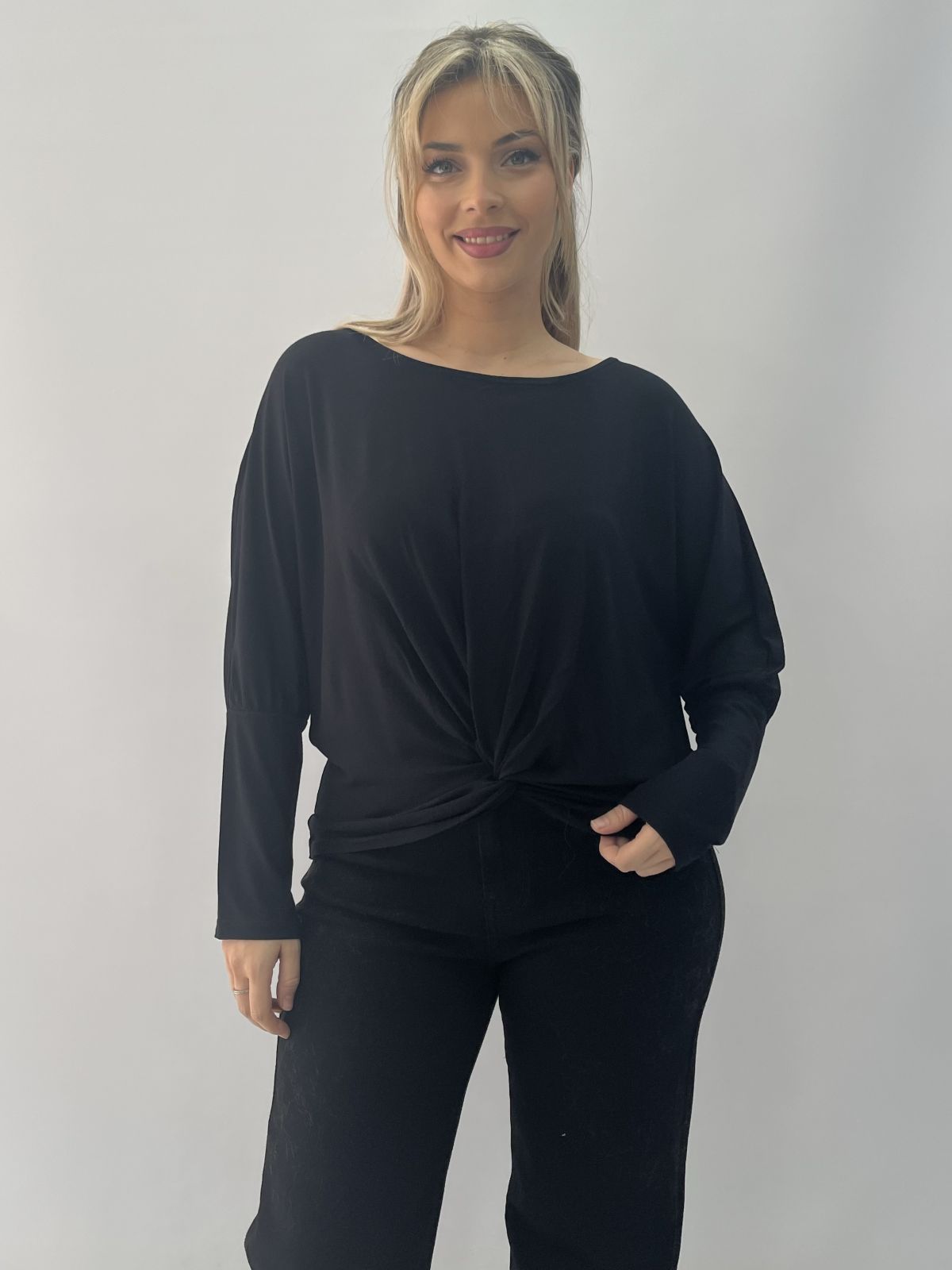 Μπλούζα με δέσιμο μπροστά και μπάσκα στο μανίκι μαύρο