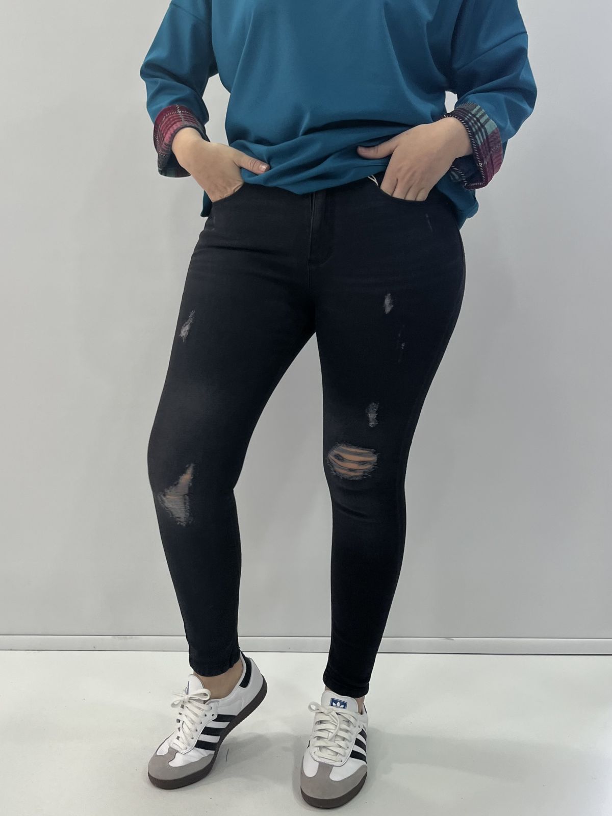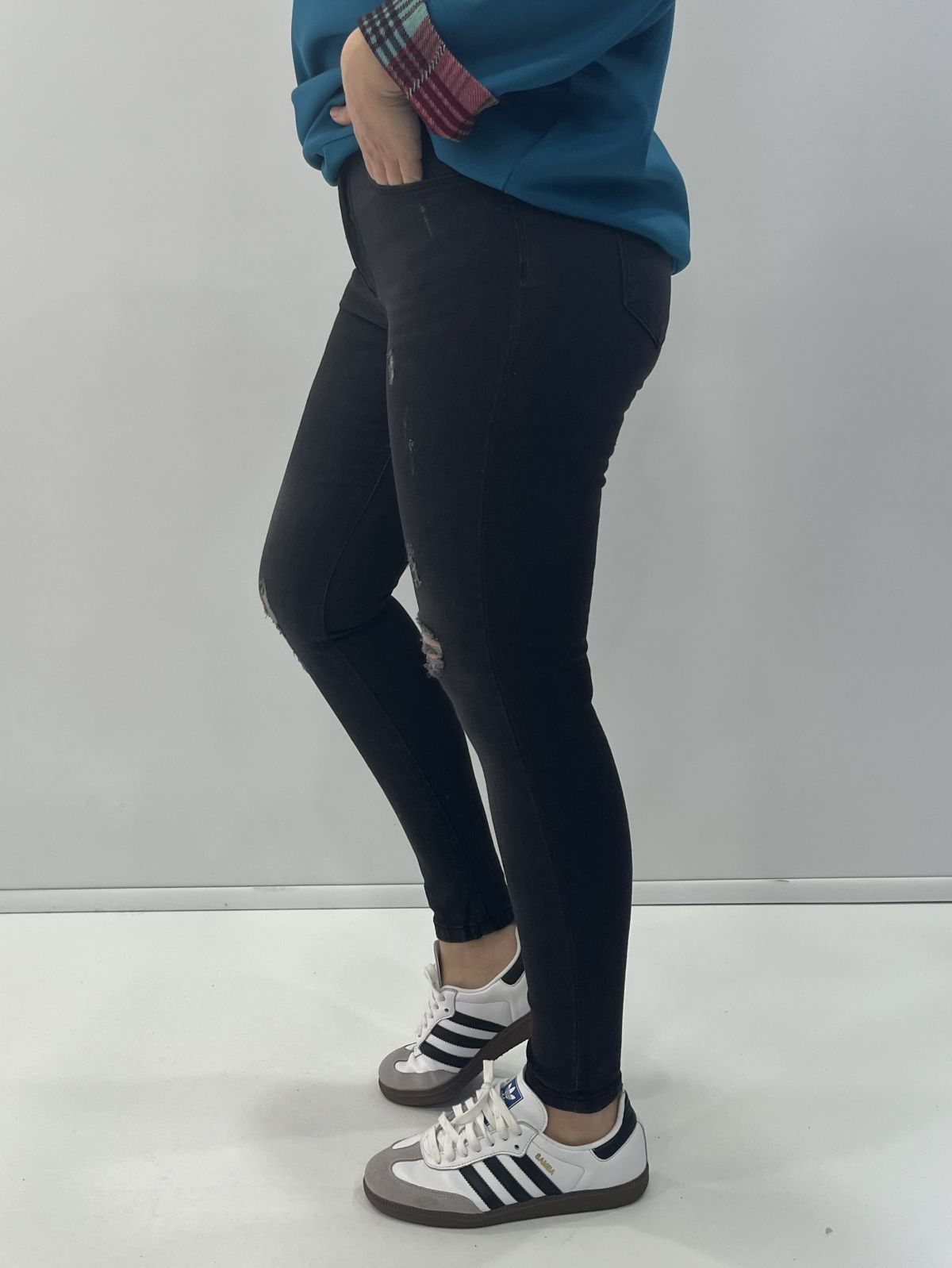 Jean σε στενή γραμμή με σκισίματα μαύρο